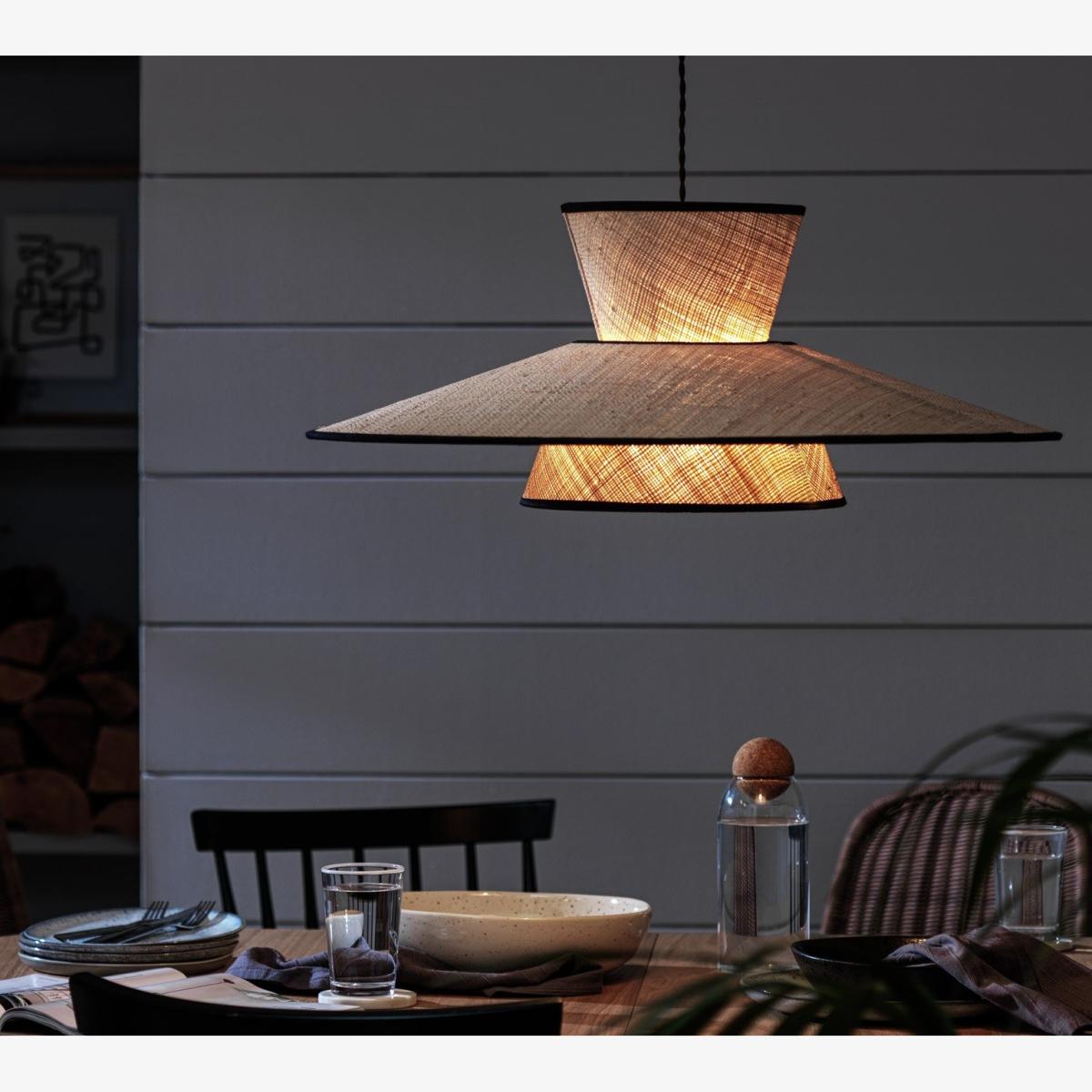 Light up in layered luxury. Ramp up the wow factor with our 2-tier pendant shade. Crafted from natural raffia, its sculptural design has a delightfully unique silhouette. And that bold, black border? It really brings the edge. Hang it low above the dining table or in the lounge for a contemporary, cozy glow. Easy to fit, you'll be shining in no time. Switch on style. Love contemporary pieces with a rustic touch? Match with more in our Modern Country collection. Snuggle up with our throws and cushions. We've got a bunch of styles and colours to choose from. Part of the Otton collection. Made from fabric. Size H28cm, Diameter 70cm. Recommended maximum bulb wattage 42 watts. Minimal assembly. Easy fit shade. Manufacturer's 1 year guarantee.