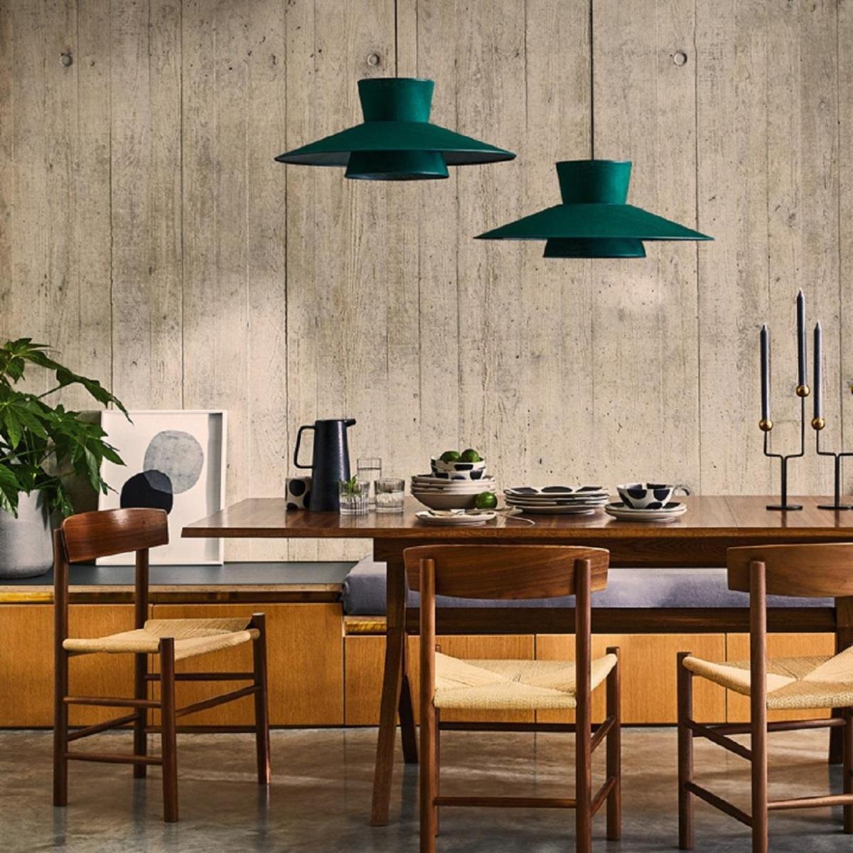 Combining natural materials with a splash of colour, the Otton 3 tier easyfit green ceiling shade will bring texture and vibrancy to your space, even when the lights are off. Created in the Habitat design studio, this ceiling shade has a gently curved, 3-tiered profile thats crafted from natural materials and is finished with a green cotton trim to add contrast to the design. Handmade in Spain, Ottons statement appearance is ideal for creating a warm, natural light in almost any room. For maximum appeal, hang low over a dining table.