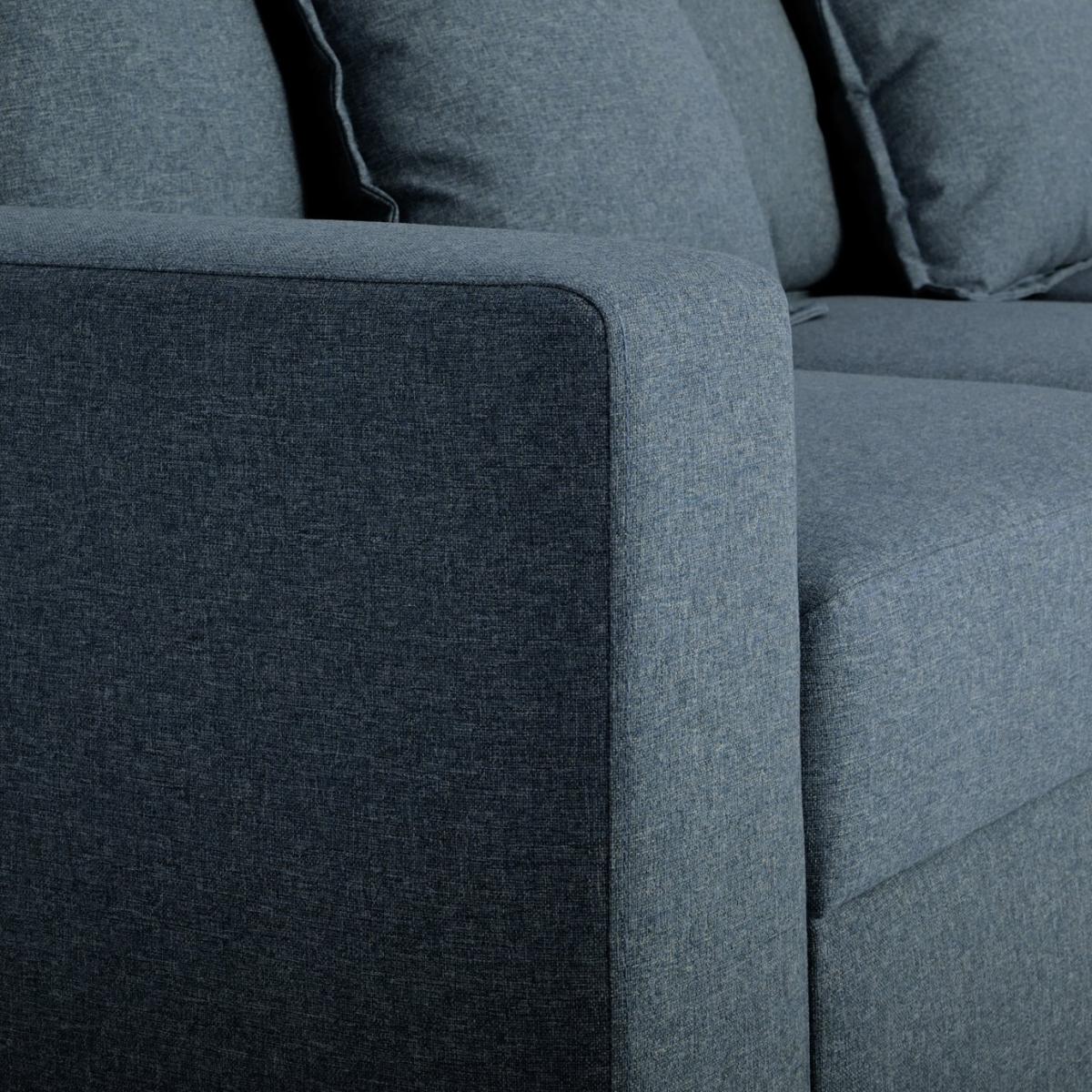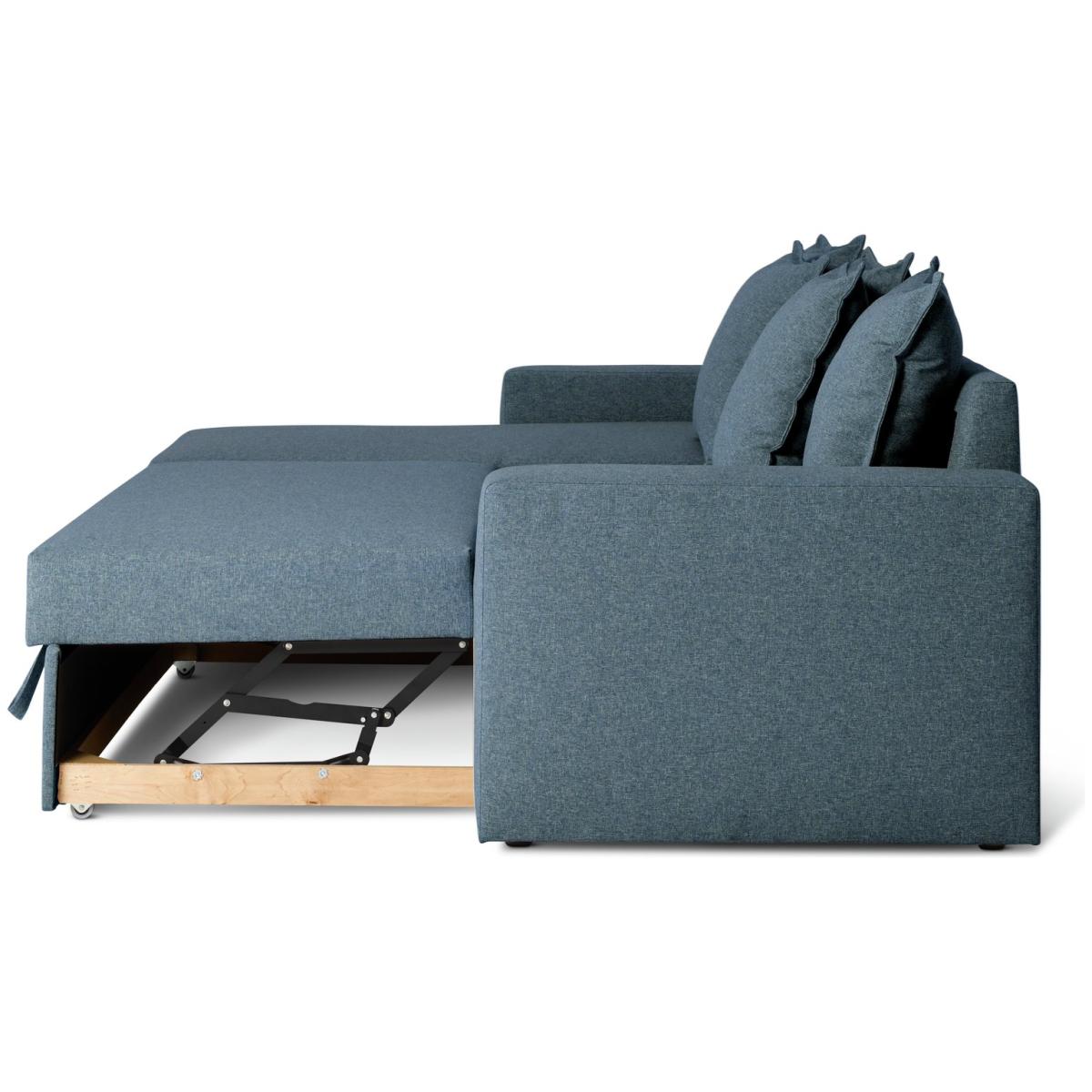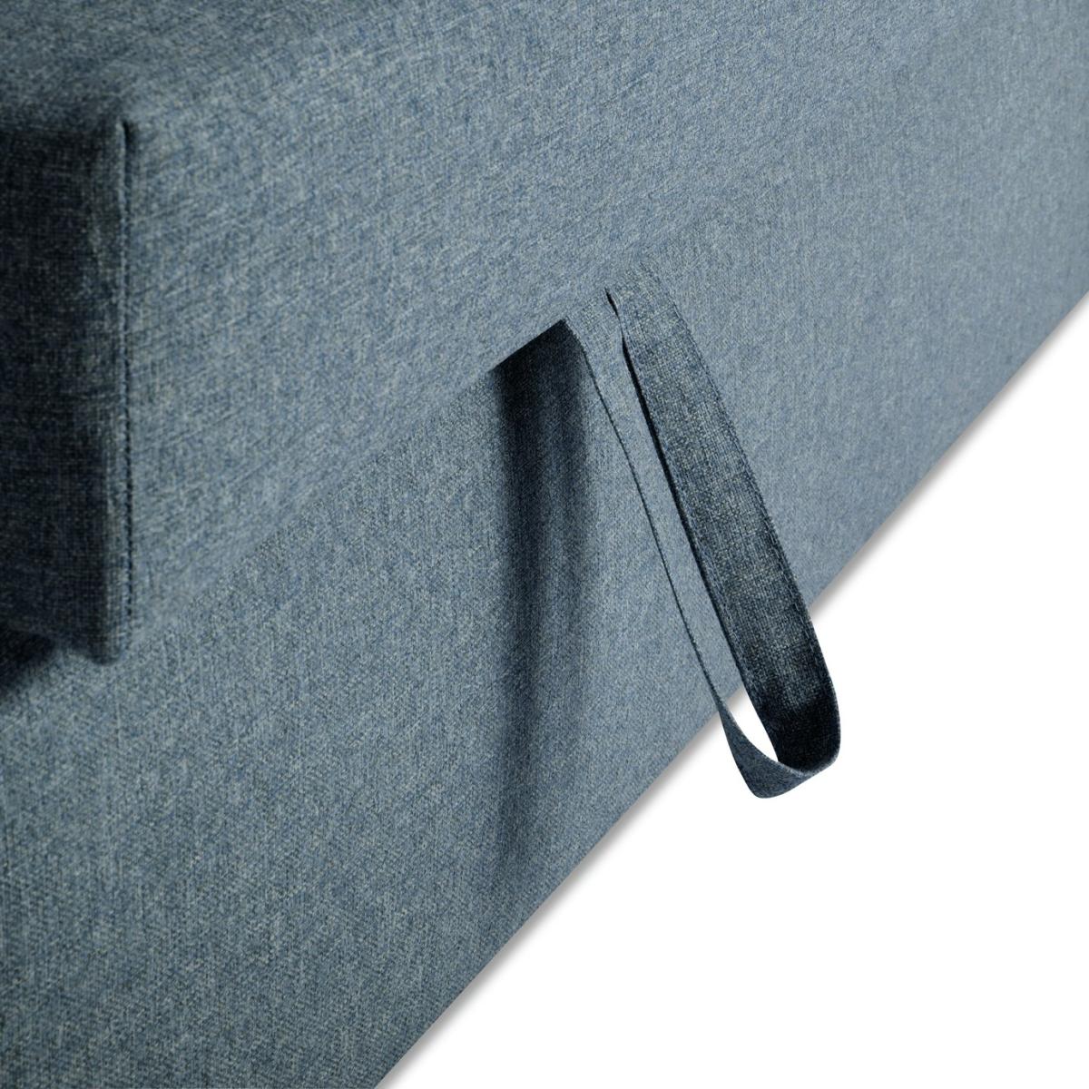 Stretch out, sleep in. This multi-purpose chaise is built for laid back living. Upholstered in a relaxing blue shade, the deep foam and fibre filled seats and abundance of Oxford edged cushions are comfortably inviting. Plus, this smart L-shaped sofa quickly converts into a spare bed too. And as an extra bonus, it even has hidden storage space underneath. Part of the Oxford collection. Metal action mechanism. Material: Made from 100% polyester. Plastic feet. Fixed seats with foam fibre wrap filling. Removable cushion(s) with crumb foam fibre mix filling. Free fabric swatch available on this line. Dimensions: Overall size H87, longer width 230, D167cm. Size of sleeping area W132, L197cm. Floor to seat height: 44cm. Depth of seat: 60cm. Width of shorter seating area between arms: 197cm. Height of arm rest: 58cm. Overall weight 109kg. Storage capacity: 210 litres. Dust or wipe with a damp cloth only. Minimal assembly. Maximum individual user weight 110kg. Packaged dimensions: Package size H76, W154, D93cm. Second package size H76, W162, D90cm. General information: Manufacturer's 2 year frame guarantee. FSC certified meaning the materials used for this product are responsibly sourced.