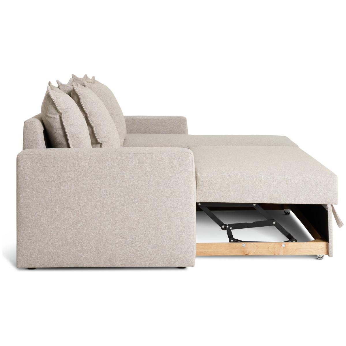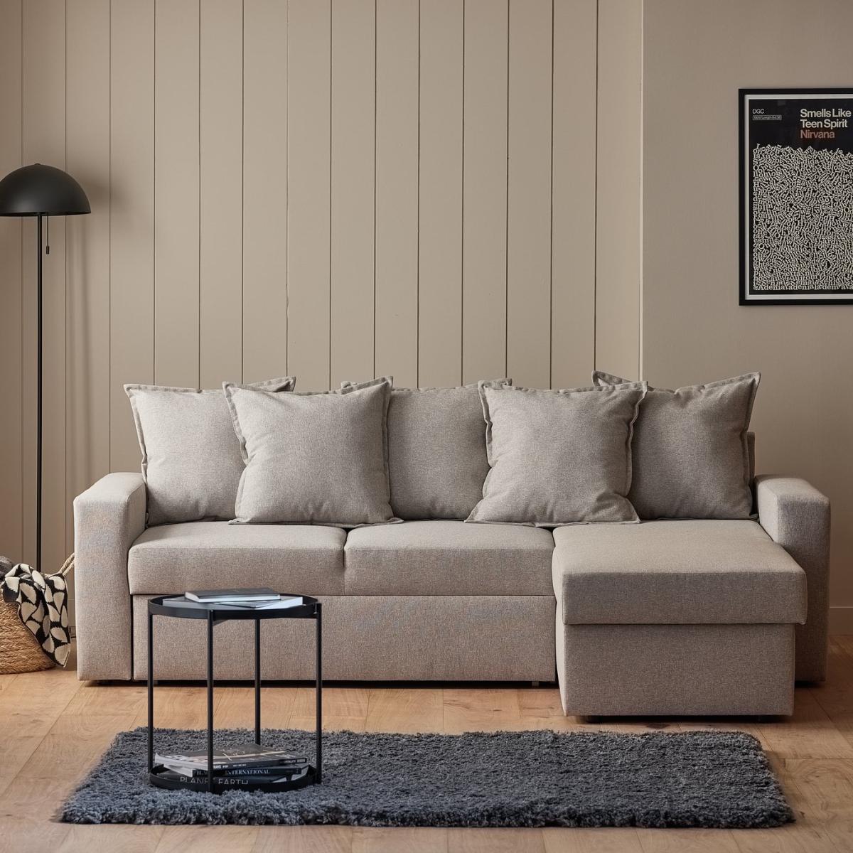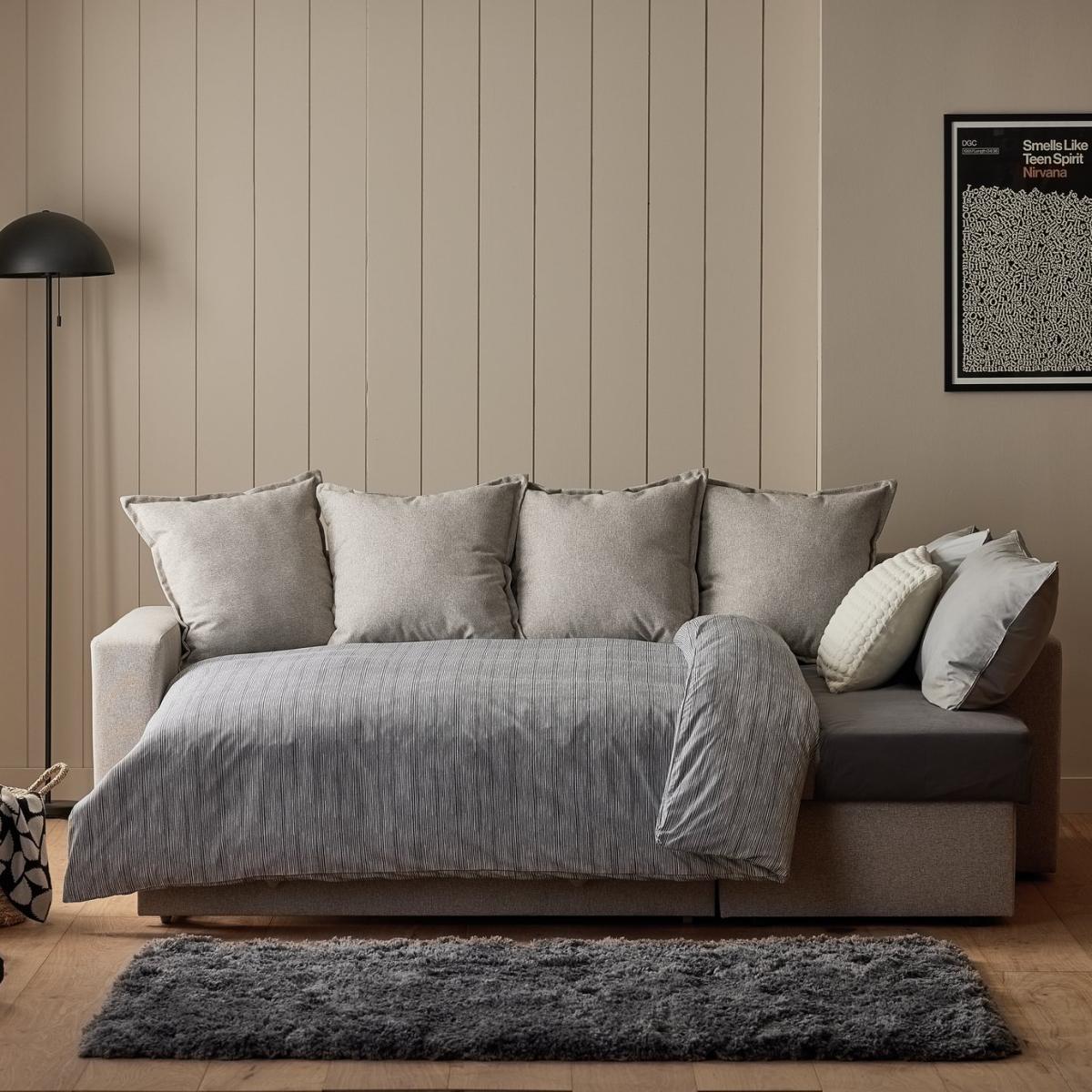 Stretch out, sleep in. This multi-purpose chaise is built for laid back living. Upholstered in a relaxing neutral shade, the deep foam and fibre filled seats and abundance of Oxford edged cushions are comfortably inviting. Plus, this smart L-shaped sofa quickly converts into a spare bed too. And as an extra bonus, it even has hidden storage space underneath. Part of the Oxford collection. Metal action mechanism. Material: Made from 100% polyester. Plastic feet. Fixed seats with foam and fibre filling. Removable cushion(s) with crumb foam fibre mix filling. Free fabric swatch available on this line. Dimensions: Sofa size H87, W230, D166cm. Size of sleeping area: W132, L197cm. Floor to seat height: 44cm. Depth of seat: 60cm. Height of seat back: 43cm. Width of seating area between arms: 197cm. Weight 109kg. Storage capacity: 210 litres. Dust or wipe with a damp cloth only. Minimal assembly. Maximum individual user weight 110kg. Packaged dimensions: Package size H76, W93, D162cm. General information: Manufacturer's 2 year frame guarantee. FSC certified meaning the materials used for this product are responsibly sourced.