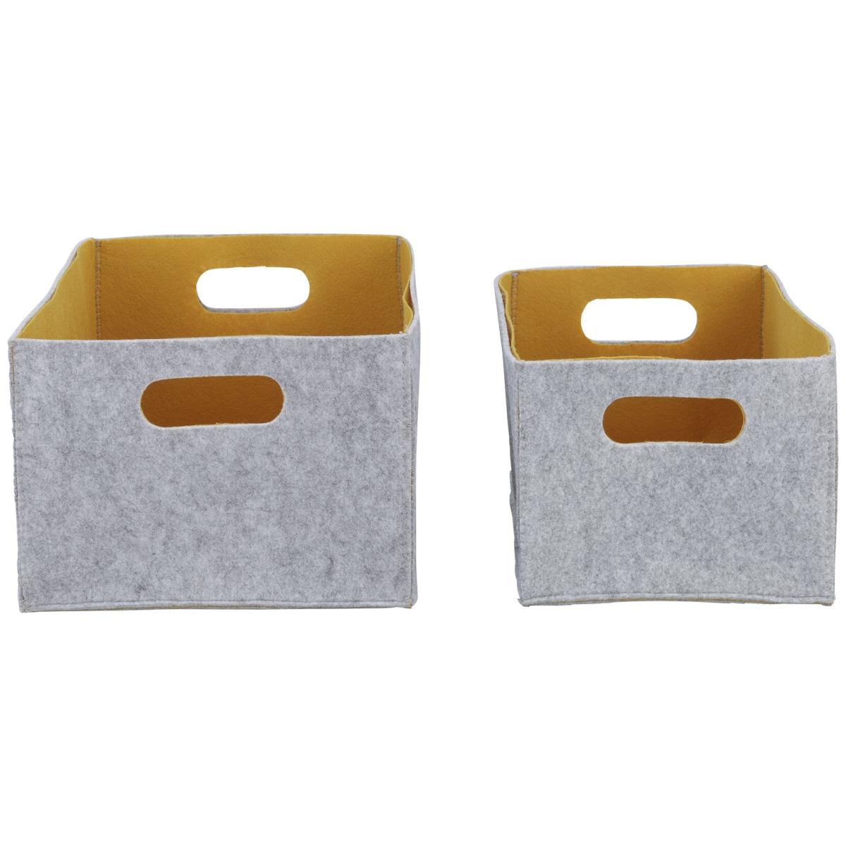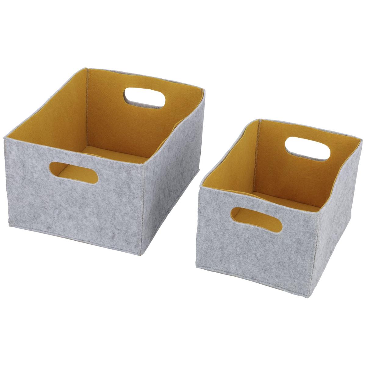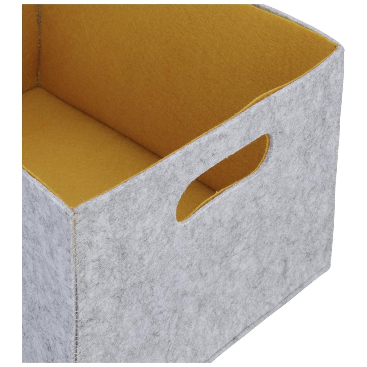 Soften up your storage with this set of 2 felt storage boxes. Designed to slot snugly into our bathroom storage units, these handy baskets are great for organising your bathroom essentials. Bursting with zingy mustard insides they add a subtle pop of colour wherever they go, while their light grey exteriors add a contemporary calm. Ideal for storing bits and bobs that need to be close at hand - a quick and stylish way to get clutter-free in no time. Explore the rest of our storage collection to find your happy place. Box size H18, W35, D25cm. Small box size H16, W30, D20cm. Large box size H18, W35, D25cm. Weight 0.38kg. Fully assembled.