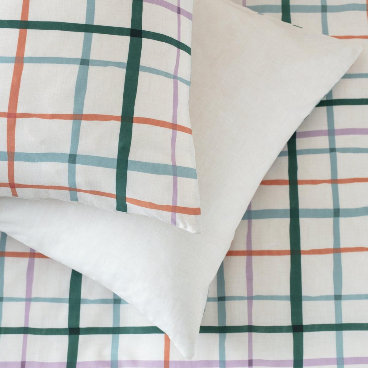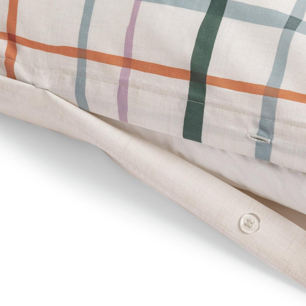 Check out this bedding set. Fresh in style and super soft to the touch. Totally reversible with a check print one side. Just flip to change your look. This item carries the STANDARD 100 by OEKO-TEX logo, which means you can be certain that every component has been tested for harmful substances and is therefore harmless to human health. Finish: woven. 50% cotton , 50% recycled polyester. 144 thread count. Set includes 1 duvet cover and 2 pillowcases. Bed size: double. Length 200cm, Width 200cm. Buttons for fastening. Standard pillowcase (s). Pillow case length 75cm, Width 50cm. Reversible pillowcase (s). Machine washable at low temperature. Suitable for tumble drying.
