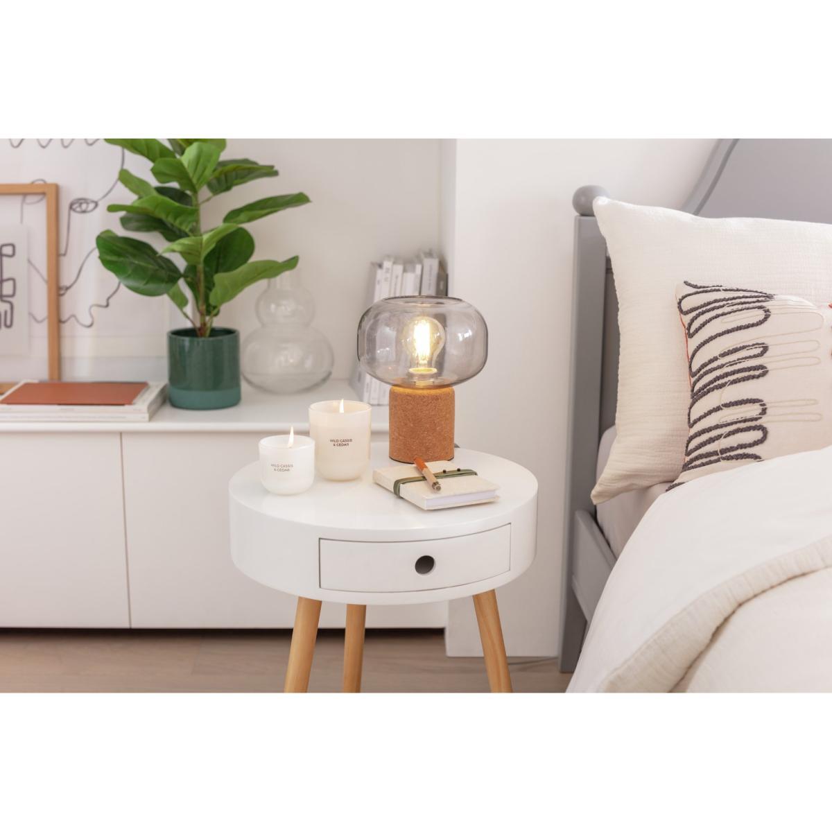 Simple design with an industrial spin. With a base finished in natural cork and a lightly smoked glass shade, Pallas creates a soft glow to give your room just the right ambience. Ideally placed on a desk or side table, this lamp is sure to inspire creativity in abundance. The elegant, rounded silhouette and minimalist design will give your decor an instant uplift.