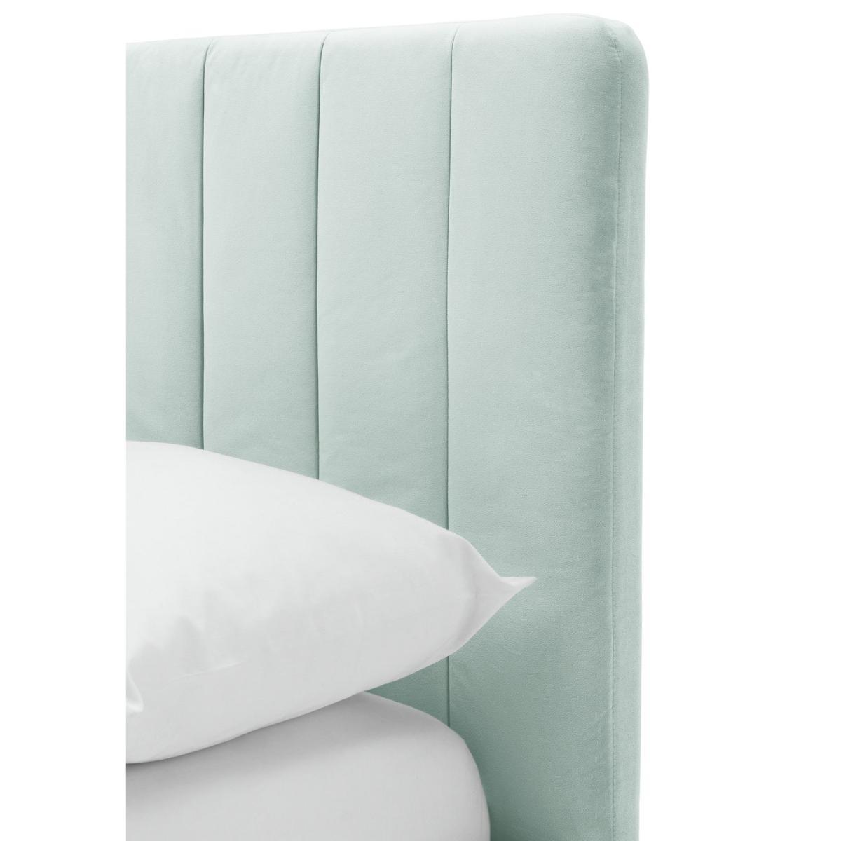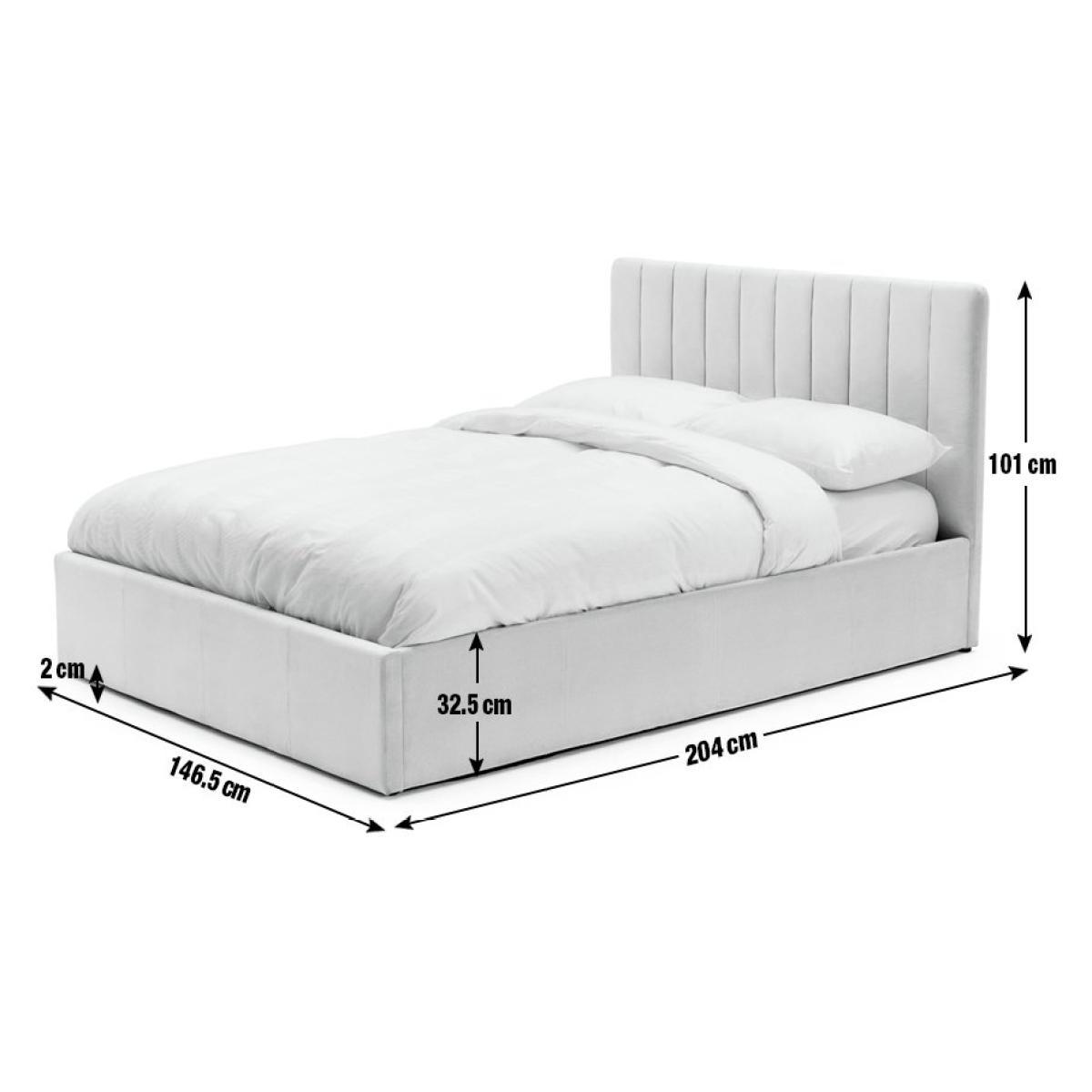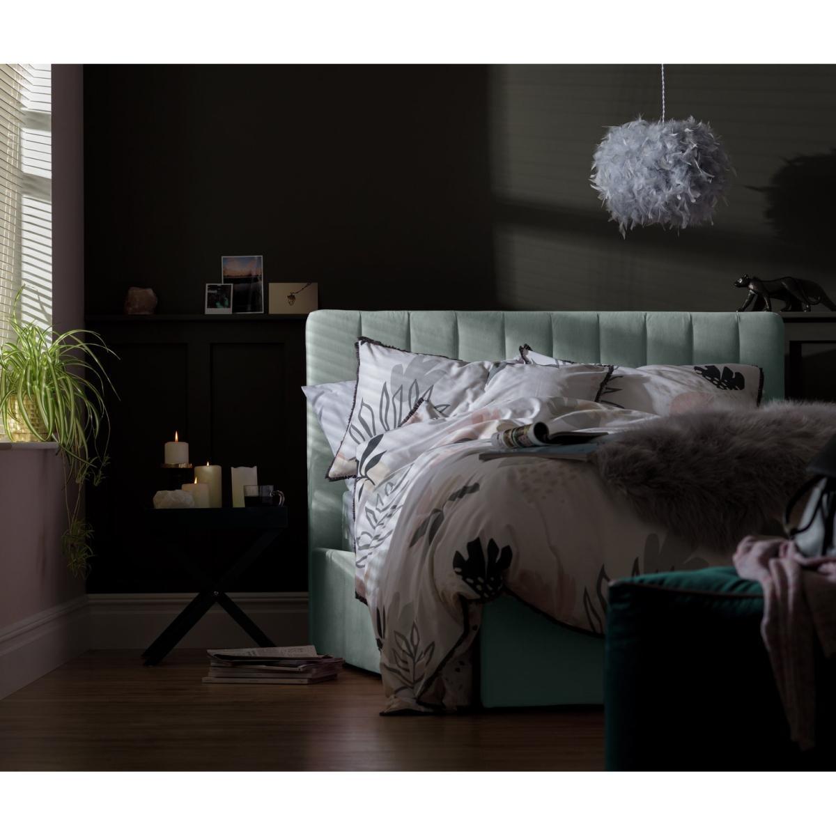 Sleep and store in style. Our Pandora bed frame in blue is as functional as it is fabulous. Time for a tidy? Lift up the end of the bed to reveal lots of space for clothes, pillows and bedlinen. The soft fabric headboard has a subtle groove design that offers a clean, modern look. While sprung wooden slats give a comfy foundation for your mattress. Ideal for nap times and neat times.