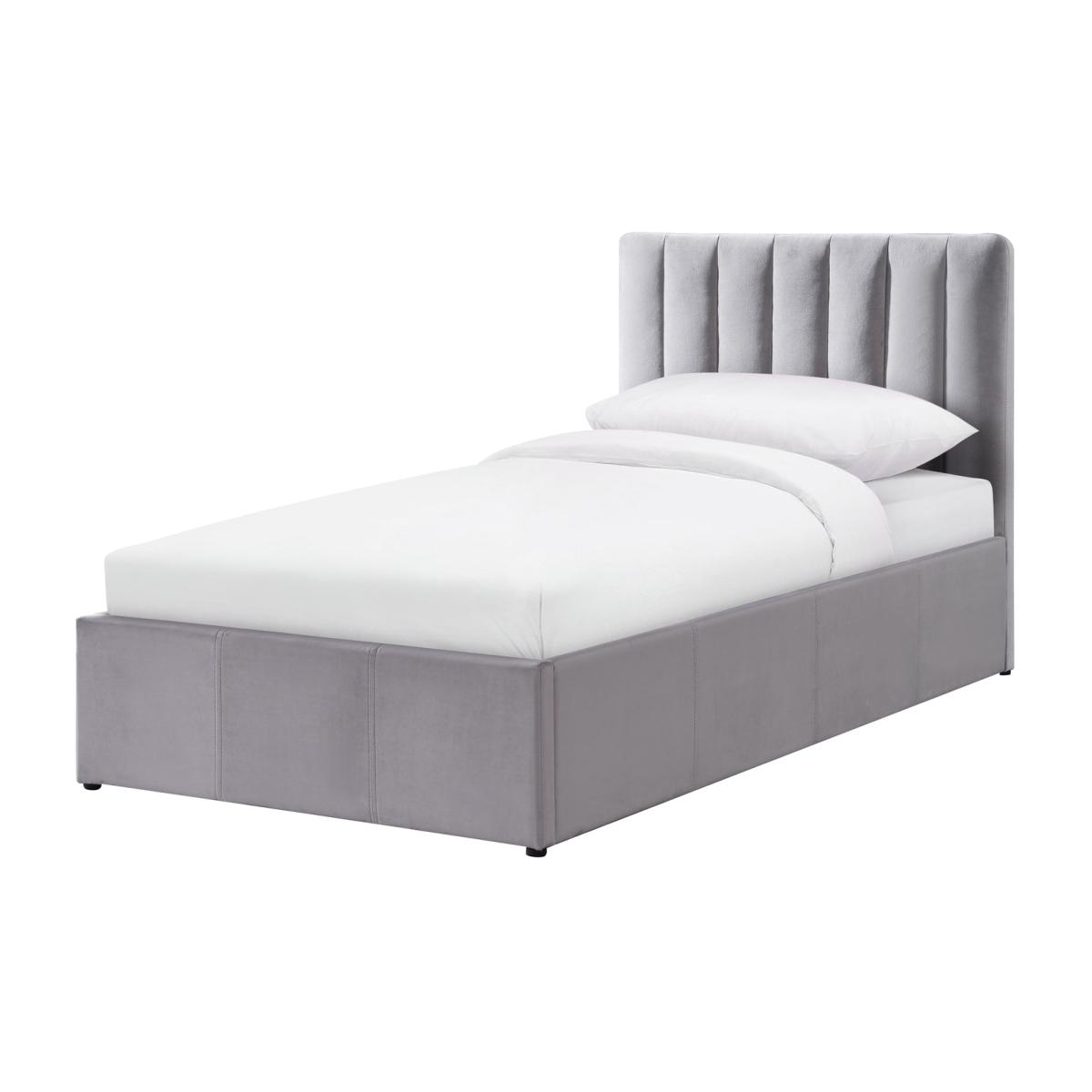 Beautifully elegant bed design with deep vertical stitching in headboard in a plush velvet, complete with deep ottoman storage to serve a fully functioning bed. End opening storage functionality is a huge bonus for small rooms with limited space. Deep seam detail in headboard gives a very classy look. Soft touch but durable velvet. Part of the Pandora collection. Velvet frame. Base with sprung wooden slats. End lift. Ottoman: end opening. Storage capacity: 391 litres. Size W105, L202, H99cm. Height to top of siderail 31cm. 1cm clearance between floor underside of bed. Weight 31.8kg. Total maximum user weight 110kg. Self-assembly - 2 people recommended. Package Dimension: Package 1 dimension H109, W101, D9cm. Package 1 weight: 18.1kg. Package 2 dimensions: H199, W33.5, D13cm. Package 2 weight: 18.3kg. General information: We are excited to be welcoming some of our favorite HOME products into the Habitat range. Your product may arrive in Habitat or HOME packaging. Manufacturer's 1 year guarantee. FSC certified meaning the materials used for this product are responsibly sourced.