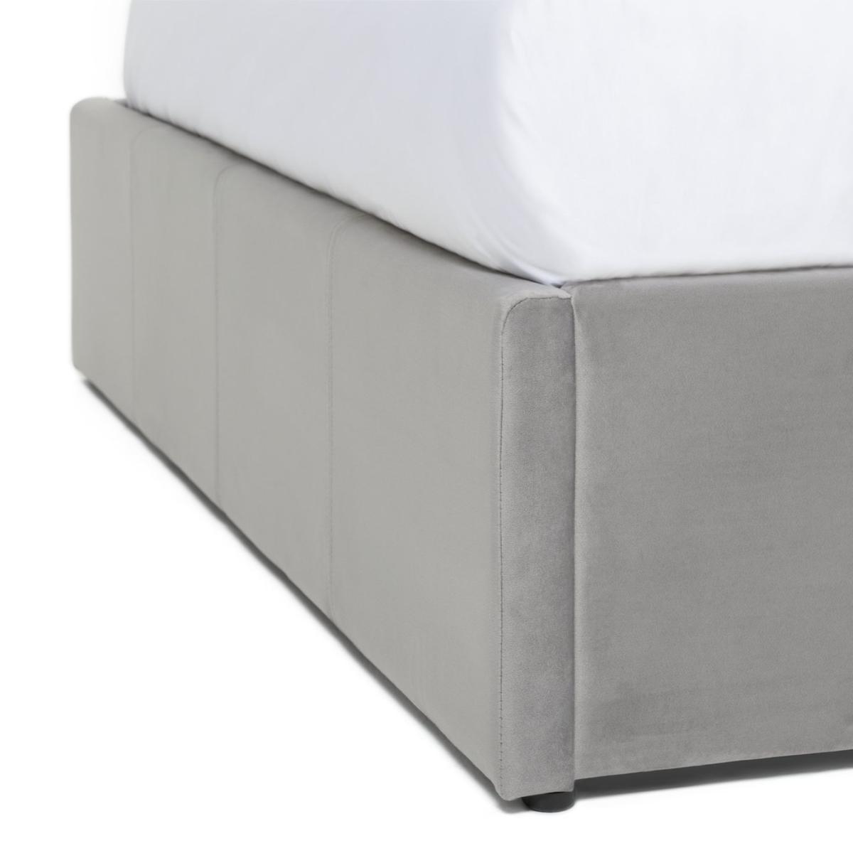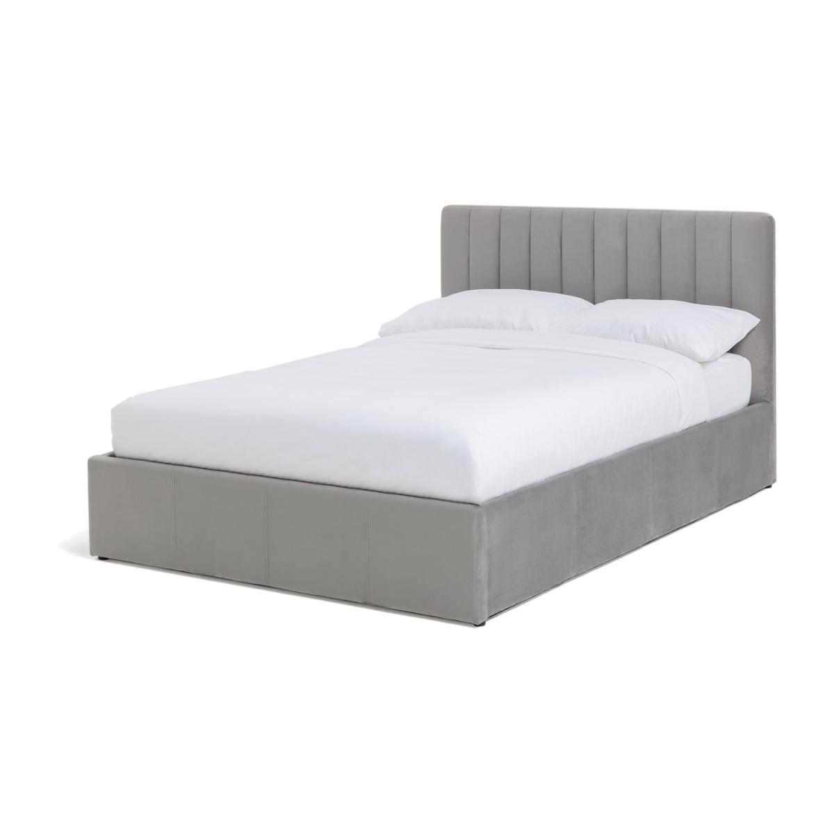 Beautifully elegant bed design with deep vertical stitching in headboard in a plush velvet, complete with deep ottoman storage to serve a fully functioning bed. End opening storage functionality is a huge bonus for small rooms with limited space. Deep seam detail in headboard gives a very classy look. Soft touch but durable velvet. Part of the Pandora collection. Velvet frame. Base with sprung wooden slats. End lift. Ottoman: end opening. Storage capacity: 456 litres. Size W135, L202, H99cm. Height to top of siderail 31cm. 1cm clearance between floor underside of bed. Weight 37.1kg. Total maximum user weight 220kg. Self-assembly - 2 people recommended. Package Dimension: Package 1 dimension H139.5, W101, D9cm. Package 1 weight: 23kg. Package 2 dimensions: H199, W33.5, D13cm. Package 2 weight: 19.7kg. General information: We are excited to be welcoming some of our favorite HOME products into the Habitat range. Your product may arrive in Habitat or HOME packaging. Manufacturer's 1 year guarantee. FSC certified meaning the materials used for this product are responsibly sourced.
