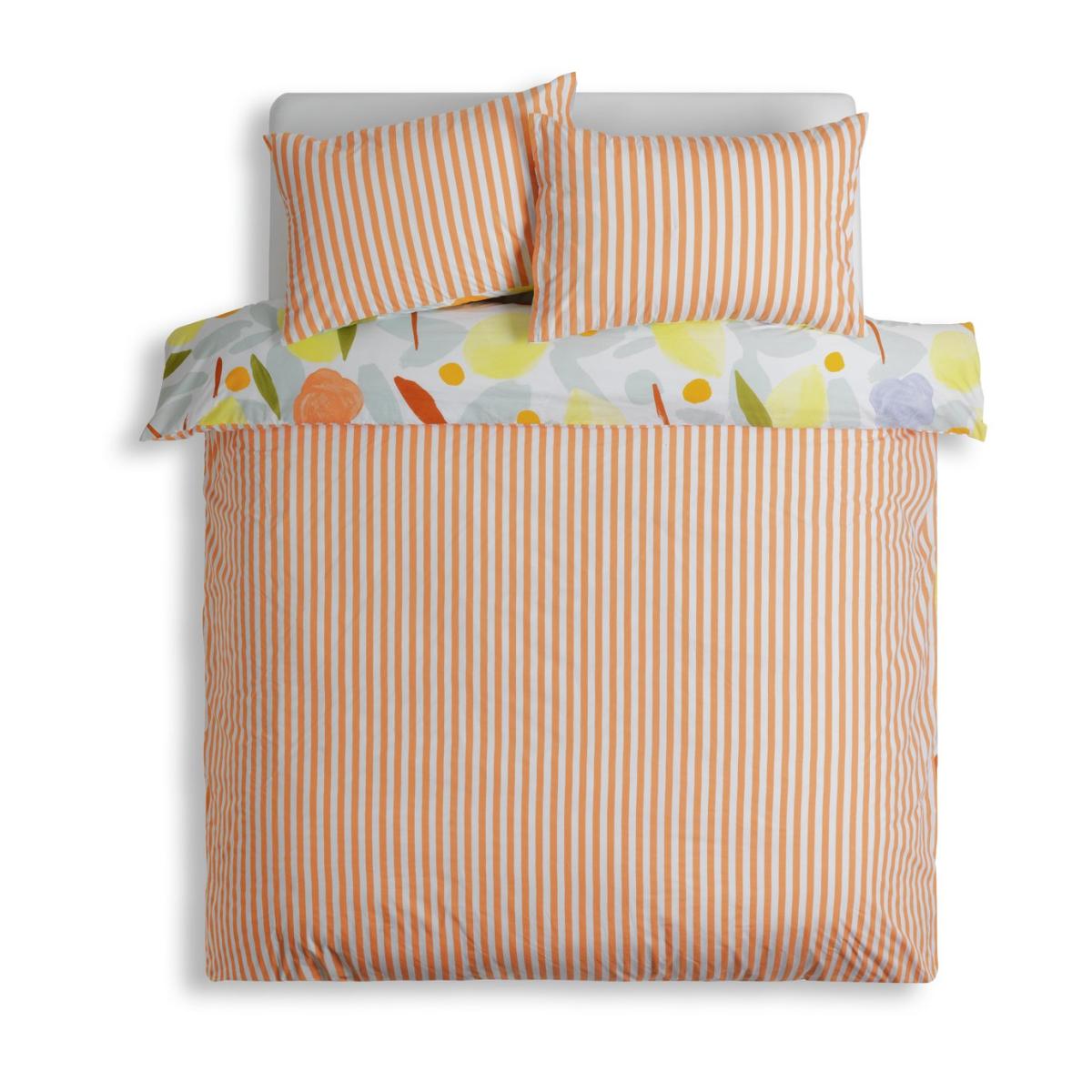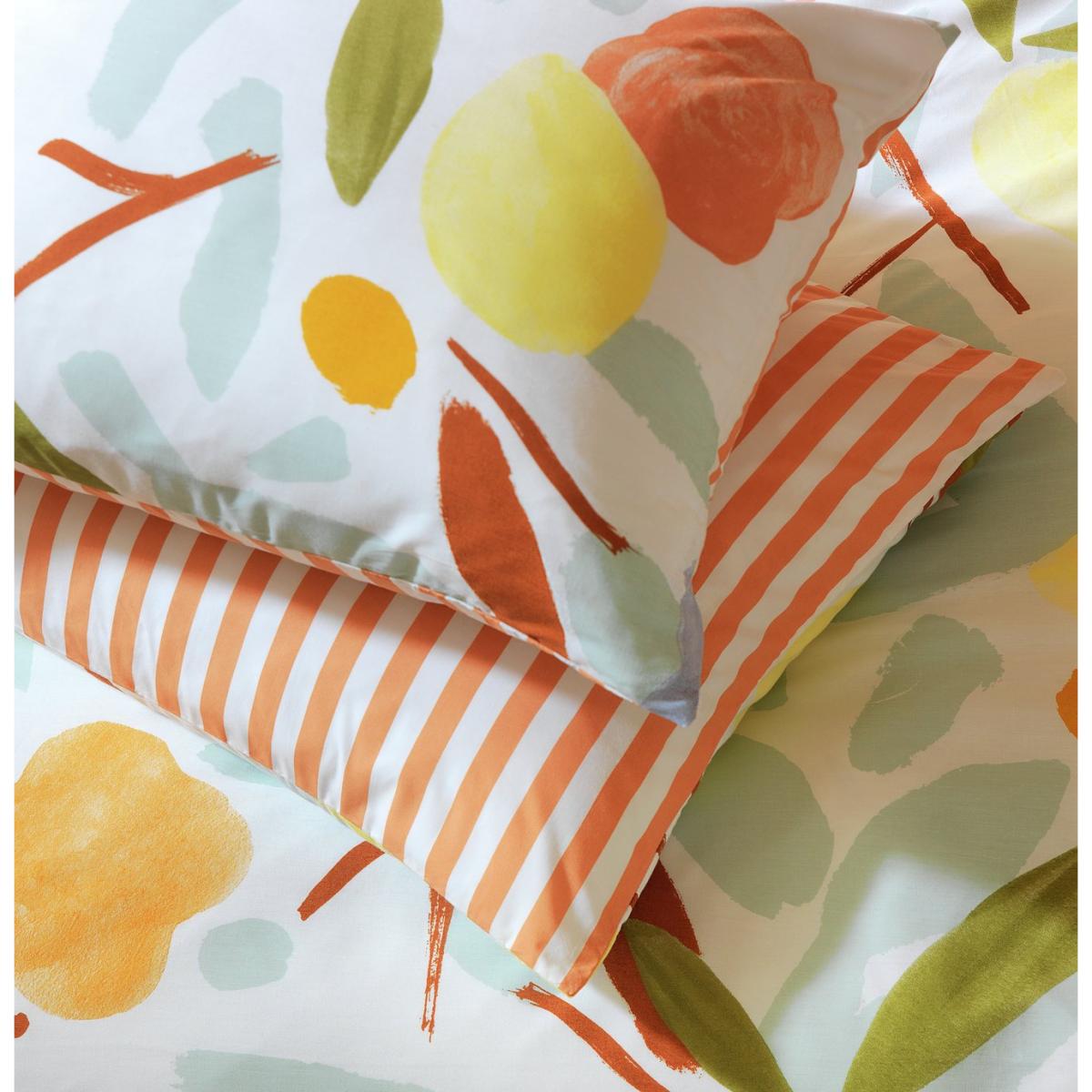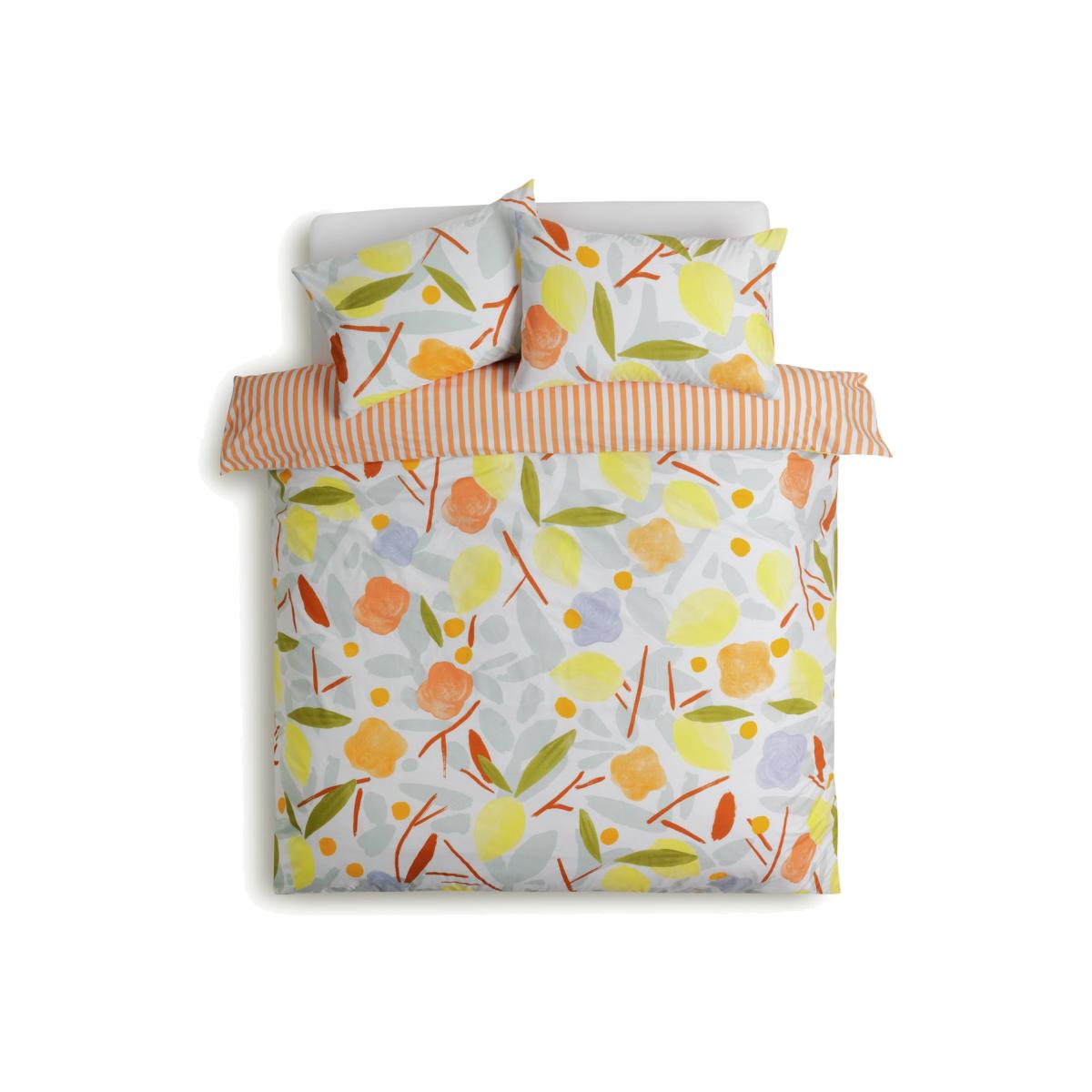 Wake up to our bright and breezy bedding set. Its zesty, fruit and floral pattern will have you feeling revitalised and ready for the day. A juicy, candy stripe makes it fully reversable too. Made from a soft, light cotton weave, we're just loving that modern vintage look. It's a beautiful breath of fresh air for your bed. Ahh!