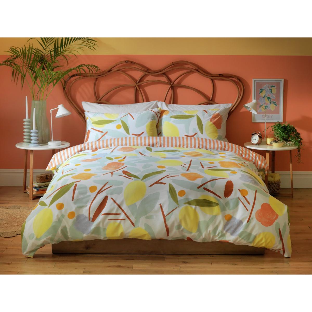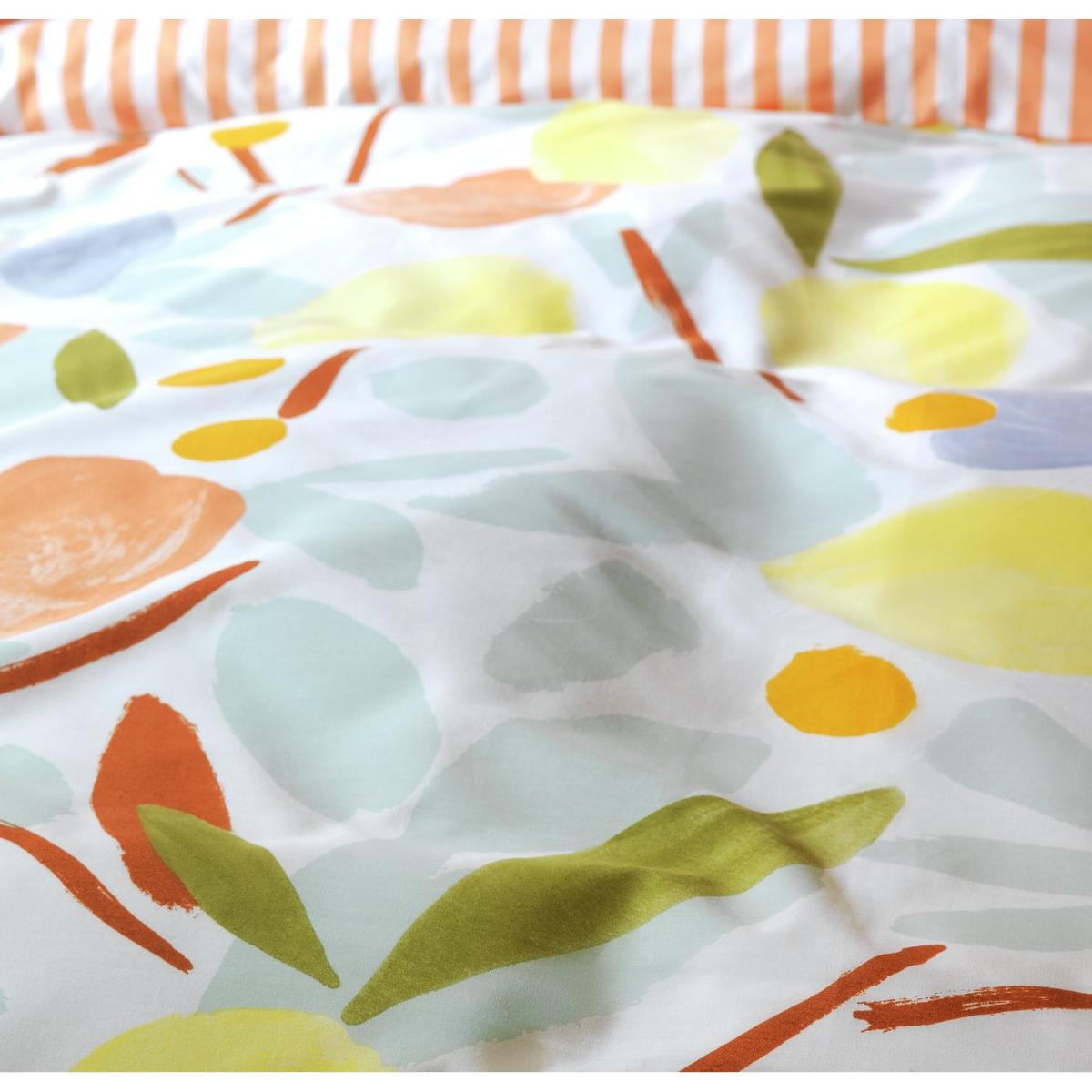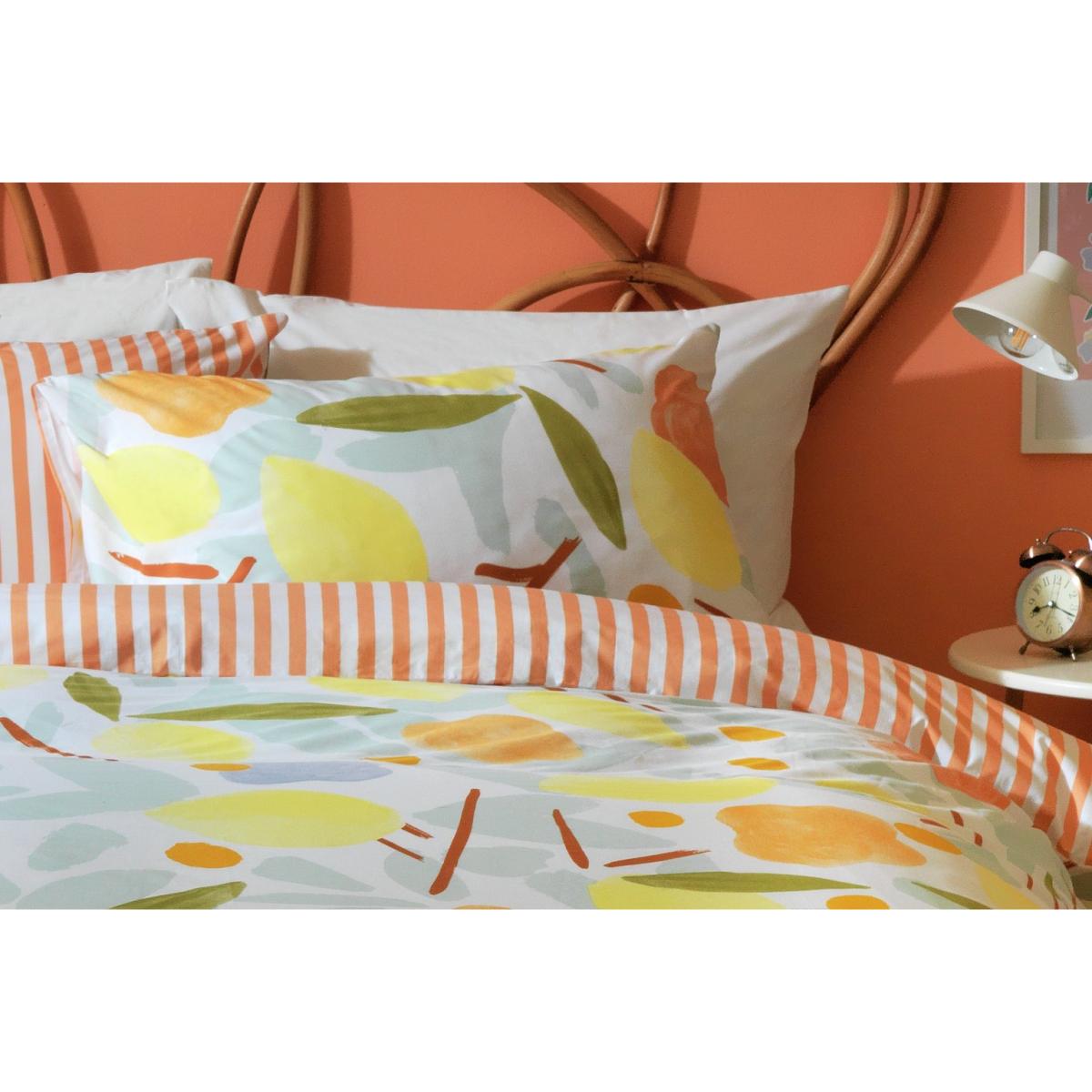 Wake up to our bright and breezy bedding set. Its zesty, fruit and floral pattern will have you feeling revitalised and ready for the day. A juicy, candy stripe makes it fully reversable too. Made from a soft, light cotton weave, we're just loving that modern vintage look. It's a beautiful breath of fresh air for your bed. Ahh!