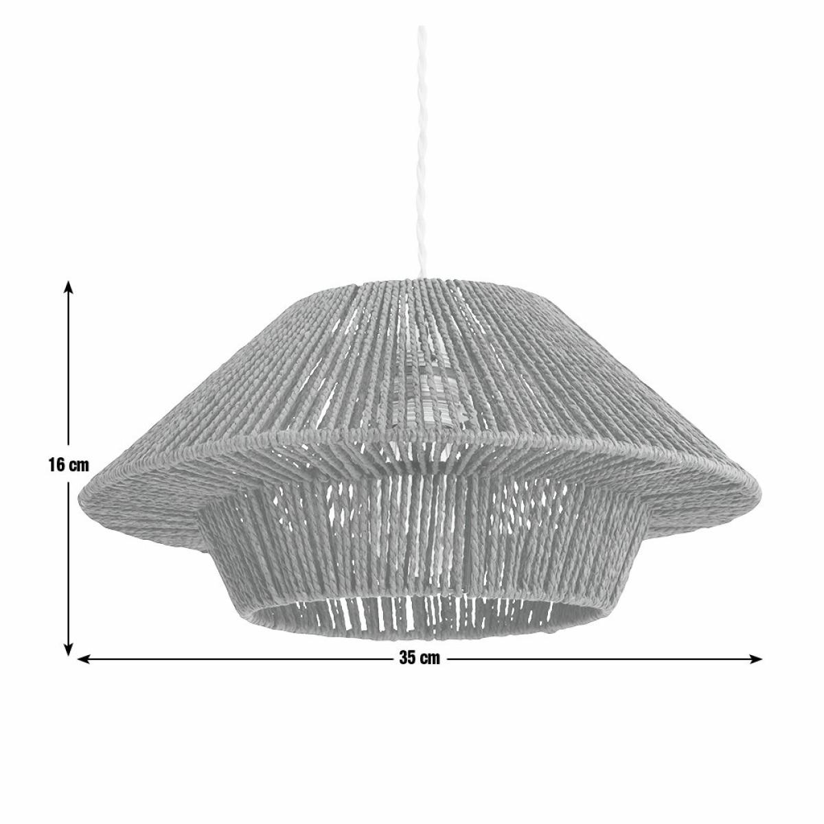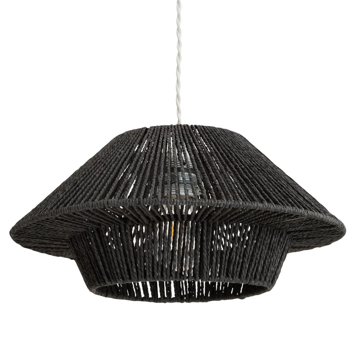 A touch of the exotic and a nod to the natural. That's the beauty of this black woven rope shade. The cleverly fashioned 2-tier design teases with glimpses of a bare bulb. It conjures up thoughts of cool cocktails and sultry nights. Put it centre stage in the lounge. Or add a little intimacy to a dining table or breakfast bar by hanging 2 or 3 in a row. Switch the mood to relax. Made from paper. Size H16cm, Diameter 35cm. Recommended maximum bulb wattage 10 watts. Fully assembled. Easy fit shade. By choosing FSC certified products, you are supporting responsible management of the world's forests. Manufacturer's 2 year guarantee.