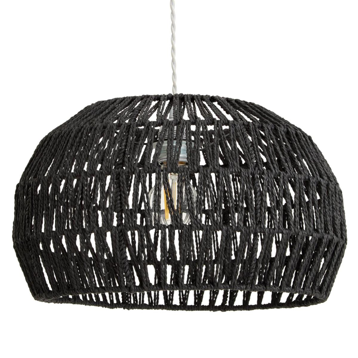 Light play. Taking a fresh look at pattern and texture, this woven black rope lampshade sets a contemporary mood. Switch on and the light shines through the open weave design casting playful patterns. A simple way to bring a laid-back, boho vibe to a room. Made from paper. Size H23cm, Diameter 39cm. Recommended maximum bulb wattage 10 watts. Fully assembled. Easy fit shade. By choosing FSC certified products, you are supporting responsible management of the world's forests. Manufacturer's 2 year guarantee.