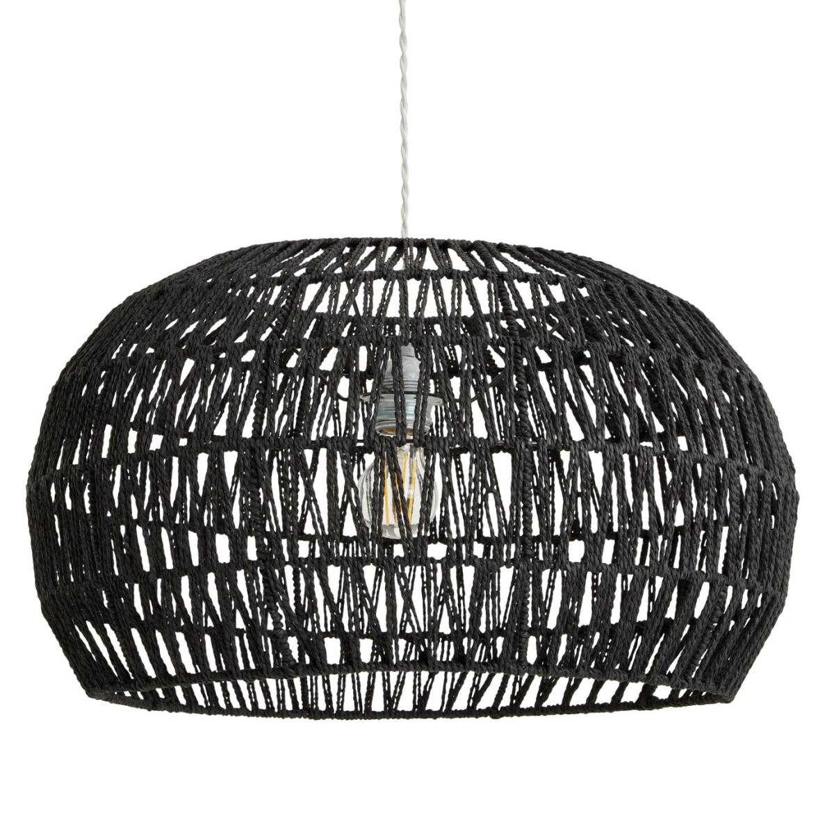 Light play. Taking a fresh look at pattern and texture, this woven black rope lampshade sets a contemporary mood. Switch on and the light shines through the open weave design casting playful patterns. A simple way to bring a laid-back, boho vibe to a room. Made from paper. Size H33cm, Diameter 54.5cm. Recommended maximum bulb wattage 10 watts. Fully assembled. Easy fit shade. By choosing FSC certified products, you are supporting responsible management of the world's forests. Manufacturer's 2 year guarantee.