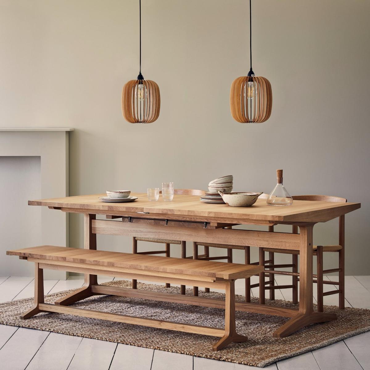 Classically Habitat, Parker oak extending dining table is reminiscent of refectory style dining furniture. Designed in house and exclusive to Habitat, the table's solid oak construction and modern subtle design features reflect the authentic craftsmanship of each piece. Great for large family suppers or parties with friends, it can accommodate up to 12 people, using an extension leaf stored inside the table. The table is also in available in walnut stained ash and both have matching Parker benches.