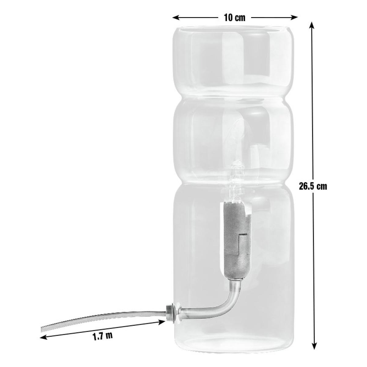 Stand tall with Parr. An effortlessly elegant table lamp, Parr is crafted from blue glass with a tall 26.5cm, curved silhouette. A statement piece that looks great on any side table, its minimalist design perfectly blends contemporary style with a touch of retro charm. Crafted with an in-line switch and cord length of 1.7m, its versatile for a range of locations and looks great even when the lights are off. Totally timeless, you'll never tire of Parr. Dimensions: Overall size H26.5, W10, D10cm, Diameter 10cm. Shade size H26.5, D10cm. Diameter of base 10cm. Cord length 1.7m. Bulb Information: Bulbs required 1 x candle E14 small edison screw LED bulb(s) (not included). Recommended maximum wattage: 7 watts. LED bulb only. General Information: Shade colour: blue. Base colour: blue. Shade material: glass. Base material: glass. In-line switch. IP rating 20 - not suitable for bathroom use. Supplied assembled. Product is mains powered plug in. This lighting product is a class 2 fitting. Habitat. Manufacturer's 1 year guarantee.