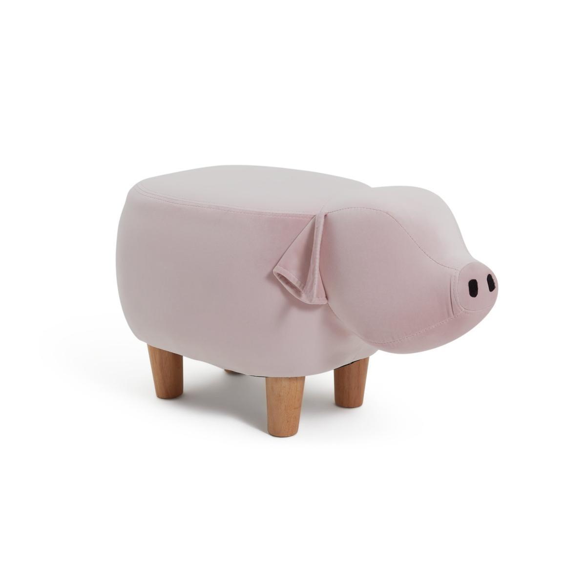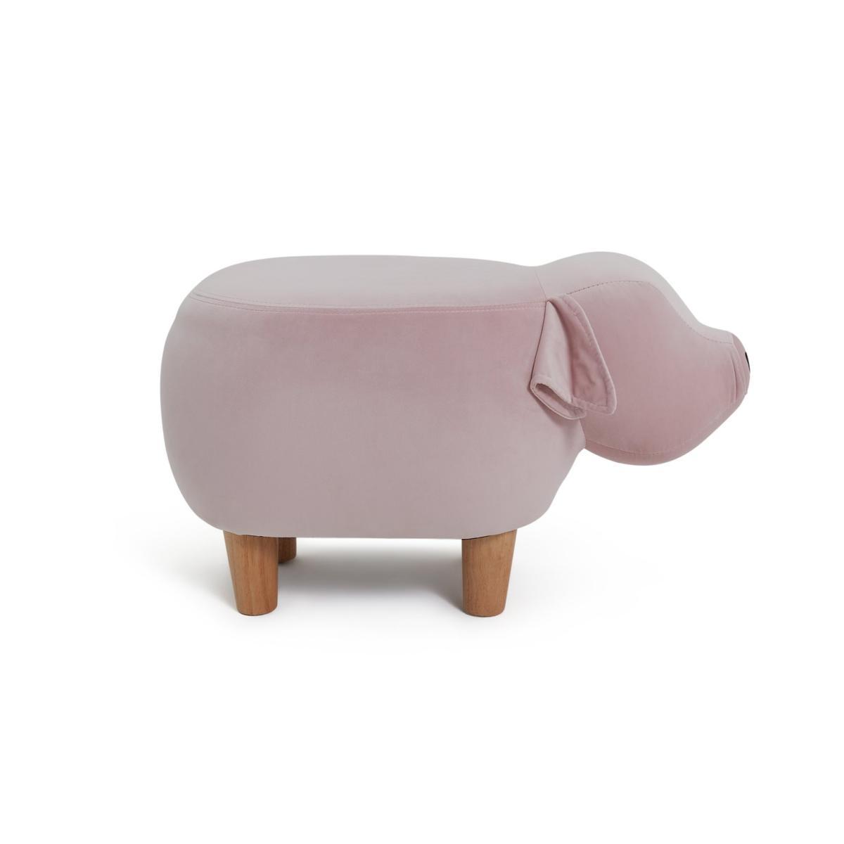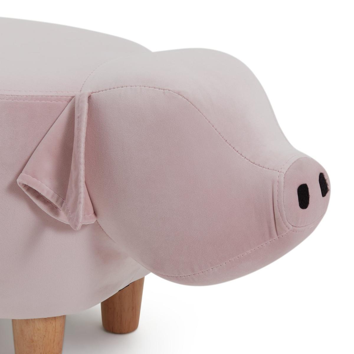 Paul the pig has come to play! The perfect pal for playtime or for sitting on when it's time for putting on shoes, this fun little pig stool makes a great accessory for any kid's bedroom or playroom. Soft and cushioned for a cuddly feel, it's covered in sumptuously touchable blush pink velvet and features chunky wooden legs.