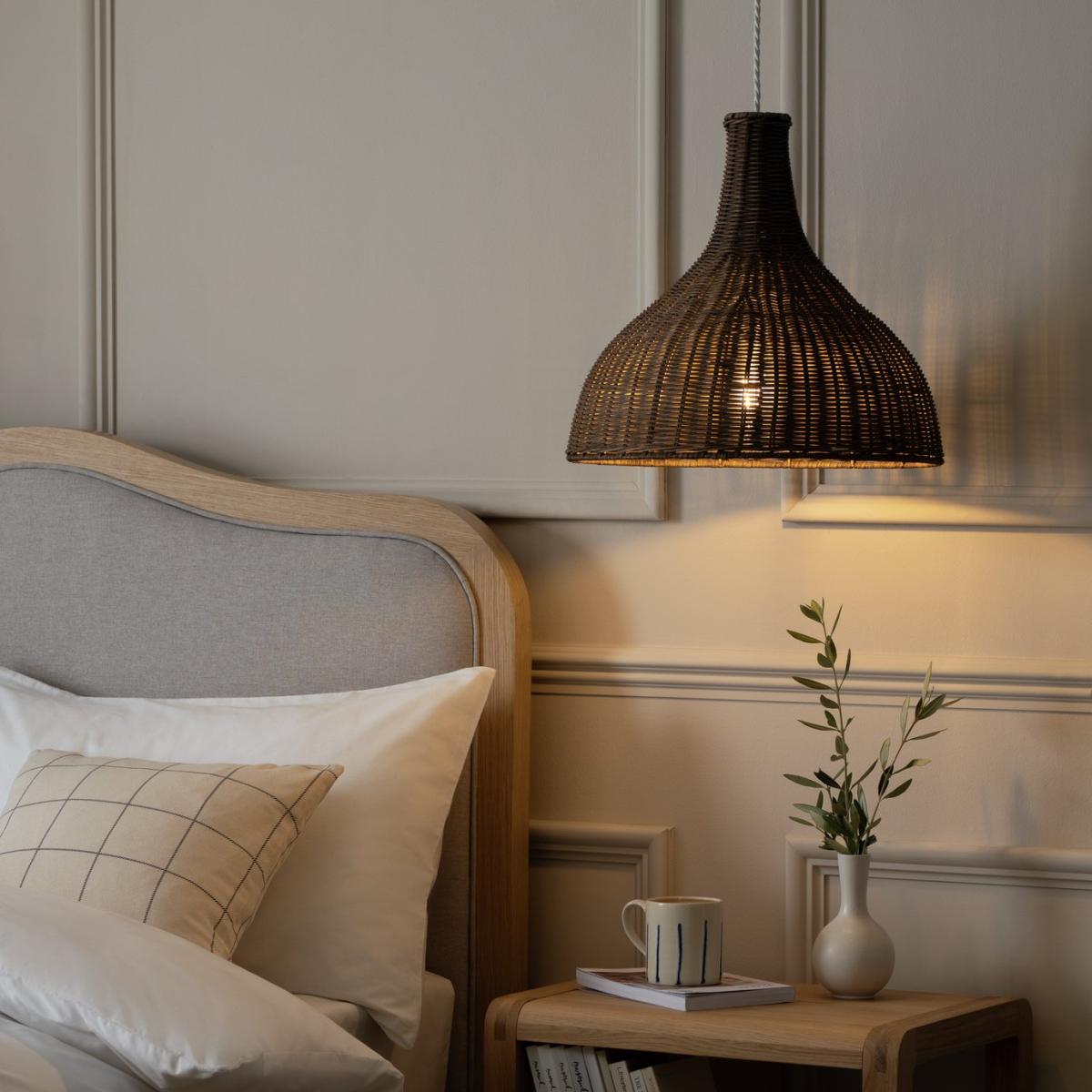 I love this habitat pear wicker shade for adding texture and a natural touch to a variety of interiors. Its grey hue is versatile and works well in both contemporary and more traditional schemes, especially where you want to bring in organic elements. It’s particularly effective in cosy bedrooms or living rooms with neutral or soft colour palettes. Practical styling tips include pairing it with warm lighting to highlight the wicker’s natural tones or using it in a layered lighting scheme for added depth. It’s also a great choice for a mix-and-match look when combined with other woven or textured accessories, creating a relaxed, welcoming atmosphere.