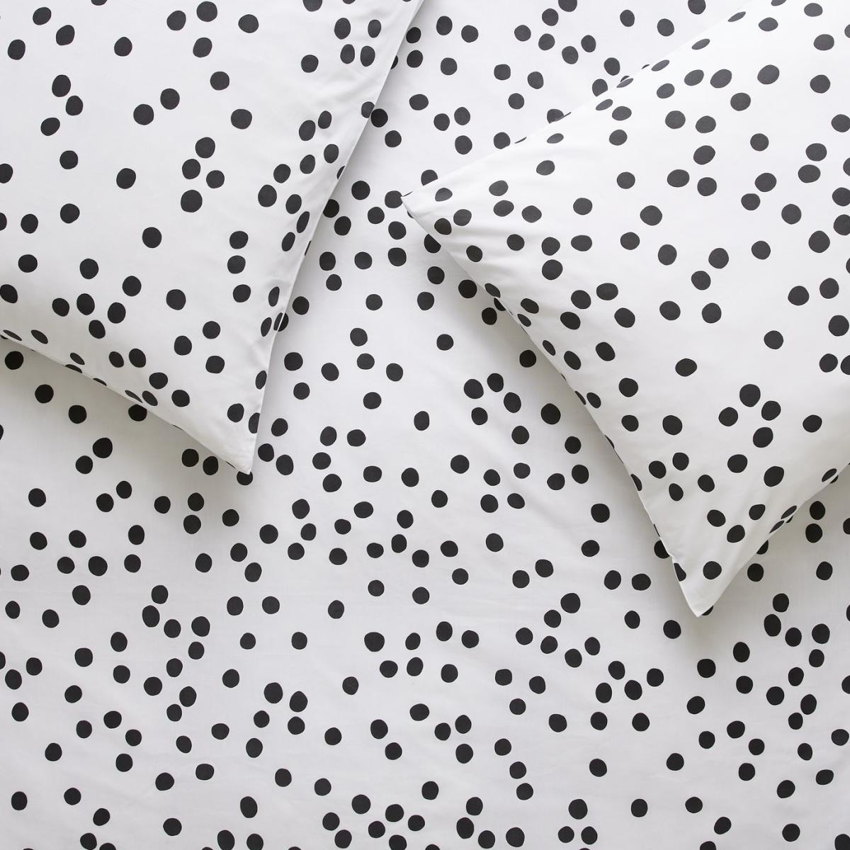Absolutely dotty. Our Penny bedlinens feature organic black dots on a white background for a playfully elegant look. 100% cotton and a 180-thread count make them cosy to sink down into at the end of the day. Penny fits with any decor style from natural to monochrome to Scandi. And this great value super king set comes with 2 pillowcases and a duvet cover.