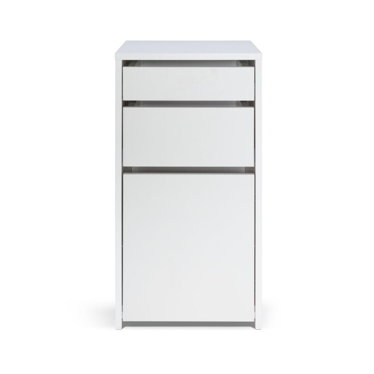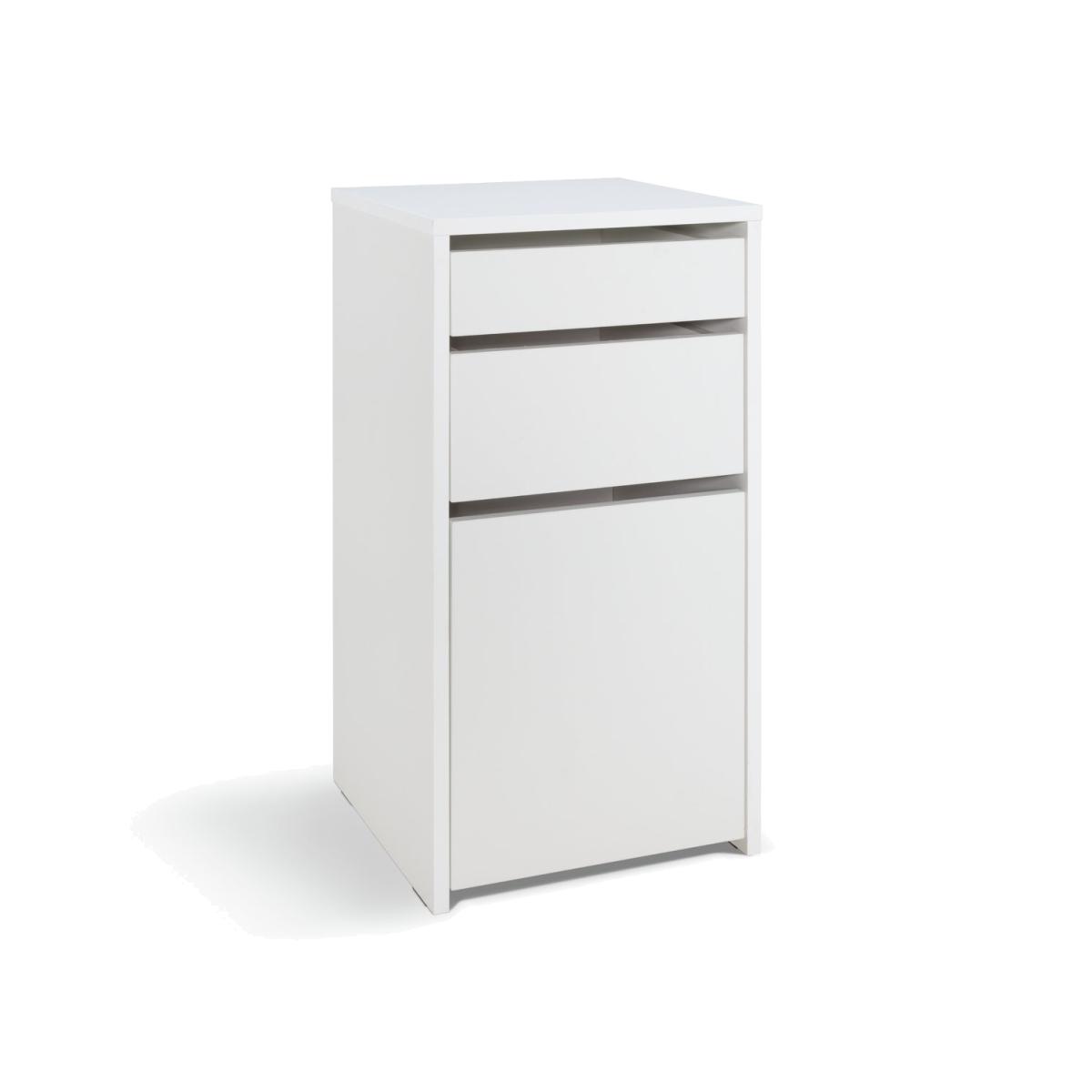 Our pedestal cabinet does the job, so you can do yours. Our no-nonsense white Pepper cabinet gives you the perfect place to file away documents, correspondence and letters. 2 easy-close drawers and roomy cupboard let you configure space the way it works for you. Utilise the top with diary or calendar or style it up with a plant to pretty up the space. Part of the Pepper. Made from melamine with a wood effect finish. 2 non-locking drawers. Size H76.5, W40, D40cm. Weight 19kg. Self-assembly. If this product is over 60cm high it must be securely attached to the wall to prevent overturning. General Information: Manufacturer's 1 year guarantee.