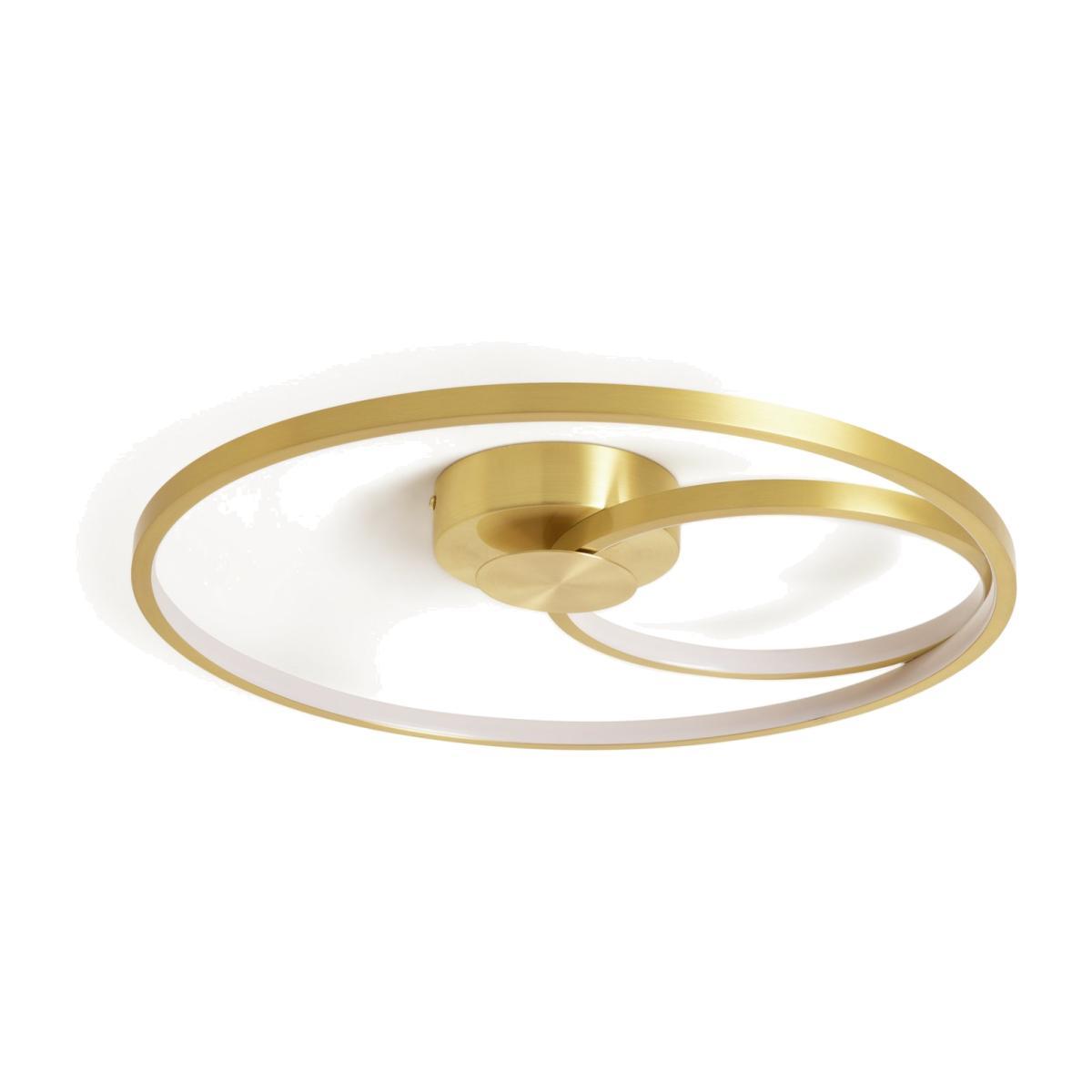 A shapely way to shine. Our sculptural LED ceiling light in brushed brass makes a unique style statement. Lighting up the lounge or brightening the boudoir? The double-halo shape looks glamorous wherever it goes. Glow for gold. Love things a little luxurious? Match with more fun, fashionable decorin our Citrine Collection. Dimensions: Size H6.5, , Diameter 45.5cm. 6.5cm drop. Bulb Information: Integrated LED (included). Recommended maximum wattage: 15 watts. Colour rendering index 80. Colour temperature 3000. K. Rated luminous flux 1000 lumens. General Information: Brass. IP rating 20 - not suitable for bathroom use. Self-assembly. Product is hard-wired into electrics. D energy rating. We are excited to be welcoming some of our favourite HOME products into the Habitat range. Your product may arrive in Habitat or HOME packaging. Manufacturer's 1 year guarantee.