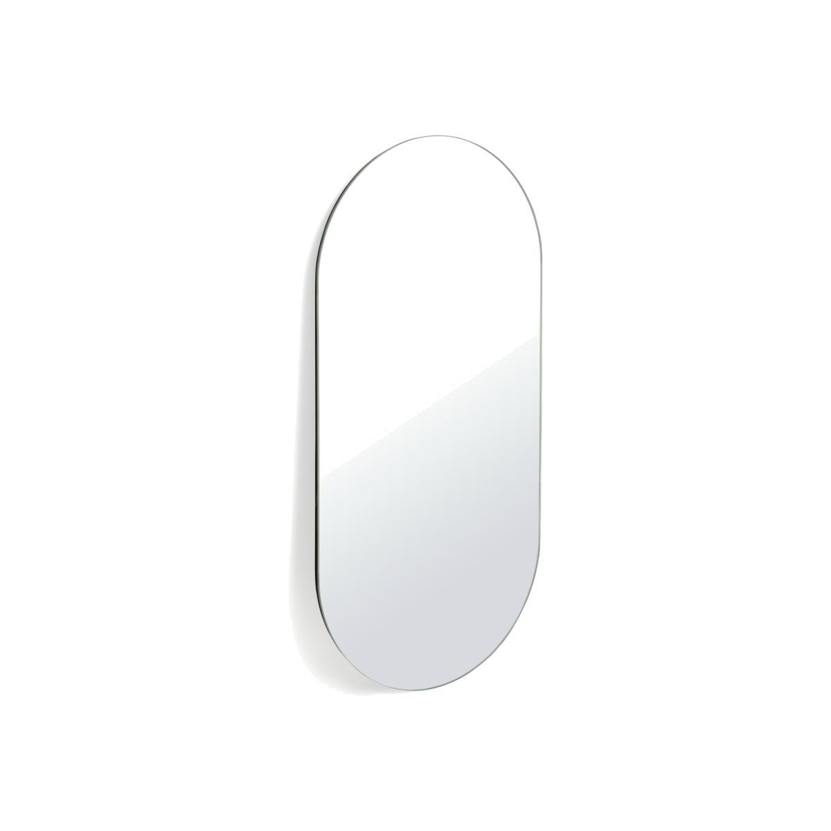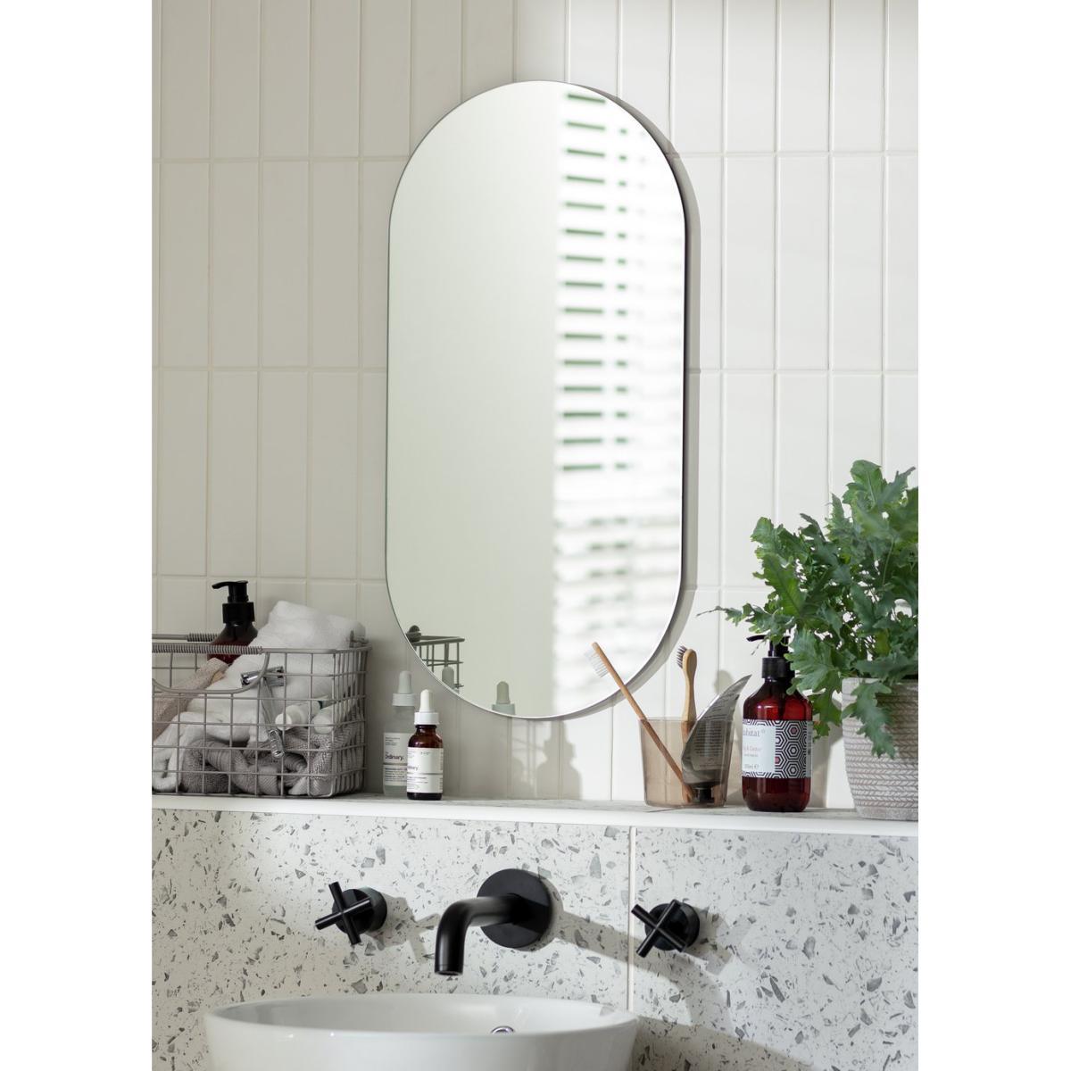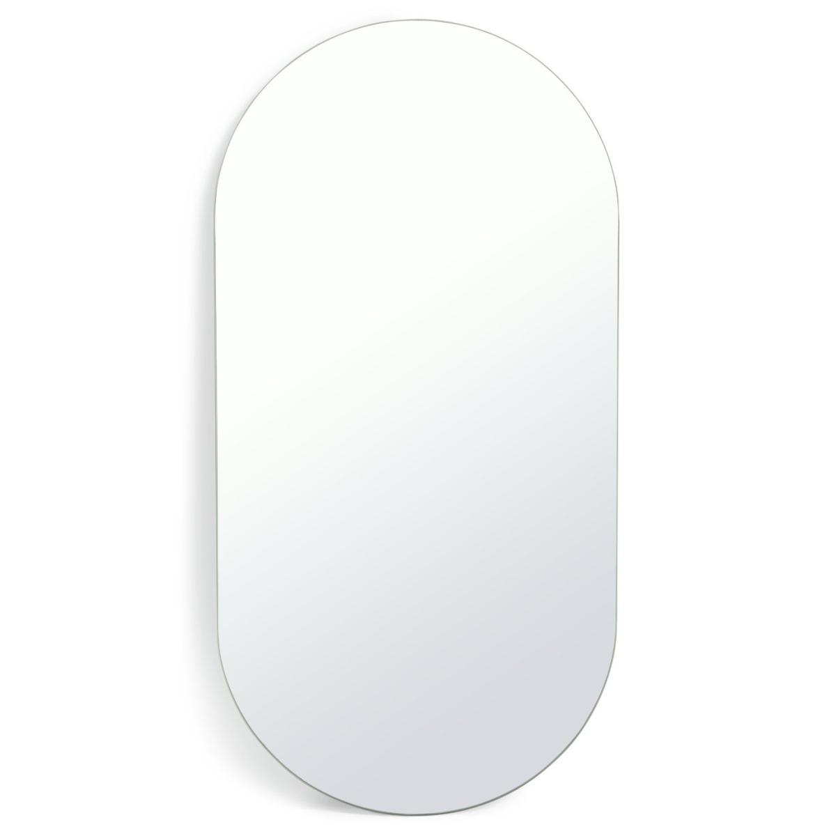 Hey, good looking! Check out this wall mounted oval bathroom mirror. Unframed and super simple, it brings an instant dash of contemporary style to any bathroom. At nearly 2ft high, it's an ideal size. Get up close and personal to fix your hair and makeup, or to shave. Or stand back to take in your whole look. It comes with a D ring so it's simple to hang too.
