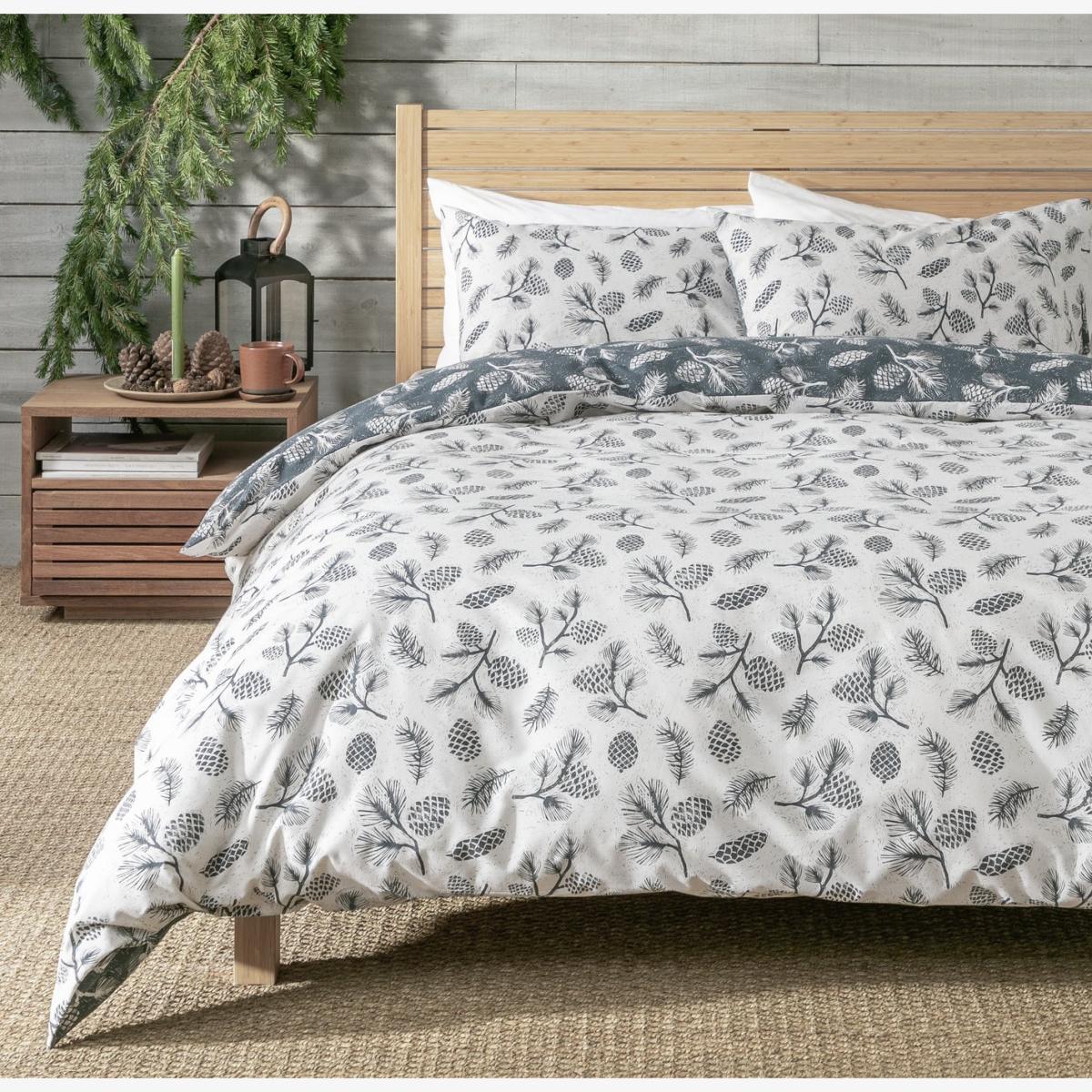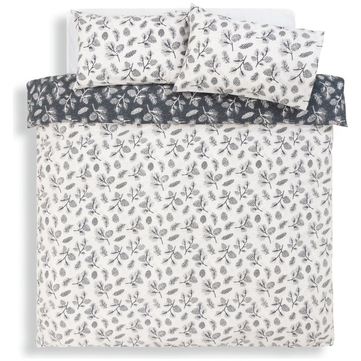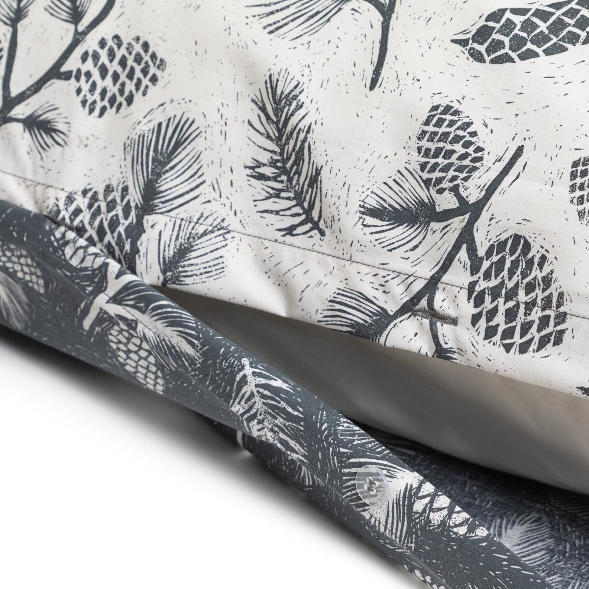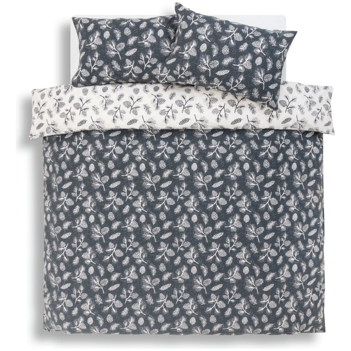 With a pinecone print, this woven bedding set is country fresh. Perfect for creating an organic and cottage core feel in the bedroom. Completely reversible, just flip to change the tonal mood. We love the homely feel and the soft 180 thread count. Finish: woven. 52% recycled polyester , 48% cotton. 180 thread count. Set includes 1 duvet cover and 1 pillowcase. Bed size: single. Length 200cm, Width 135cm. Buttons for fastening. Standard pillowcase (s). Pillow case length 75cm, Width 50cm. Machine washable at 40 C. Suitable for tumble drying.