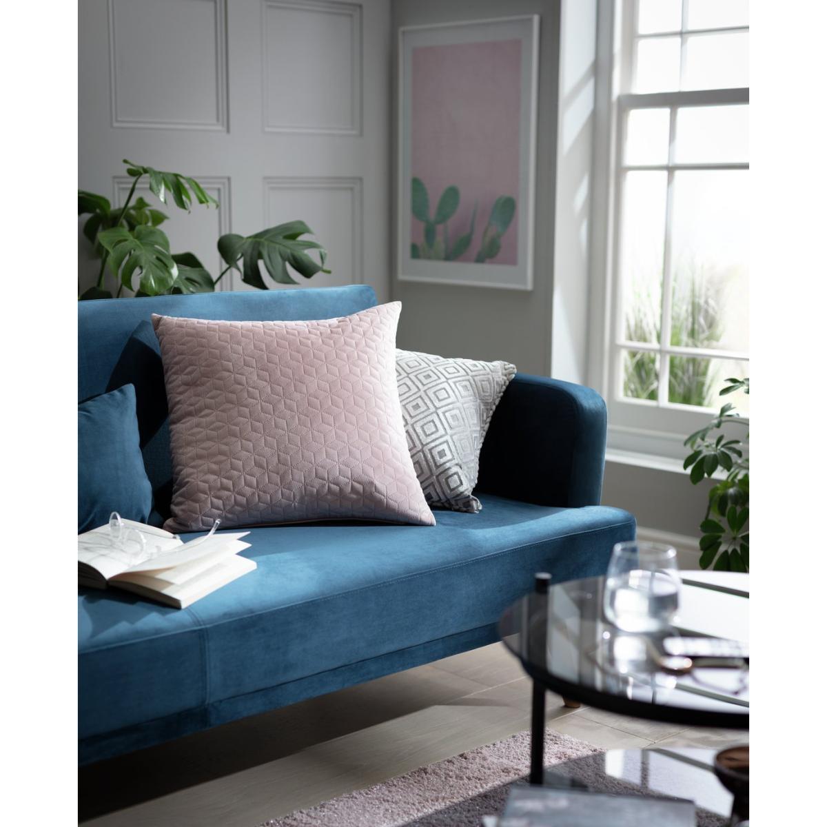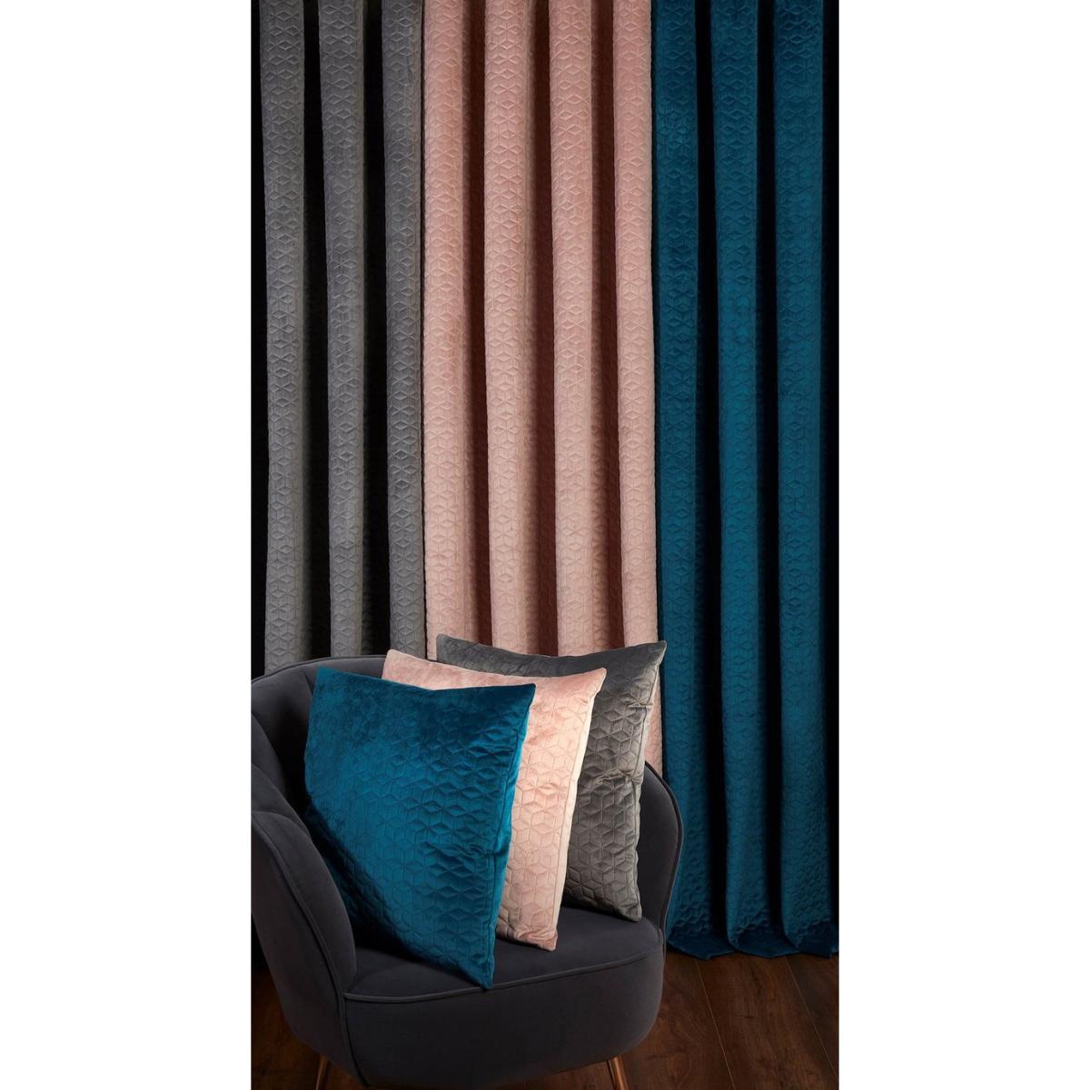Great as standalone seat softeners or to accompany the elegant matching curtains available, this sumptuously velvet soft cushion makes an impressive addition to any room. Intricately finished with a geometric stitch design, the fabric is backed with a lightweight wadding which gives them a quilted look. Filled with a plump and bouncy polyester, dot a few of them around to up the comfort factor.
