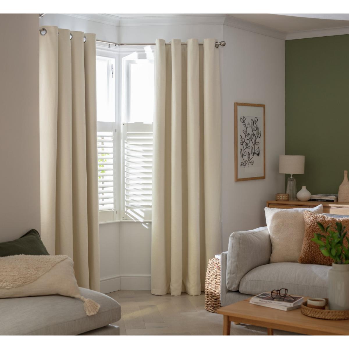 Beautiful Boucle. Slide our dark grey textured blackout curtains straight onto your curtain pole for an instant room refresh. The woven boucle fabric, backed by a thick lining, falls in soft wide folds from the stainless-steel eyelet header. A curtain for all seasons. Draw them to keep out summer light. Open and closed they're a smart pair. Blackout Lined. Why not wake up to luxury linen too, we have some adorable options that'll look fabulous with these curtains. Cream Plain Design. Silver Stainless iron Eyelets. Features Blackout. Made from 100% polyester. Lining made from 100% polyester. Dimensions Size 168cm (66 inches) wide by 229cm (90 inches) drop. Eyelet diameter: 4cm. General information Contains one pair of curtains. Suitable for curtain poles. Curtain pole not included. Professional clean only. General Information: We are excited to be welcoming some of our favourite HOME products into the Habitat range. Your product may arrive in Habitat or HOME packaging.