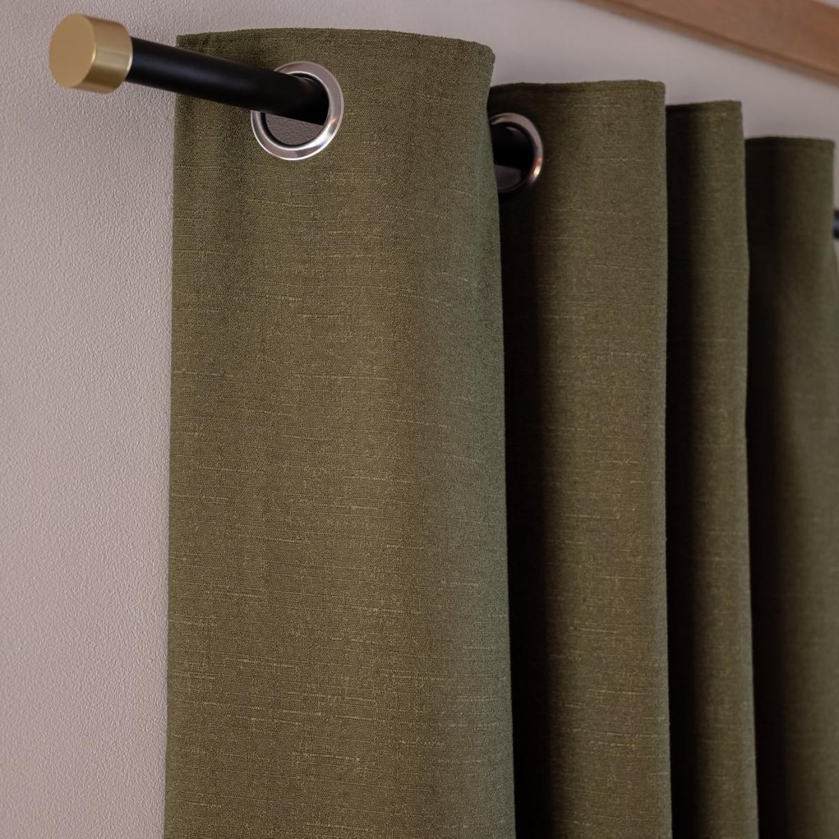 Beautiful Boucle. Slide our green textured blackout curtains straight onto your curtain pole for an instant room refresh. The woven boucle fabric, backed by a thick lining, falls in soft wide folds from the stainless-steel eyelet header. A curtain for all seasons. Draw them to keep out summer light or keep in winter heat. Open and closed they're a smart pair. Team with a sheer blind or voile to take your window treatment one stage further. Why not wake up to luxury linen too, we have some adorable options that'll look fabulous with these curtains. Green Plain Design. Silver Stainless iron Eyelets. Features. Blackout. Made from 100% polyester. Lined. Lining made from 100% polyester. Dimensions Size 168cm (66 inches) wide by 183cm (72 inches) drop. Eyelet diameter: 4cm. General information. Contains one pair of curtains. Suitable for curtain poles. Curtain pole not included. Professional clean only. General Information: We are excited to be welcoming some of our favourite HOME products into the Habitat range. Your product may arrive in Habitat or HOME packaging. Manufacturer's 1 year guarantee.
