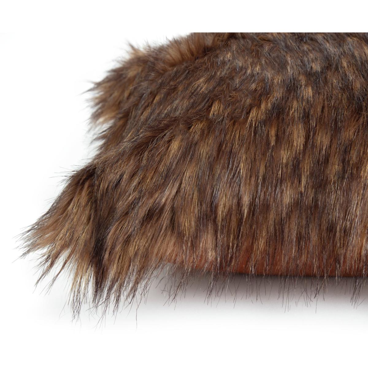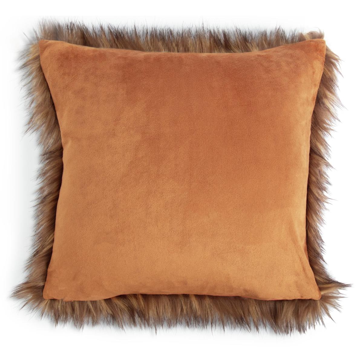 Fabulous fake fur tipped cushion. Does it feel like the real thing? You bet. Softly strokable and snuggly cuddly. Looks like the real thing too. An ultra-realistic blend of different natural brown shades adds to its genuine luxe looks. And the other side is not to be outdone either. Smooth and golden bronze. Just the thing for adding a pop of Nordic cosy to a sofa or bed. A wonderful winter warmer.