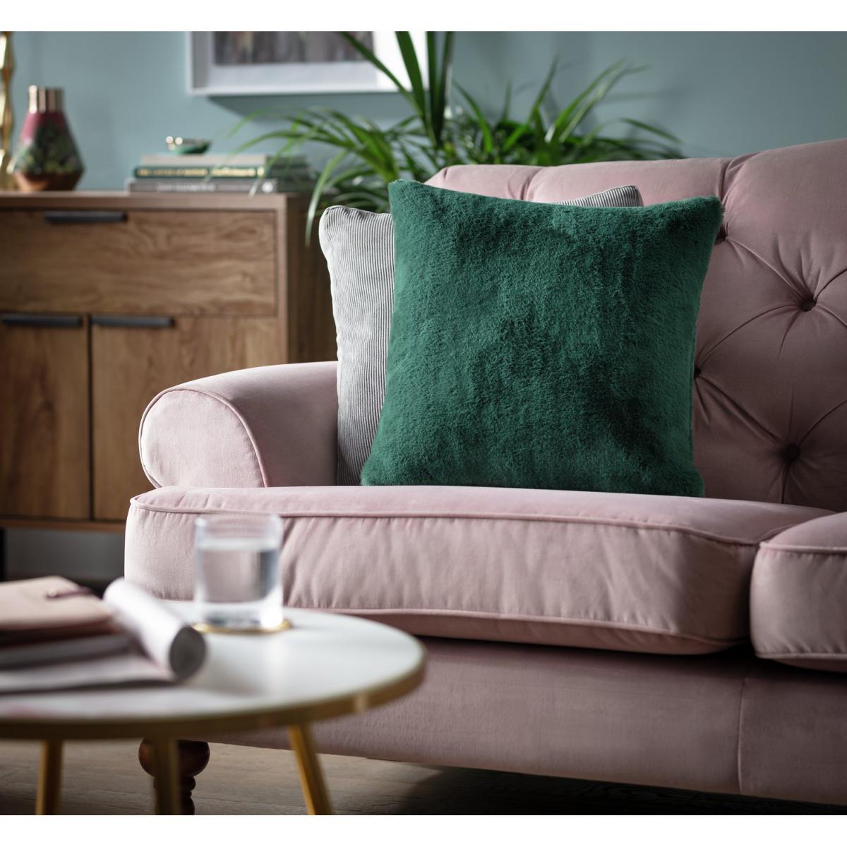 Soft and strokable. Our faux fur cushion in deep Emerald green is so plush and plump it's just waiting for a hug. Made from a luxuriously soft polyester with a fluffy pile, it's the perfect cuddly companion. Throw a few on the sofa to add a vibrant splash of colour and a touch of luxe. Or arrange on your bed to style it like a pro. Time for a quick refresh? The cover unzips and is washing machine and tumble dryer friendly. Faux fur they may be, but these easy zip off covers can go straight in the wash. They don't make a drama over a few drips or spills. Fully sewn and stuffed cushion. Zip fastening. Cover 100% polyester. Filling 100% polyester. Size L43, W43cm. This cover is machine washable.