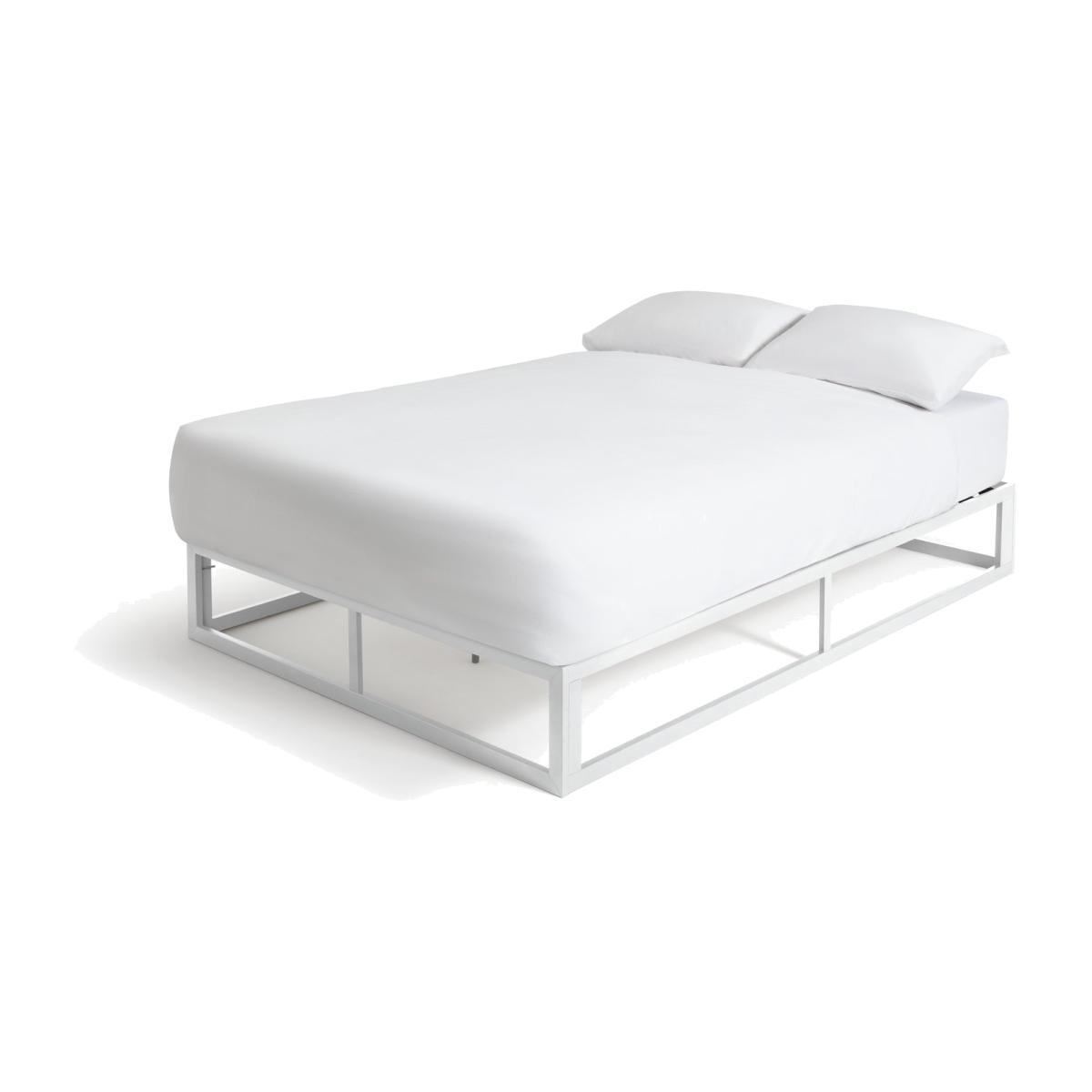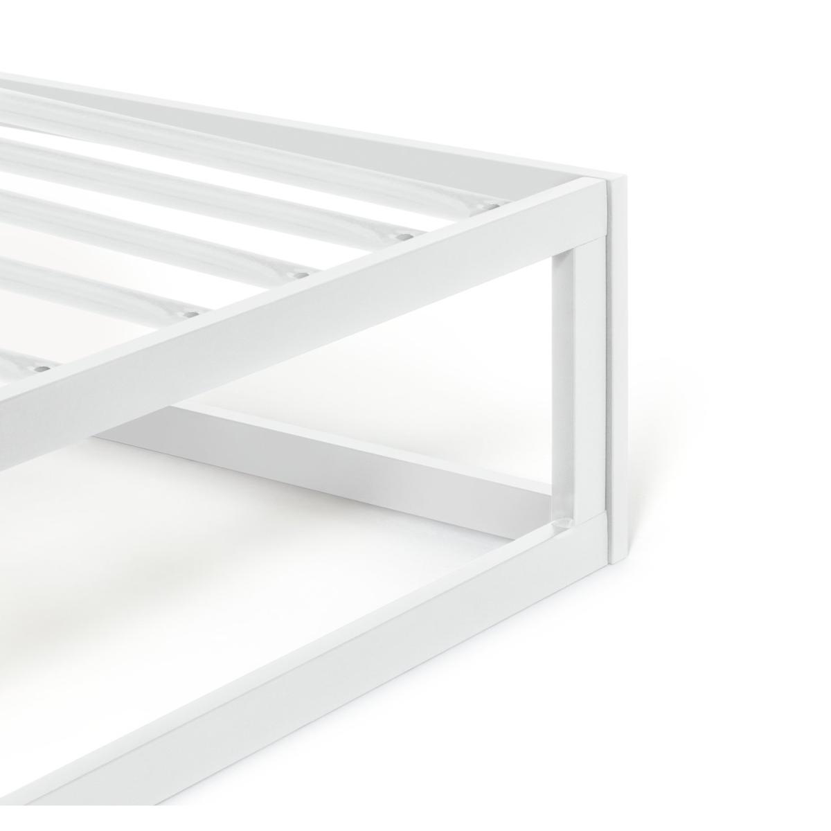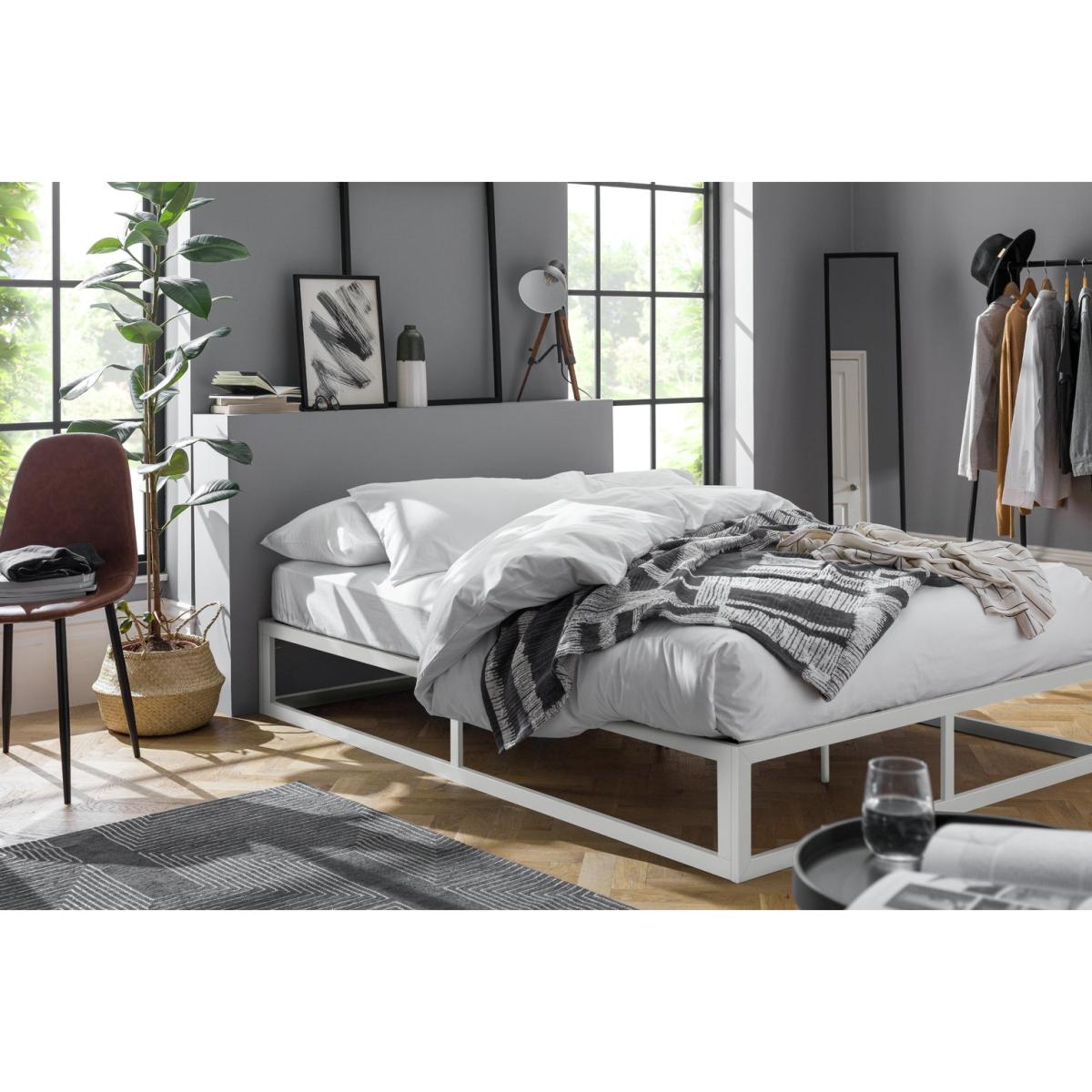 A simple white metal bedframe is all you need to create your own bedroom style. Its unfussy linear design gives it a contemporary look. Metal slats provide firm support for a double mattress and allows air to circulate for a healthier sleep. Part of the Platform collection. Metal frame. Base with metal slats. Size W141.5, L196, H28cm. Height to top of siderail 268cm. Weight 19kg. Total maximum user weight 220kg. Self-assembly - 2 people recommended. Package Dimensions: Package 1 dimensions: H140, W32.5, D205cm. General Information: We are excited to be welcoming some of our favourite HOME products into the Habitat range. Your product may arrive in Habitat or HOME packaging. Manufacturer's 2 year guarantee.