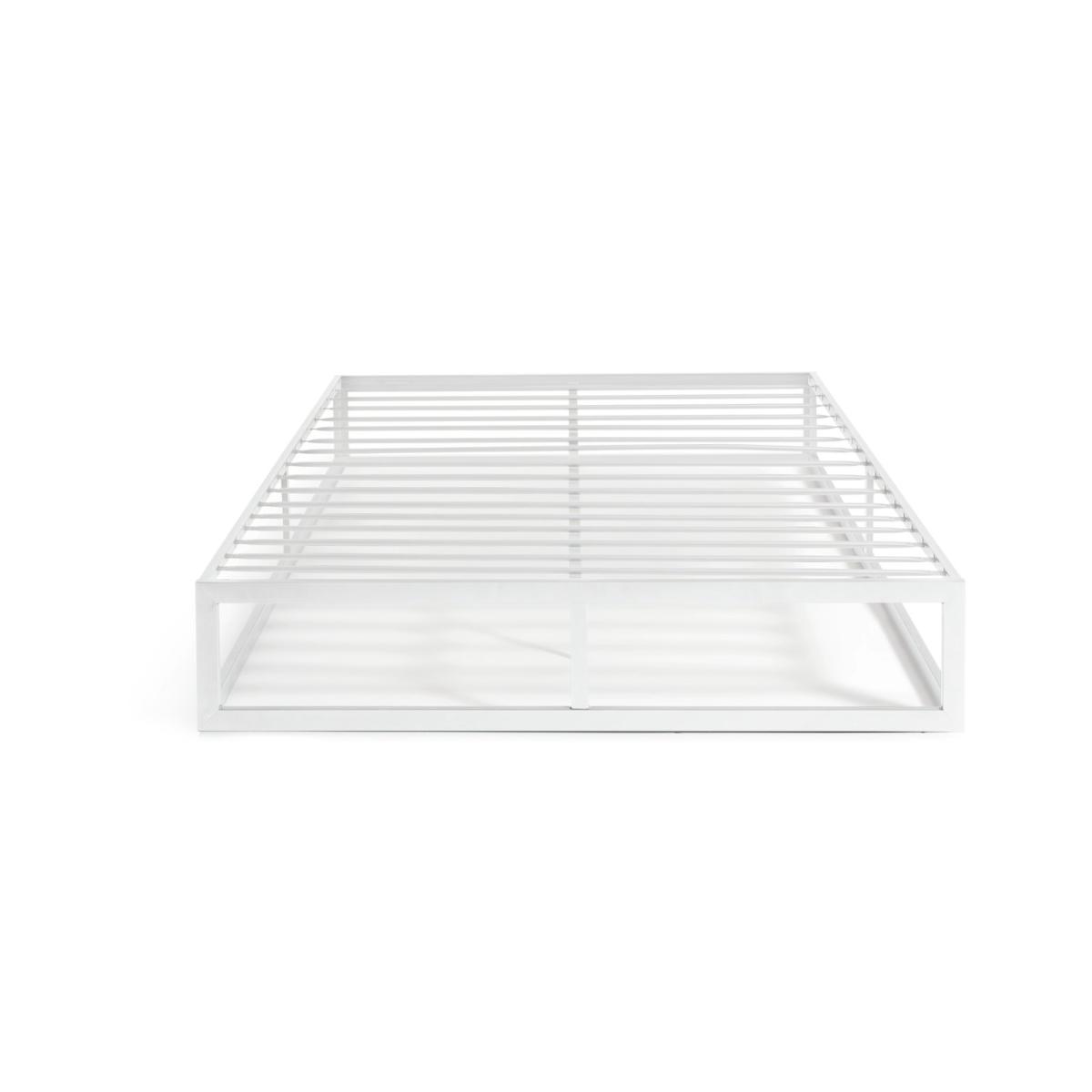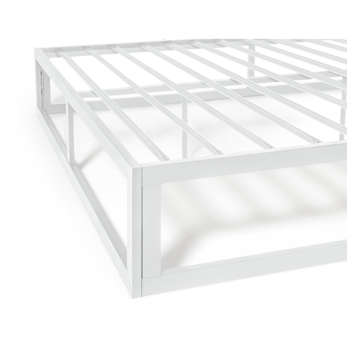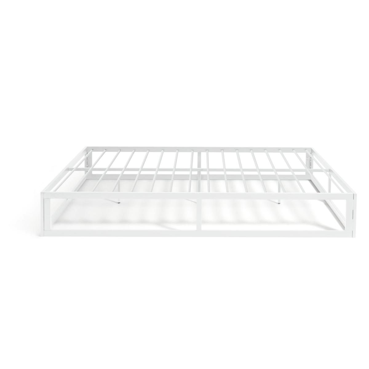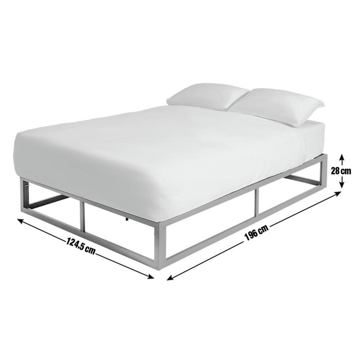 A simple white metal bedframe is all you need to create your own bedroom style. Its unfussy linear design gives it a contemporary look. Metal slats provide firm support for a small double mattress and allows air to circulate for a healthier sleep. Part of the Platform collection. Metal frame. Base with metal slats. Size W124.5, L196, H28cm. Height to top of siderail 268cm. Weight 17.9kg. Total maximum user weight 220kg. Self-assembly - 2 people recommended. Package Dimensions: Package 1 dimensions: H140, W32.5, D205cm. General Information: We are excited to be welcoming some of our favourite HOME products into the Habitat range. Your product may arrive in Habitat or HOME packaging. Manufacturer's 2 year guarantee.