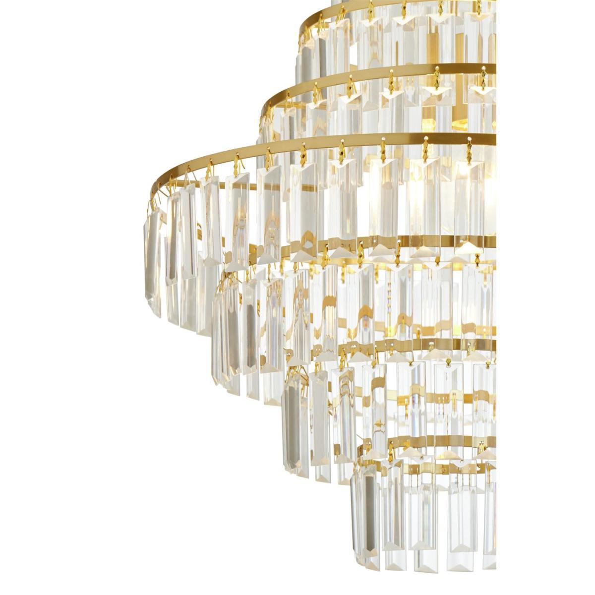 The ultimate showstopper. Presley creates a sense of drama and glamour. Crafted in brushed brass with 8 tiers of delicate clear hanging crystals, this elegant chandelier commands attention. Refracting light wherever it's placed, Presley's elegant glass structure adds pattern and texture to your home. Whether making an entrance in the hallway or taking centre stage in the living room, Presley becomes a focal point in any room. Easy to assemble, refresh your space in an instant with this striking chandelier.
