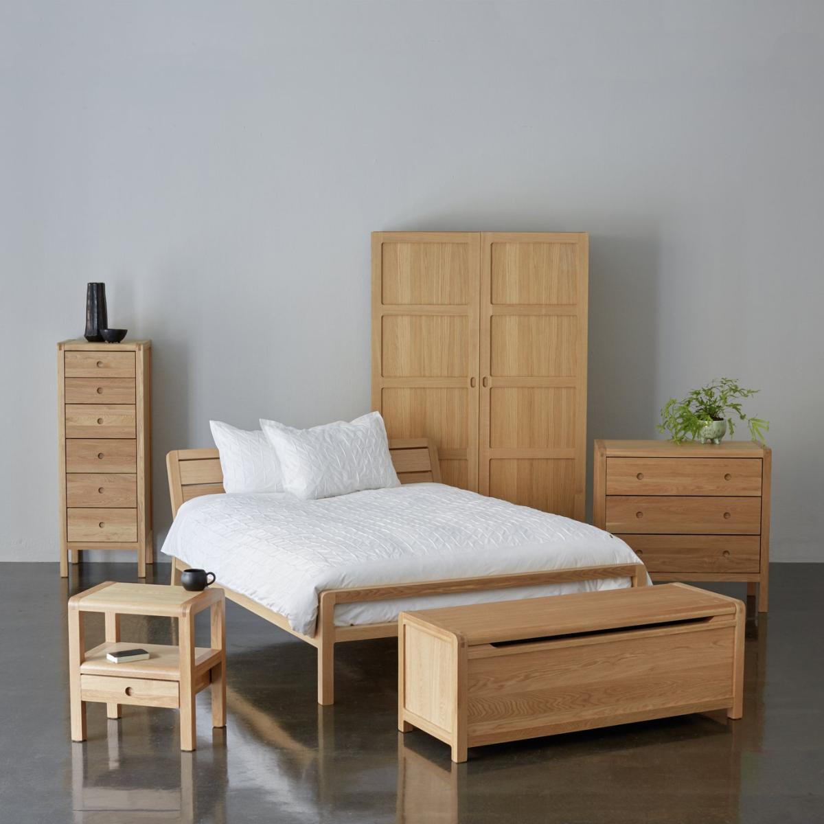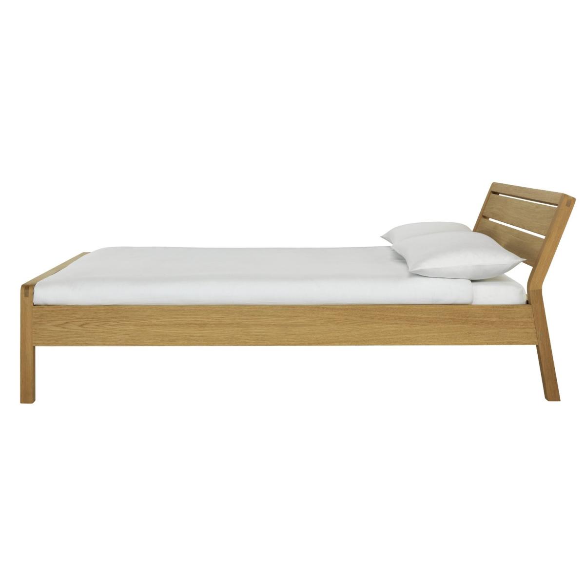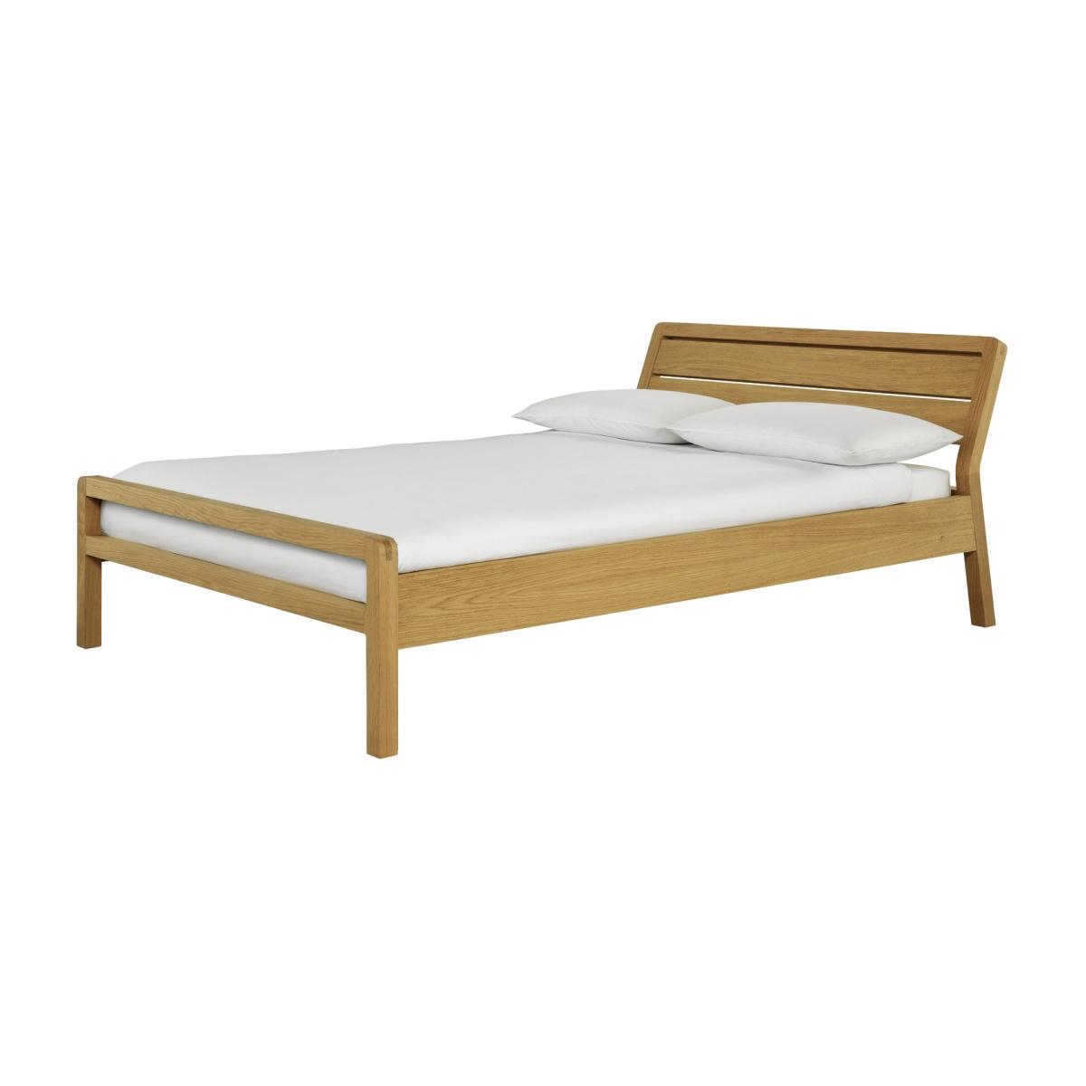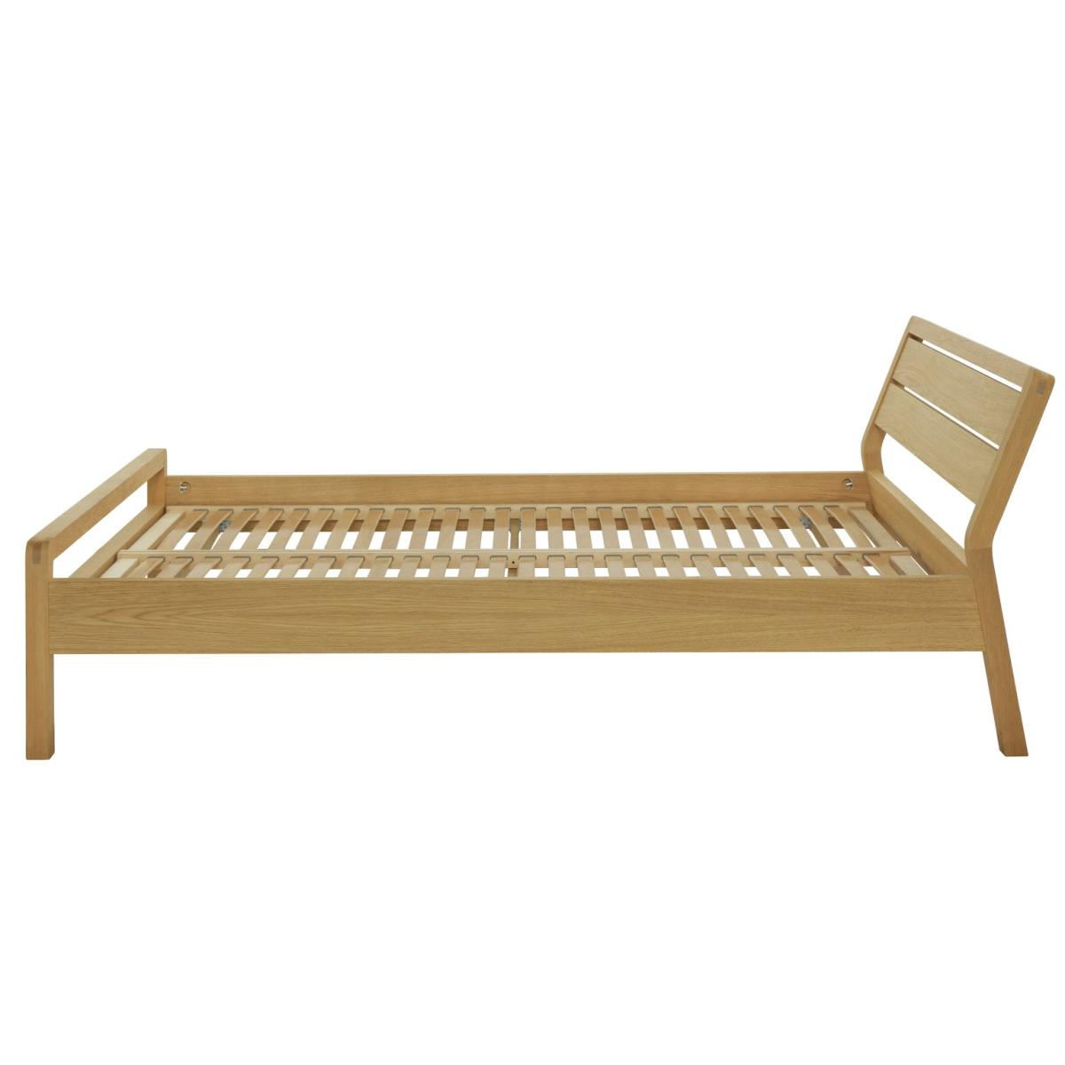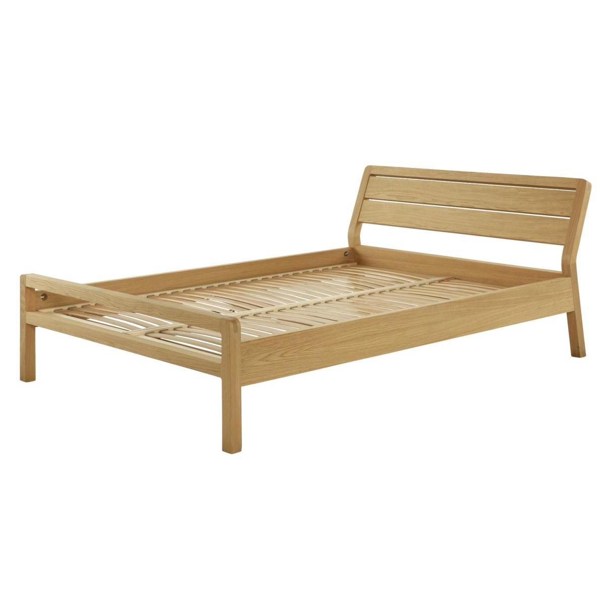 Hitting the snooze button again? With a bed as inviting as this solid oak kingsize, we'll forgive you for sleeping in. Sturdy and stylish, this bed has a crafted, timeless quality. Natural woodgrain and softly rounded corners add bags of character. Prop a cushion against the gently sloping headboard and enjoy some relaxed reading. Happy in a modern or traditional setting. Just pile with a plump patterned duvet and soft pillows for a dreamy, sleepy sanctuary. Maybe just a few minutes more. Part of the Radius collection, you'll find a host of solid oak storage and bedroom accessories to match this lovely bed. Part of the Radius collection. Solid oak and oak veneer frame. Base with wooden slats. No storage. Size W157, L223, H84cm. Height to top of siderail 84cm. 26cm clearance between floor and underside of bed. Weight 29kg. Total maximum user weight 220kg. Self-assembly - 2 people recommended. Package Dimensions: Package 1 dimensions: H21, W93.5, D166cm. Package 1 weight: 31kg. Package 2 dimensions: H12, W25, D209.5cm. Package 2 weight: 13.5kg. FSC certified meaning the materials used for this product are responsibly sourced. General Information: Manufacturer's 1 year guarantee.