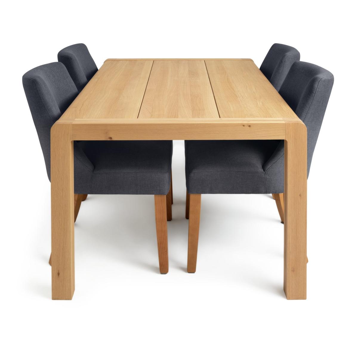Modern, relaxed dining. Seat 4 in style with our Habitat dining table and chairs set. Beautifully crafted and showing off its deep grain, the solid oak dining table is a fine piece of furniture. And look at those smart midback dining chairs. The charcoal upholstery and solid beechwood are a contemporary combo. A padded seat and ergonomic shaped backrest is designed to support you all the way. So pull up a chair, settle in, the night is young.
