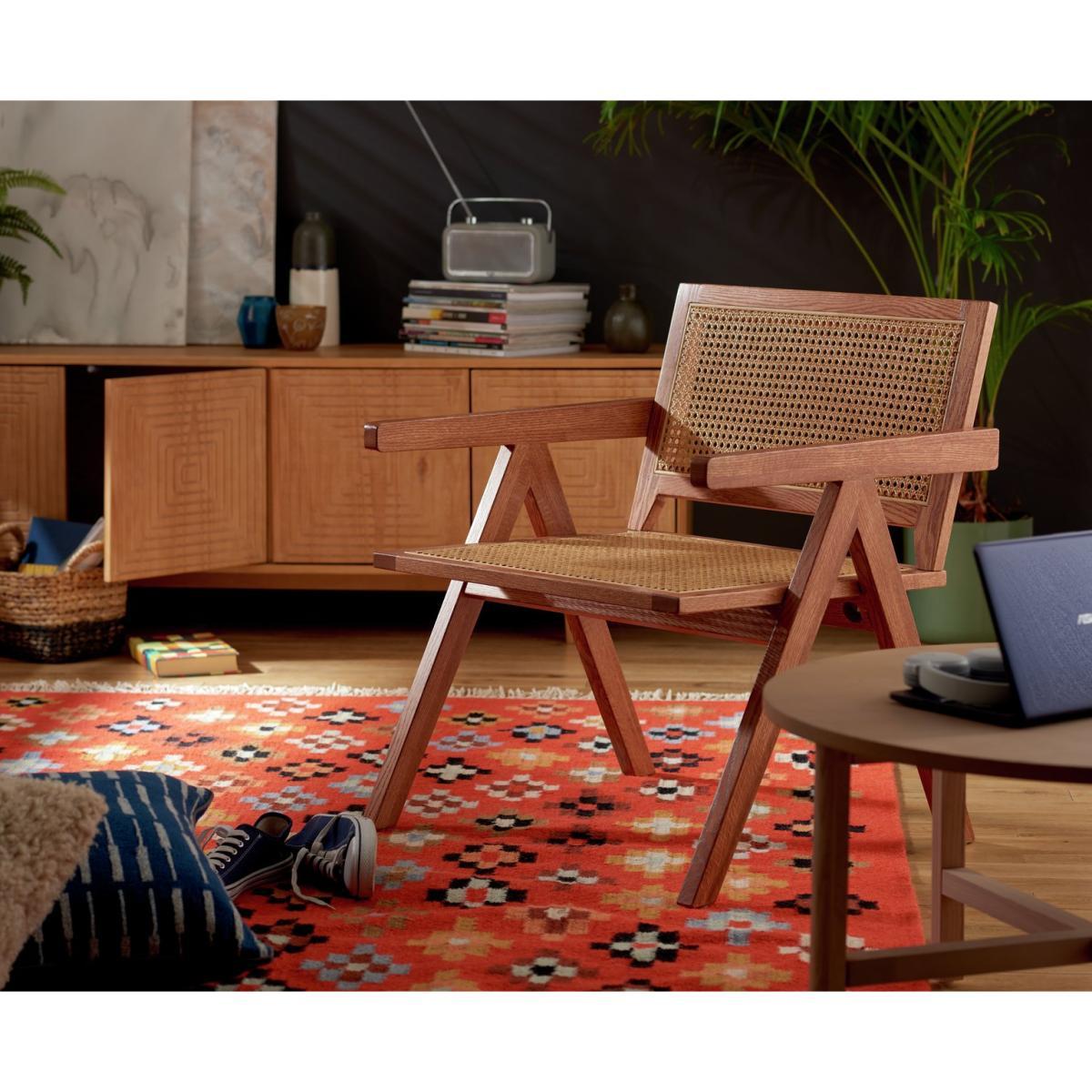 Indulge in design with Raffles. Handcrafted from 50% rattan and 50% oak, our wooden armchair brings 100% luxury to your living room. A striking, contemporary chair with intricately woven panels. Add a touch of texture and warmth to your space. Stylishly supportive with its sloping back, soft rattan and smooth solid wood arms, it feels as good as it looks. Sit back, settle in.