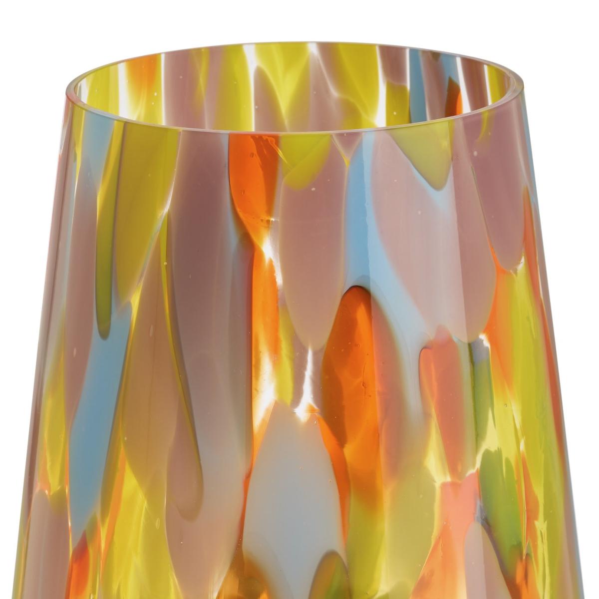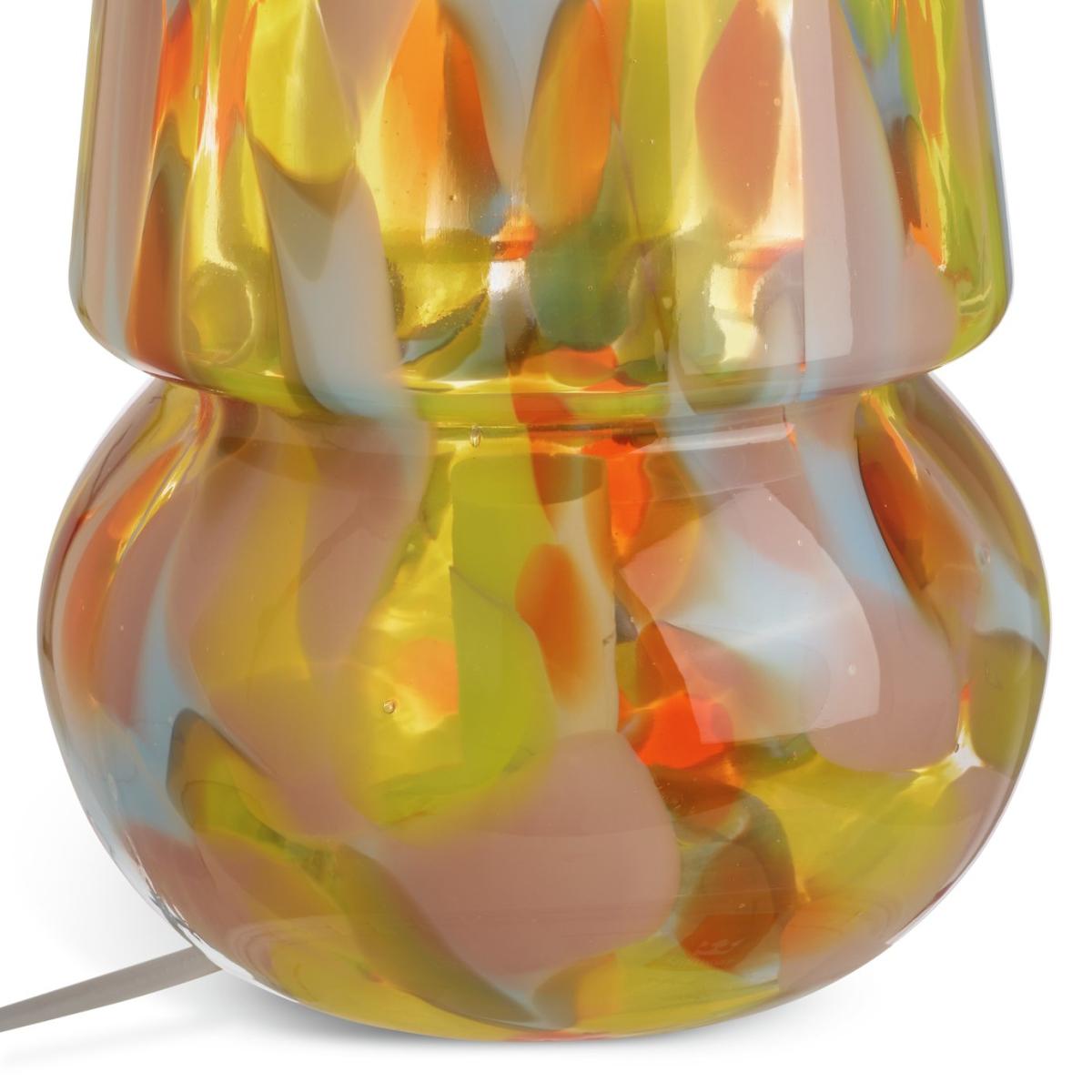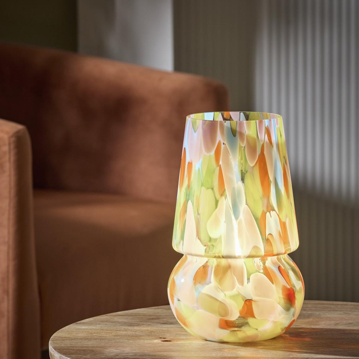 Zing into Spring. This exquisite confetti glass table lamp in shades of orange, yellow, green and blue brings colour, form and personality to your home. Designed to cast light throughout its entire shape, it elevates any cabinet or bedside with a pop of ambient joy. Dimensions: Overall size H26.4, W16.3, D16.3 cm. Shade size H26.4, D16.3cm. Diameter of base 16.3cm. Cord length 1.7m. Bulb Information: Bulbs required 1 x candle. E14 small edison screwfilament LED bulb(s)(not included). Recommended maximum wattage: 7 watts. LED bulb only. General Information: Shade colour: multicoloured. Base colour: multicoloured. Shade material: glass. Base material: glass. In-line switch. IP rating 20not suitable for bathroom use. Supplied assembled. Product is mains powered plug in. This lighting product is a class 2 fitting. Manufacturer's 1 year guarantee.