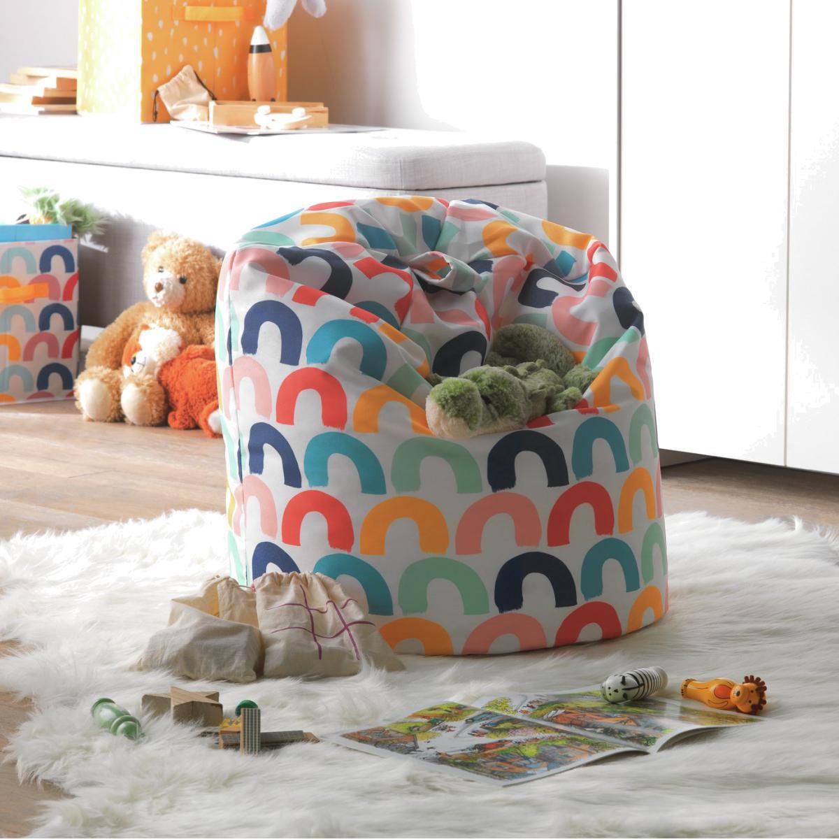 Poof. Plonk your kids' bottom down on our funky rainbow play beanbag. Colour and comfort, this bright and beautiful bean bag is the ideal friend for chilling out, watching TV or kicking back with a book – make any happy child. The beanbag comes ready-filled and the durable cover means it can take a good beating – we know what kids can be like! And as its super easy to wipe clean, mucky paws aren't an issue.