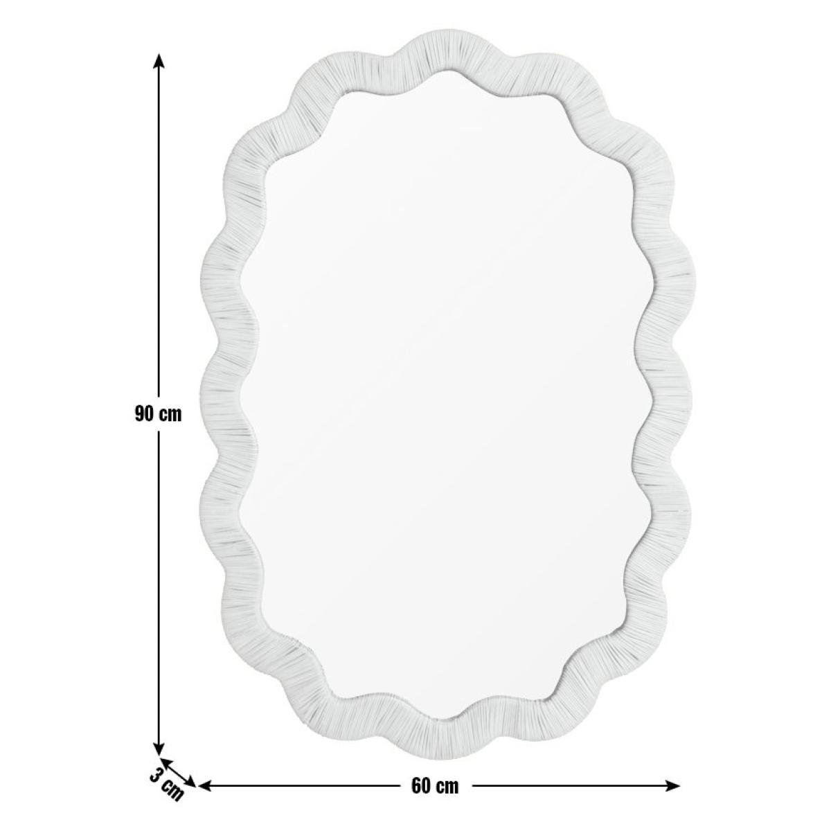 Wave hello. Curvy and charming, our bohemian mirror is fabulously framed by an artfully woven rattan border. Oozing natural style. It's a simple way to introduce light and space to your decor. Size H90, W60, D3cm. Frame material: Metal. Hanging fixture type: D-Ring. Wall mounted mirror. Total weight: 7kg. Fully assembled. Distance between fixings 50cm.