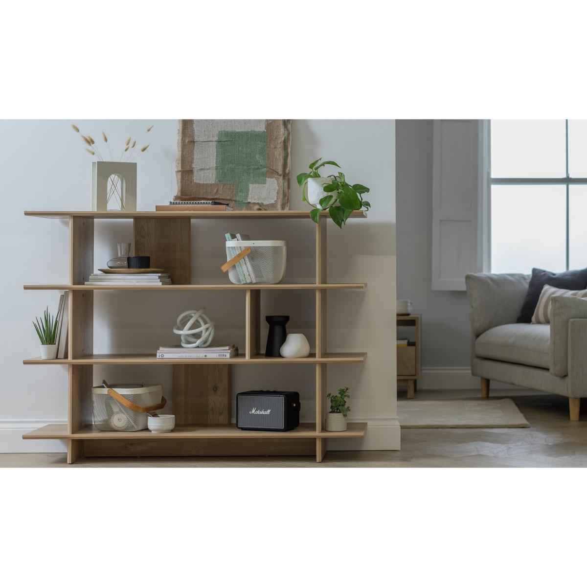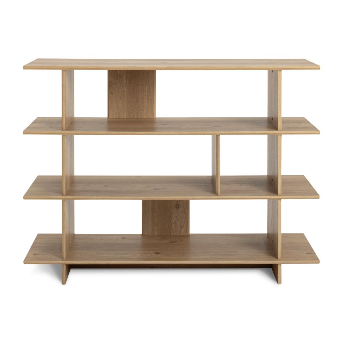 Let's go rah-rah for Raymond. It's the Scandi design bookcase with a light sprinkling of contemporary. With its rich wood effect finish, Raymond is just the thing to cosy up your home office. Pile the shelves with books, potted plants and your favourite collectables. Loving this look? Sneak a peek at our matching pieces from the Raymond collection. Complements the TV unit in the Raymond range. Part of the Raymond collection. Made from particleboard with a wood effect finish. 4 fixed shelves. Self-assembly - 2 people recommended. If this product is over 60cm high it must be securely attached to the wall to prevent overturning (fixings included). Dimensions: Size H102.4, W137.8, D39cm. Weight 37.2kg. Internal shelf space: H 28.4, W 99.2, D 39cm. Wall fixing recommended. Shelves range from 17.5cm wide (narrowest) to99.2 cm wide (widest)Recommended maximum load per shelf: 17kg. Package dimensions: Package 1 dimensions: H8, W40.3, D144.5cm. Package 1 weight: 21.66kg. Package 2 dimensions: H6.3, W40.5, D144.6cm. Package 2 weight: 16.68kg. General Information: We are excited to be welcoming some of our favourite HOME products into the Habitat range. Your product may arrive in Habitat or HOME packaging.