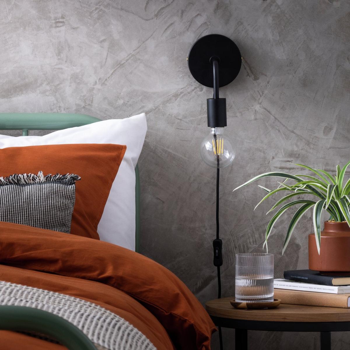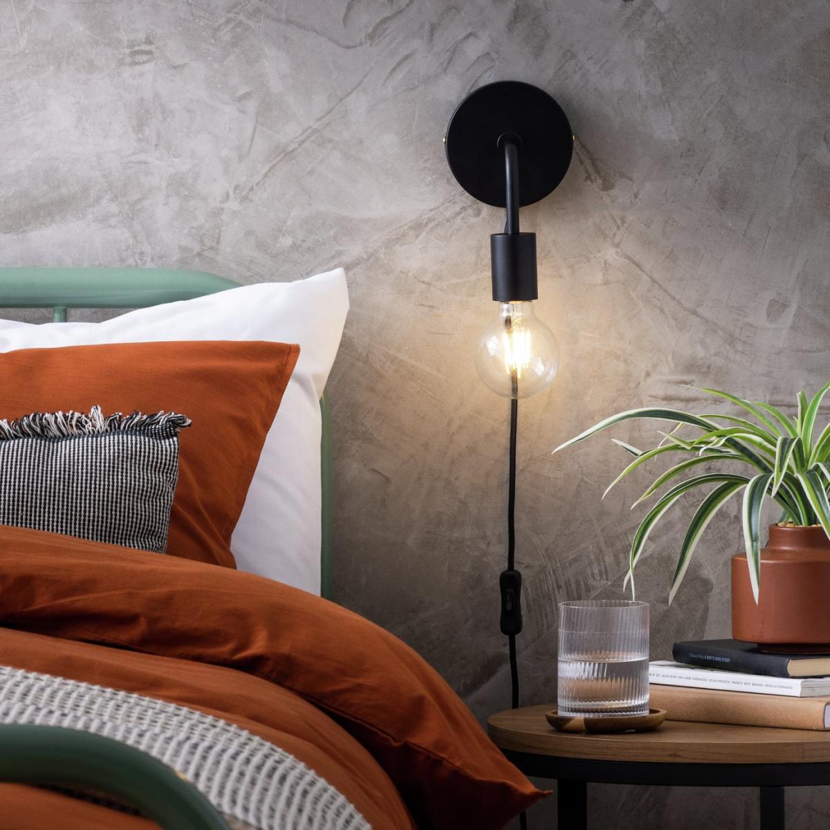 Fancy an on-trend wall lamp that's as quick to hang as a piece of art? Forget channeling wires into plaster, our plug-in black wall light can be up and running in a jiffy. Clean metal lines and exposed Edison bulb give it an in vogue industrial vibe. Plus, it has an easy to reach on-off switch. A space-saving and simply striking way to shine. Dimensions: Size H19.89, W13.38, , Diameter 12cm. None adjustable cord drop. Bulb Information: Bulbs required 1 x globe E27 edison screw LED (included). Recommended maximum wattage: 4 watts. Can not be used with a dimmer switch. LED bulb only. Colour rendering index 80. Colour temperature 2500. K. Rated luminous flux 470 lumens. General Information: Metal. IP rating 20 - not suitable for bathroom use. Weight: 0.4kg. Self-assembly. Product is mains powered plug in. This lighting product is a class 2 fitting. We are excited to be welcoming some of our favourite HOME products into the Habitat range. Your product may arrive in Habitat or HOME packaging. Manufacturer's 1 year guarantee.