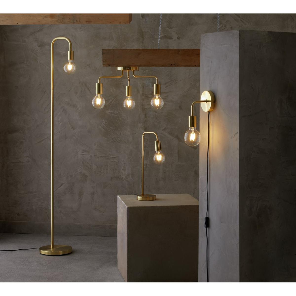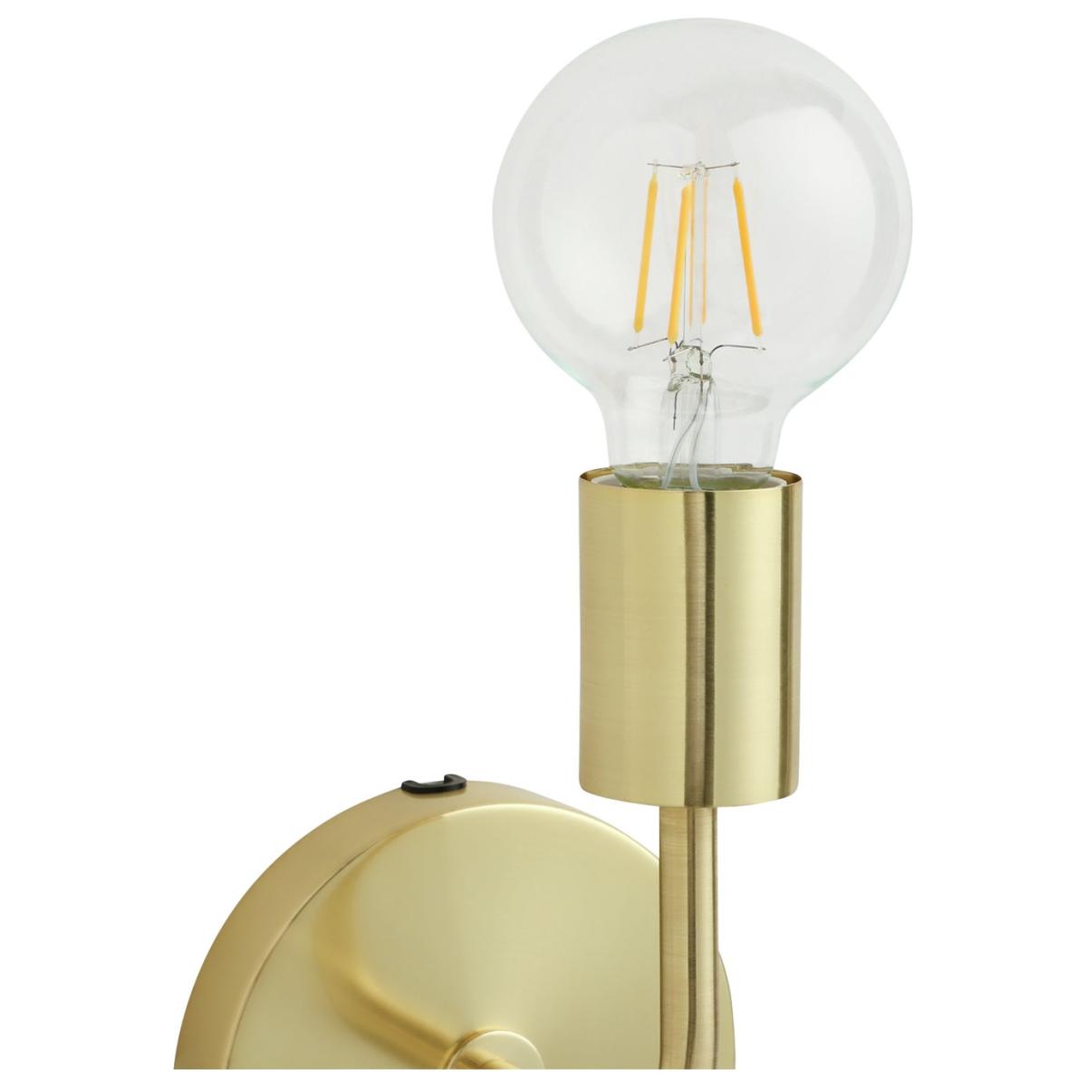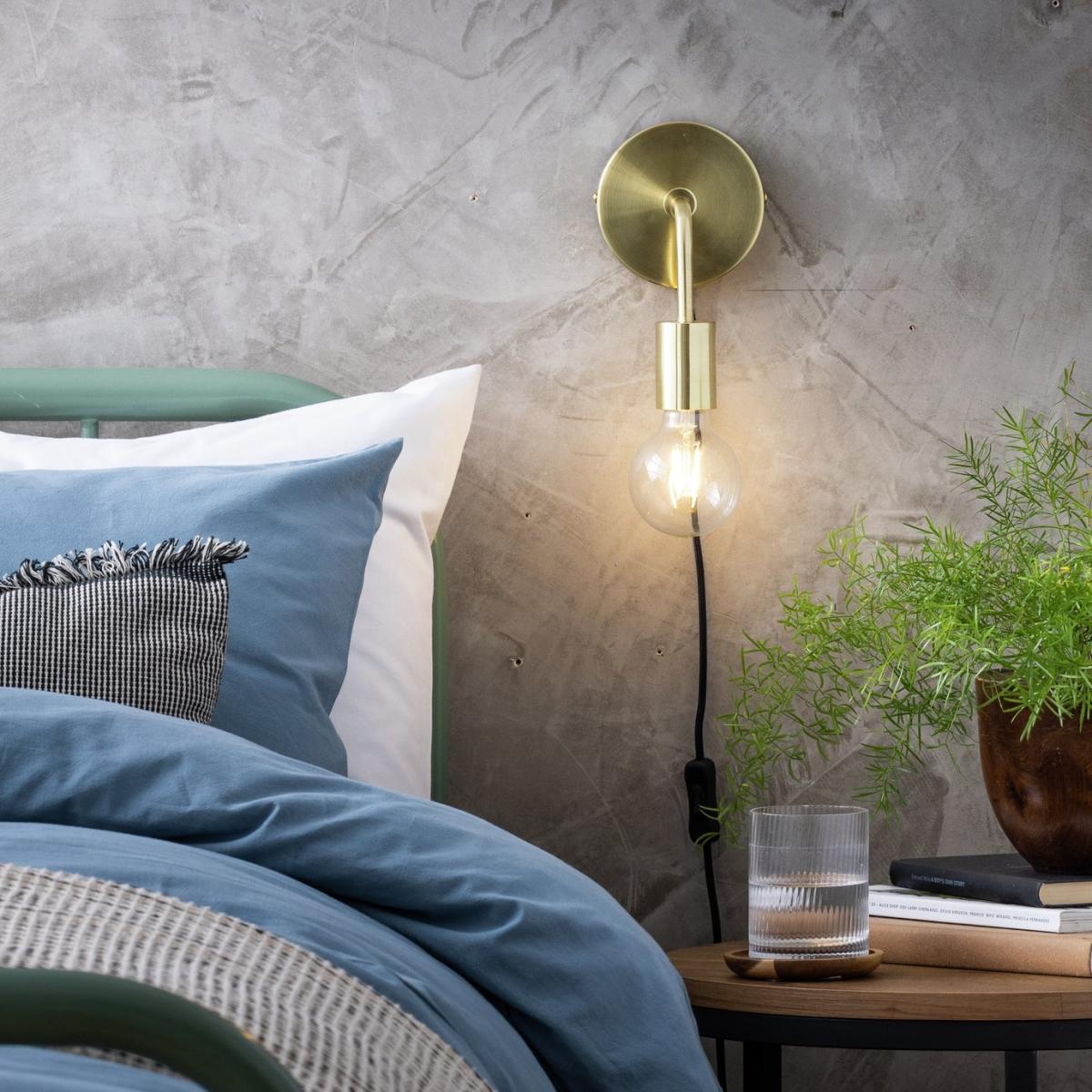 Fancy an on-trend wall lamp that's as quick to hang as a piece of art? Forget channeling wires into plaster, our plug-in brass wall light can be up and running in a jiffy. Clean metal lines and exposed Edison bulb give it an in vogue industrial vibe. Plus, it has an easy to reach on-off switch. A space-saving and simply striking way to shine. Dimensions: Size H19.89, W13.38, , Diameter 12cm. None adjustable cord drop. Bulb Information: Bulbs required 1 x globe E27 edison screw LED (included). Recommended maximum wattage: 4 watts. Can not be used with a dimmer switch. LED bulb only. Colour rendering index 80. Colour temperature 2500. K. Rated luminous flux 470 lumens. General Information: Metal. IP rating 20 - not suitable for bathroom use. Weight: 0.4kg. Self-assembly. Product is mains powered plug in. This lighting product is a class 2 fitting. We are excited to be welcoming some of our favourite HOME products into the Habitat range. Your product may arrive in Habitat or HOME packaging. Manufacturer's 1 year guarantee.