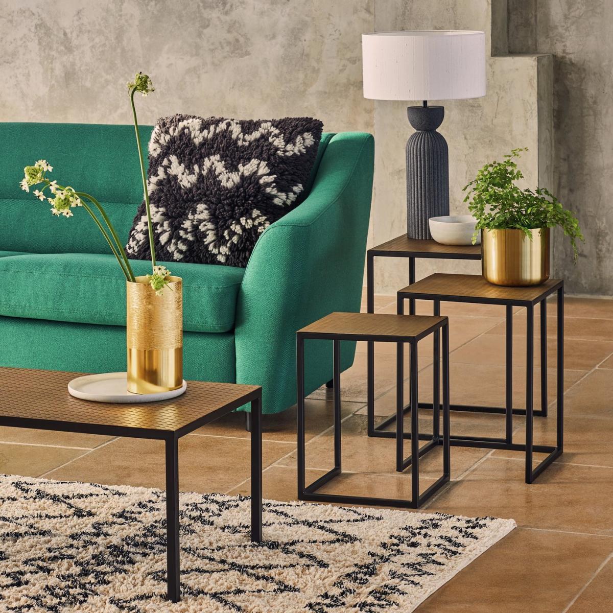 I love the Habitat Raza India nest because of its versatile design and striking gold finish, which adds a touch of glamour to any interior. It works particularly well in contemporary or eclectic spaces, where the mix of sleek metal frames and wood tops can complement both minimalist and more layered styles. Practical styling tips include using these tables as a set for flexibility-pulling them out for drinks or snacks, or nesting them apart to create visual interest. They also make great side tables next to a sofa or bed, offering ample surface area without cluttering the space. Overall, a stylish, functional choice for adding dimension and a bit of luxury to your living area.