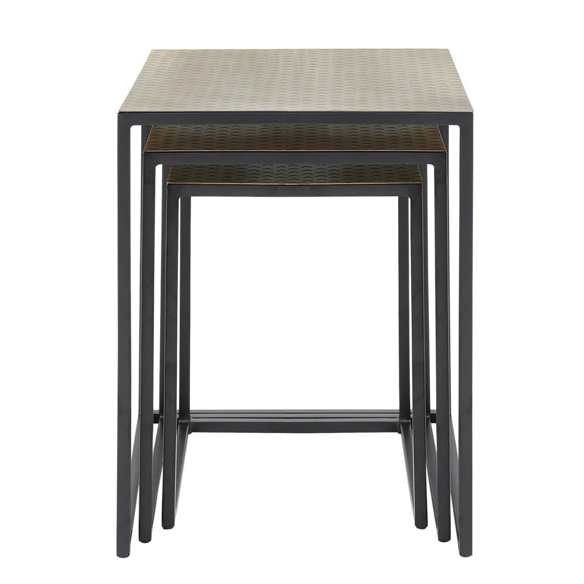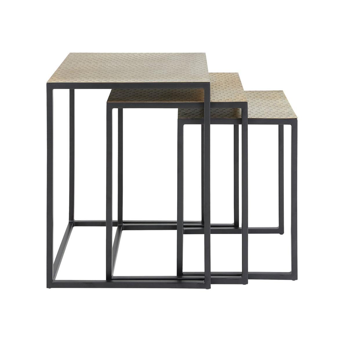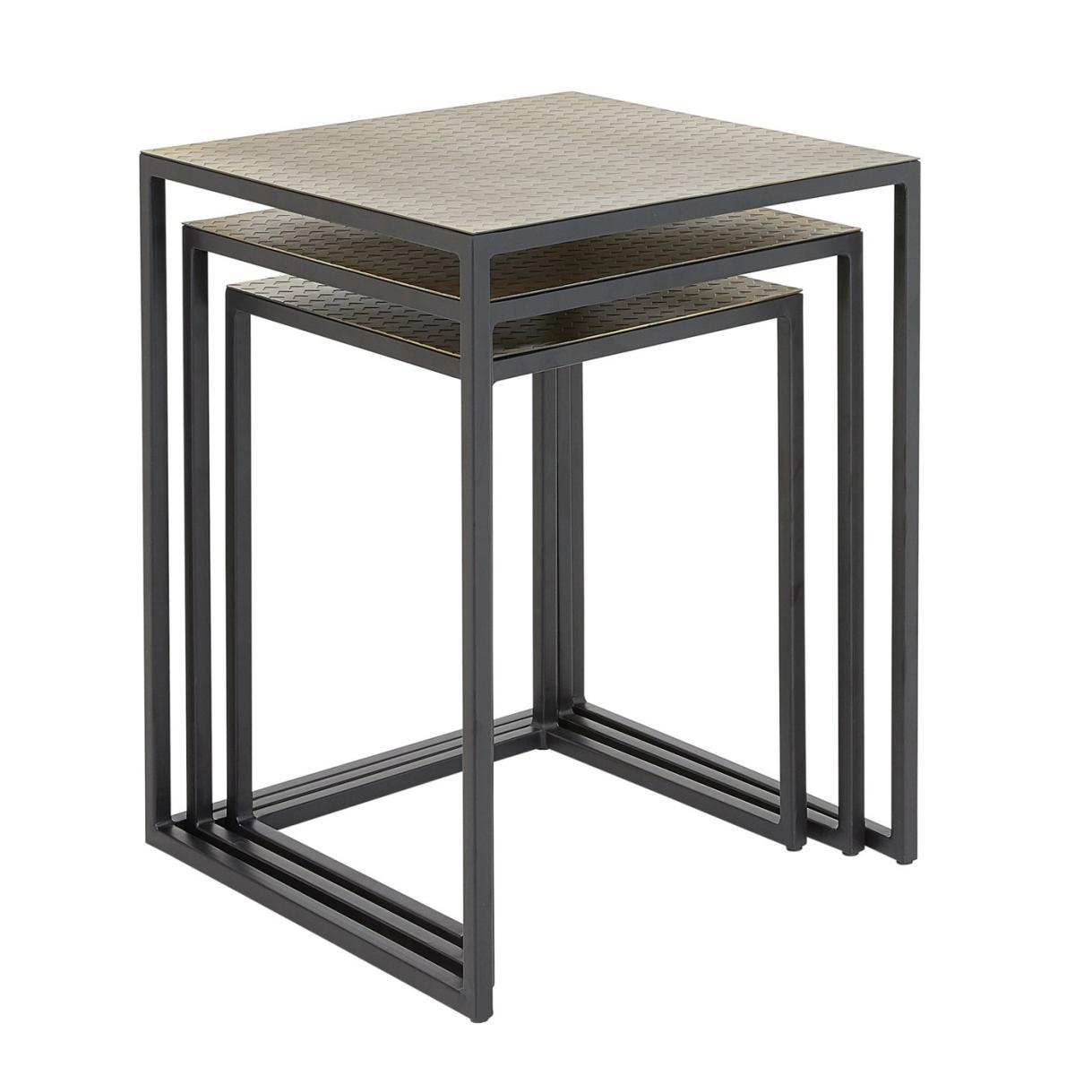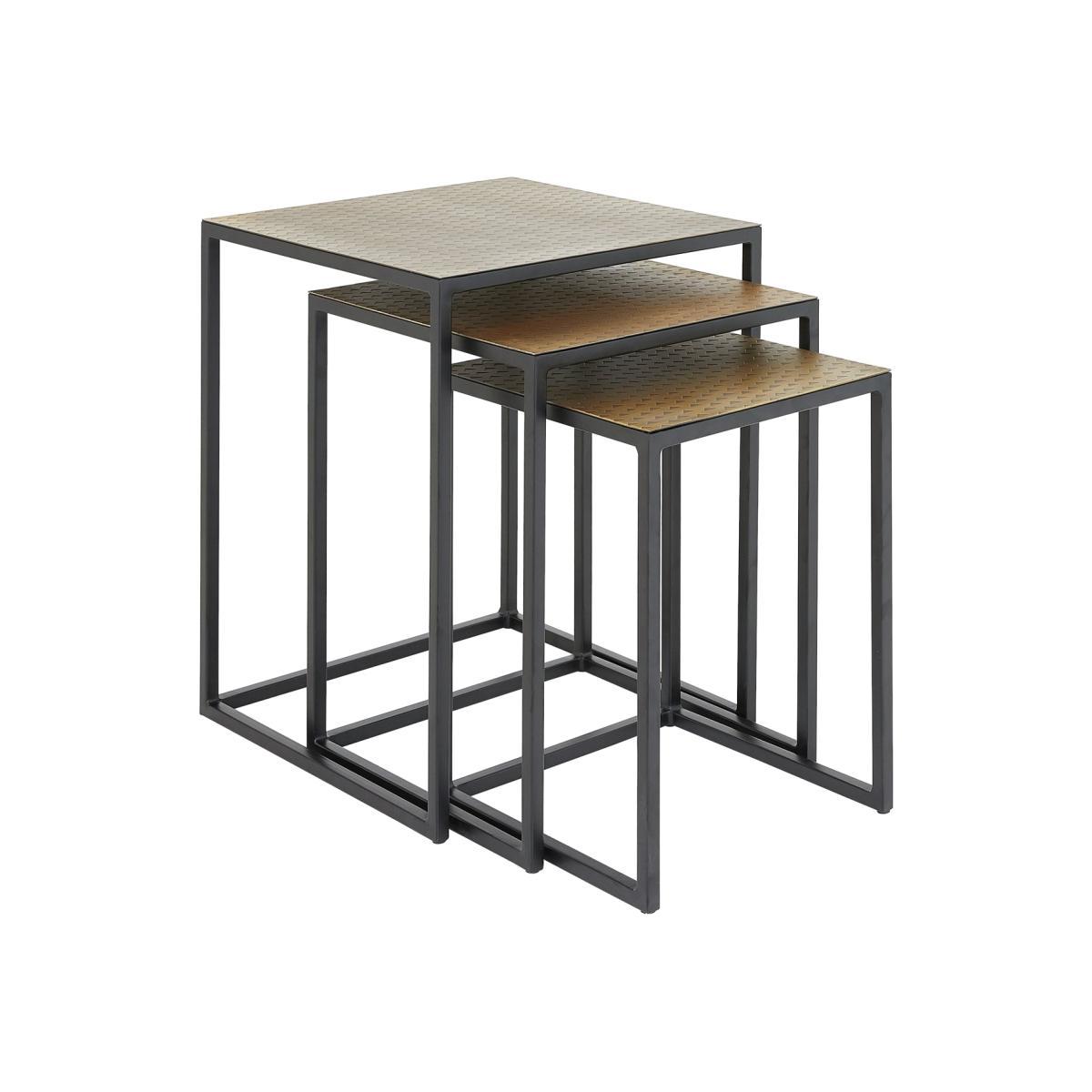 Original designs at suprisingly affordable prices. Designed by interiors brand Habitat, the Raza gold printed nested tables include three different sized tables and will make a striking addition to a living room. Each table has an iron frame and metal top that showcases an etched, printed design. Part of the Raza collection. Size of largest table H51, W40, D40cm. Size of smallest table H40, W35, D35cm. Weight 15kg. Fully assembled. General information:Manufacturer's 1 year guarantee.