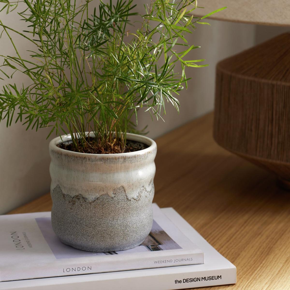 I love this small ceramic planter for its versatility and understated charm. The neutral cream and grey tones give it a contemporary yet timeless appeal, making it ideal for a range of interiors-from Scandi minimalism to rustic charm. It works particularly well combined with mixed textures, such as wood and metal, and can add a subtle layer of sophistication to desks, shelves, or window sills. Practical styling tips include pairing it with succulents or small leafy plants to create a fresh, natural look, while also considering its size for smaller spaces or as a set with other planters for a curated display. Its simple glaze finish makes it easy to adapt to different colour palettes and interior styles, making it a reliable, stylish choice for plant lovers.