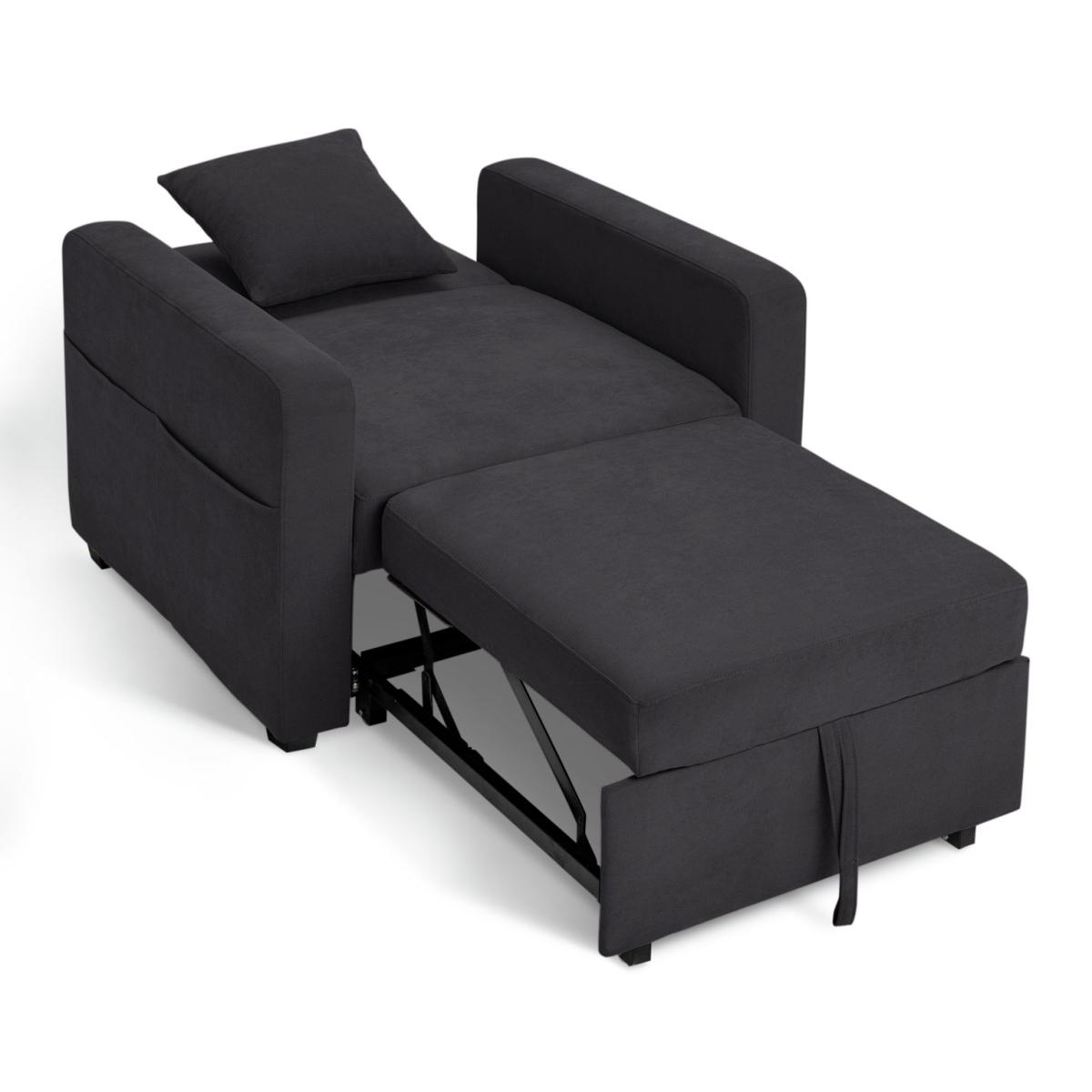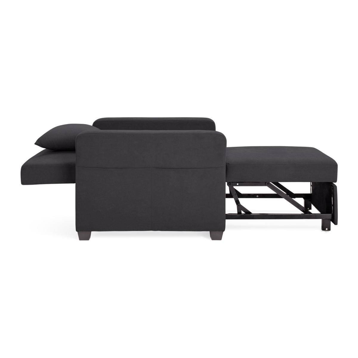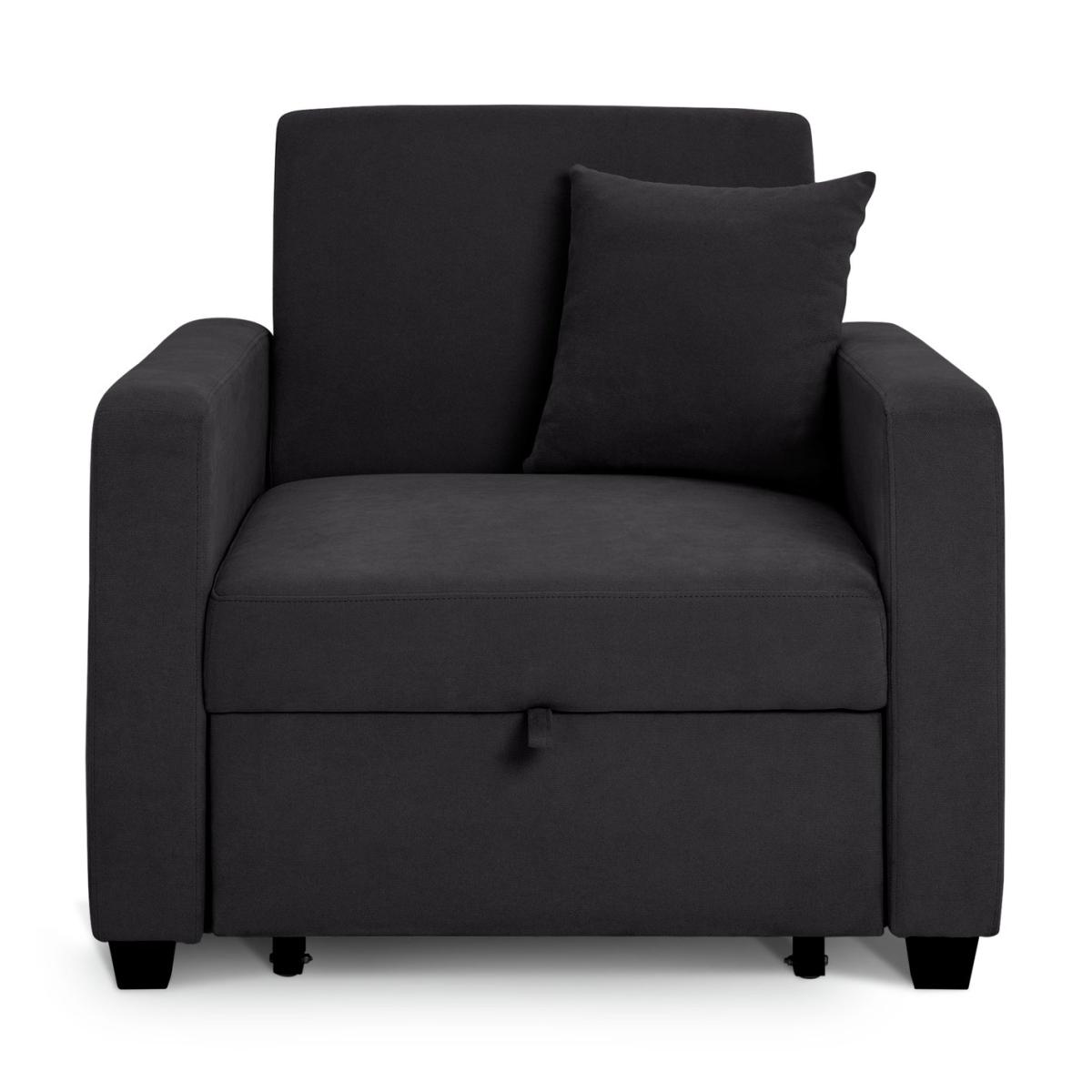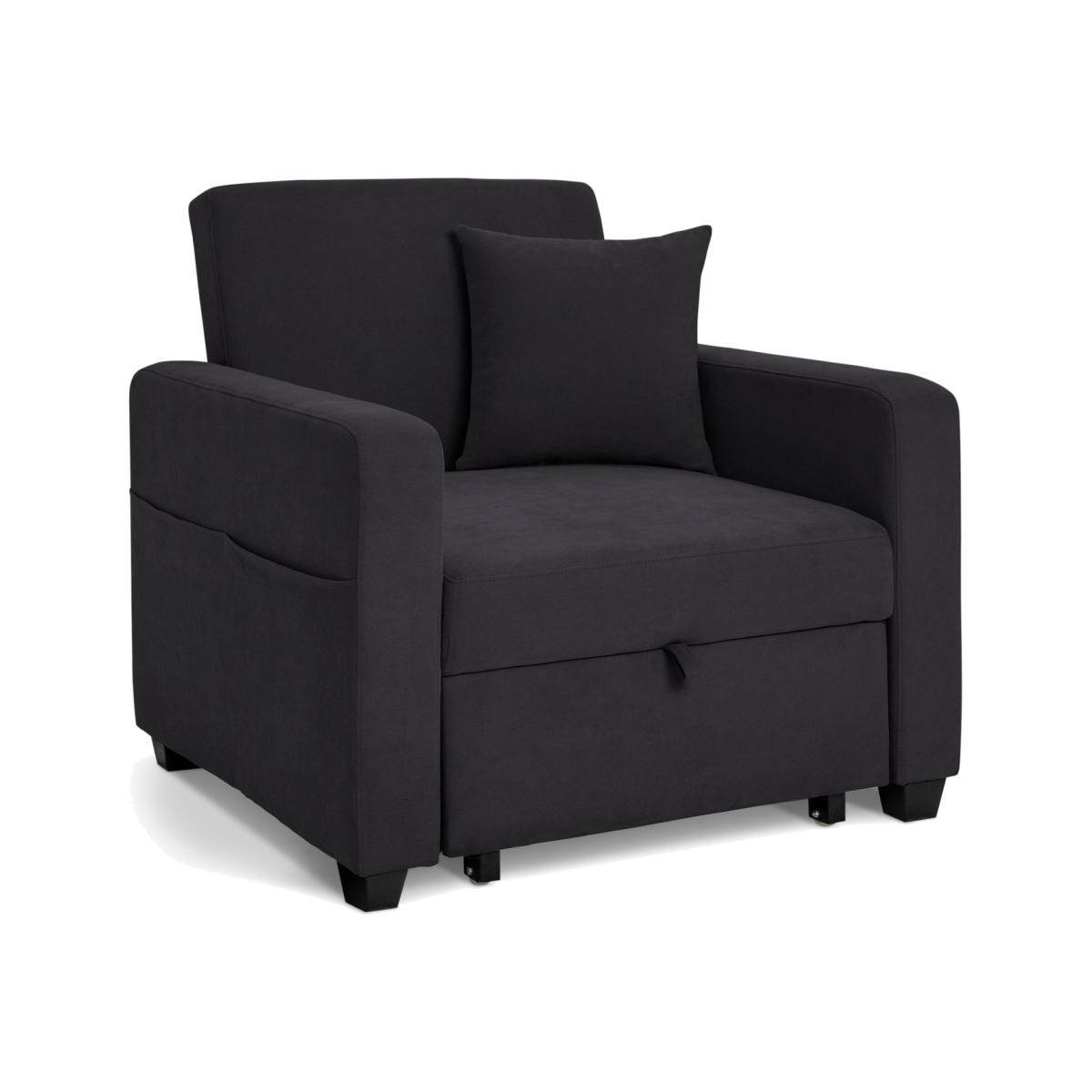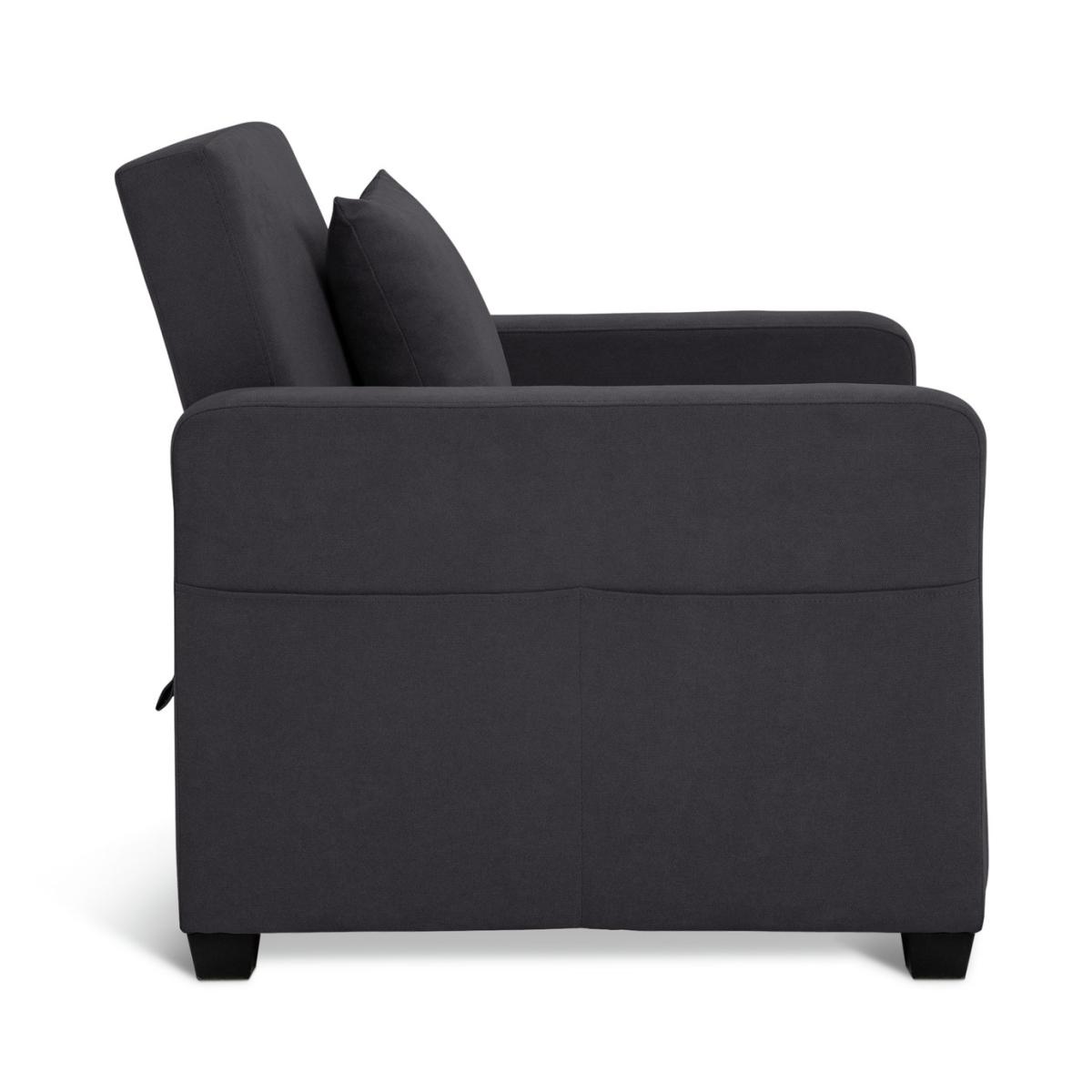 There's a lot of reasons to love Reagan. Our comfy armchair that quickly unfolds to a single bed for overnight guests. Just pull and extend. Upholstered in charcoal fabric, it's got a deep seat with a padded back and armrests. And roomy side pockets come in handy to tuck mags or papers out of sight. A scatter cushion adds the finishing touch. Part of the Reagan collection. Single. Materials: Made from 100% polyester. Plastic feet. Fixed seat with foam filling. Removable cushion(s) with fibre filling. Free fabric swatch available on this line. Dimensions: Size H88, W95, D95cm. Sleeping area W69, L189cm. Floor to seat height: 45cm. Height of seat back: 88cm. Width of seating area between arms:69cm. Weight 37.5kg. Do not clean with abrasives. Suitable for regular use. Self-assembly. Packaged dimensions: Package size H91, W87, D96cm. General information: We are excited to be welcoming some of our favourite HOME products into the Habitat range. Your product may arrive in Habitat or HOME packaging. Manufacturer's 10 year frame guarantee.