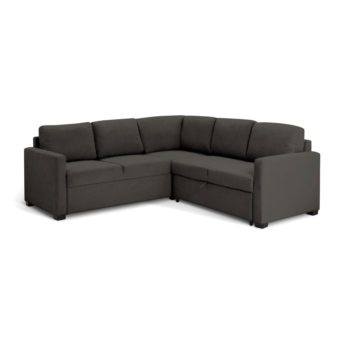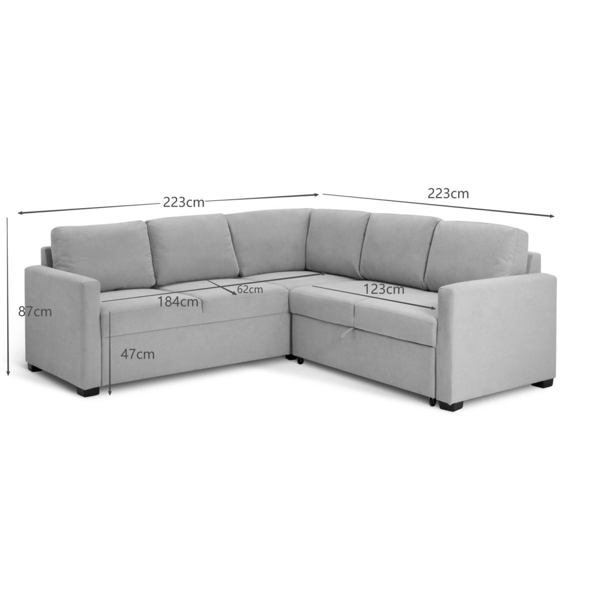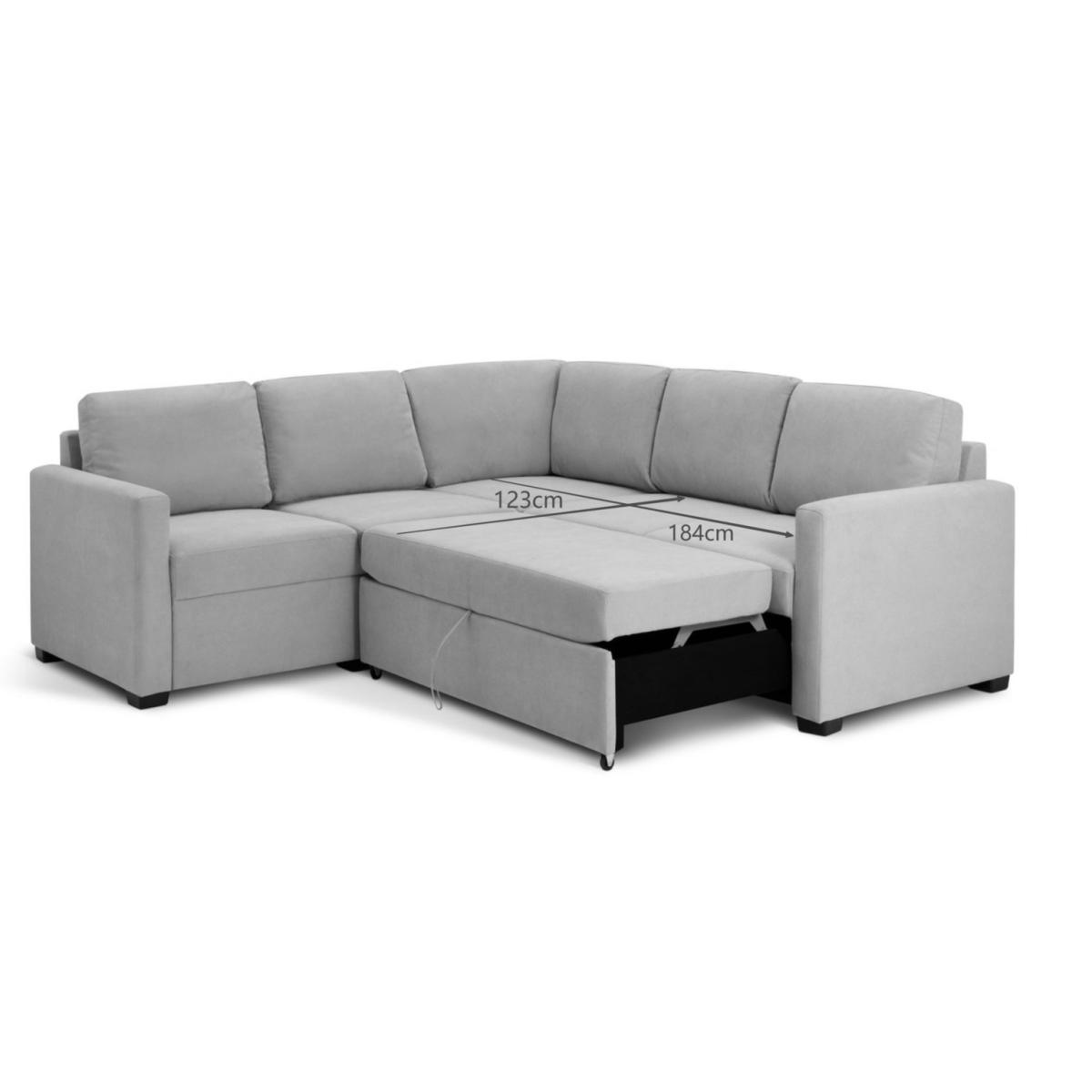 There's a lot of reasons to love Reagan. Our smart 5-seater corner sofa that quickly unfolds to a double bed for overnight guests. Just pull and extend. Upholstered in a charcoal textured fabric, with relaxingly soft, foam-filled seats and padded cushions. A comfortable family friendly sofa with extra benefits. Part of the Reagan collection. Double bed. Material: Made from 100% polyester. Plastic feet. Fixed seats with foam filling. Removable cushion(s) with fibre filling. Dimensions: Overall size H87, longer width 223, D90cm. Size as bed H47, W184, D123cm. Size of sleeping area W184, L123cm. Floor to seat height: 47cm. Depth of seat: 62cm. Width of longer seating area between arms: 184cm. Width of shorter seating area between arms: 123cm. Arm rest height: 63cm. Overall weight: 88.6kg. General information: Professional clean only. Self-assembly - just add feet. Maximum individual user weight: 130kg. Manufacturer's 2 year guarantee. Packaged dimensions: Package size H73, W135, D92cm. Second package size H72, W225, D92cm.