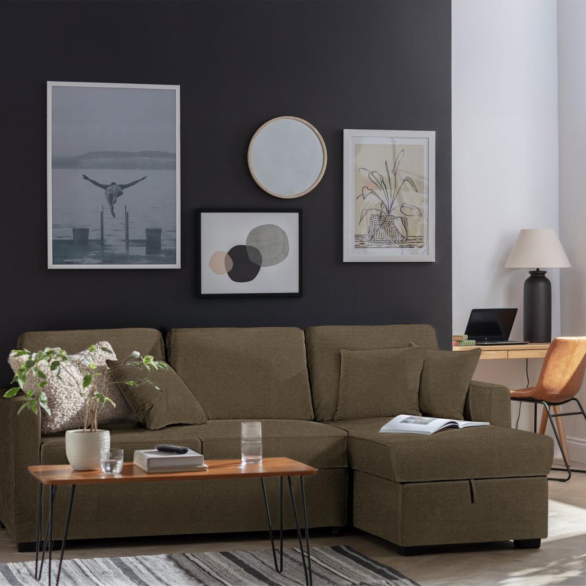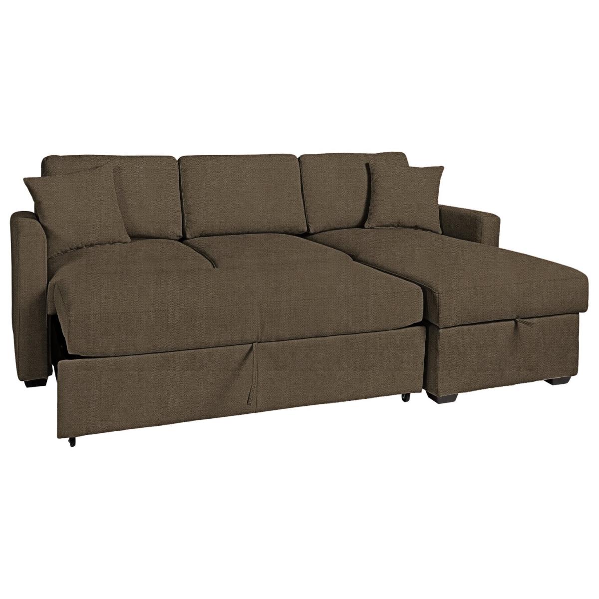 Is it a sofa, a bed, or a secret storage spot? Reagan is the whole package. Upholstered in soft chocolate fabric, with oodles of comfy seating this right-hand corner sofa is ideal for lazing. And when you have guests to stay, it easily converts into a double bed. And there's more. Lift the chaise end to find heaps of concealed storage space. Now have we forgotten anything? Oh, yes. It comes with a couple of scatter cushions too. Part of the Reagan collection. Futon and drawers mechanism. Double bed. Material: Made from 100% polyester. Plastic feet. Fixed seats with foam filling. Removable cushion(s) with fibre filling. Dimensions: Overall size H89, longer width 225, shorter width 78.5, D154cm. Size as bed H47.6, W208, D139cm. Size of sleeping area W208, L154cm. Mattress depth: 14.5cm. Floor to seat height: 47.6cm. Depth of seat: 74cm. Width of longer seating area between arms: 136cm. Width of shorter seating area between arms: 72cm. Arm rest height: 64.5cm. Overall weight: 84.5kg. General information: Self-assembly - just add feet. Maximum individual user weight: 110kg. Manufacturer's 1 year guarantee. Packaged dimensions: Package size H72, W152, D92cm. Second package size H72, W162, D80cm.