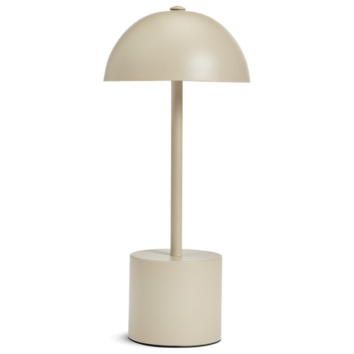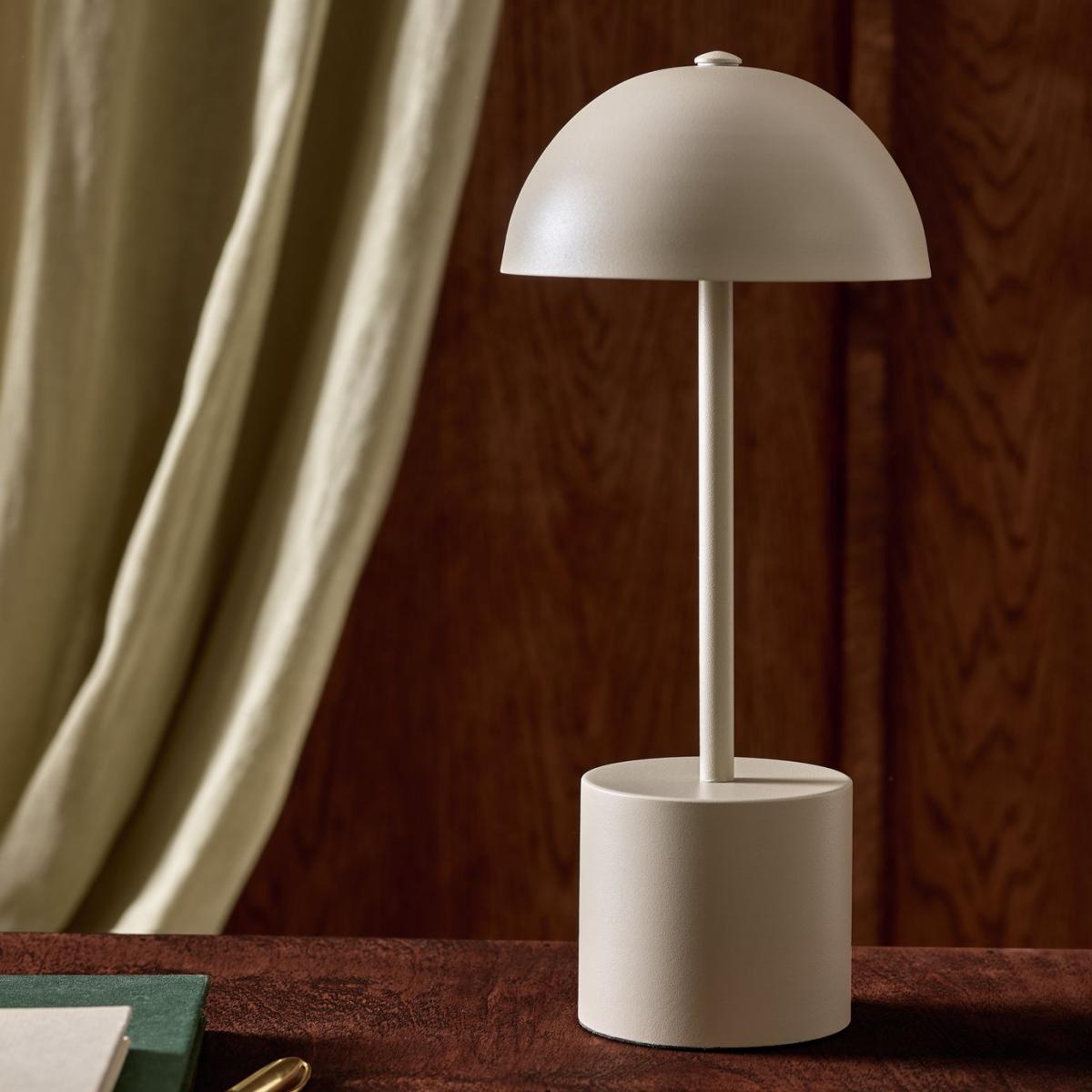 Combine retro style with today's tech and you have this mid-century modern mushroom table lamp. Its vintage roots are displayed in the classic dome shape that casts a warm ambient glow. And for contemporary convenience, it's rechargeable via a USB port. Made from steel with a taupe coloured finish this is one mushroom that loves being in the light. Dimensions: Overall size H31, W14, D14 cm. Diameter 14cm. Shade size H7, D14cm. Diameter of base 9cm. Cord length 1m. Bulb Information: Integrated LED bulb(s)(included). Recommended maximum wattage: 3 watts. LED bulb only. Colour rendering index 80. Colour temperature 3000. K. Rated luminous flux 120. General Information: Shade colour: taupe. Base colour: taupe. Shade material: steel. Base material: steel. Product features: USB connectivity. Rocker switch on top of shade. IP rating 20not suitable for bathroom use. Fully assembled. This lighting product is a class 3 fitting. Manufacturer's 2 year guarantee.