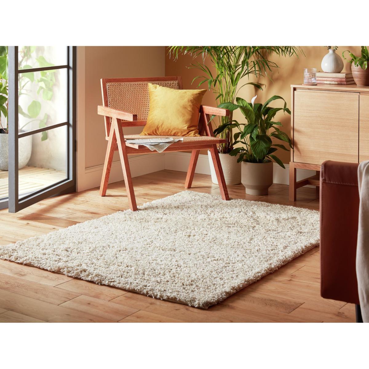 This shaggy rug is a fantastic addition to a cosy living room or bedroom, thanks to its plush texture and neutral ivory shade, which easily complements a variety of colour schemes. I love its versatility - it works equally well in modern, minimalist interiors or more relaxed, Scandinavian-inspired spaces. Practical styling tips include layering it with other textured textiles, like soft throws or cushions, to add depth. Its size makes it great for central placement under seating areas, providing both comfort and visual warmth. Just keep in mind that the shaggy pile will benefit from regular vacuuming to keep it looking fresh and inviting.