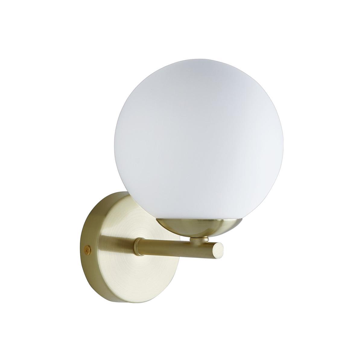 A smart wall light inspired by Deco style but with a modern twist. With a brass wall plate, arm and cradle and a soft, opaque, light softening globe, it will bring a relaxed vibe to your room. A mood lighting must have. Dimensions: Size H18, W12, D15cm, Diameter 12cm. Bulb Information: Bulbs required 1 x capsule G9 eco halogen (not included). Recommended maximum wattage: 33 watts. General Information: IP rating 20 - not suitable for bathroom use. Minimal assembly. Product is hard-wired into electrics. Manufacturer's 1 year guarantee.